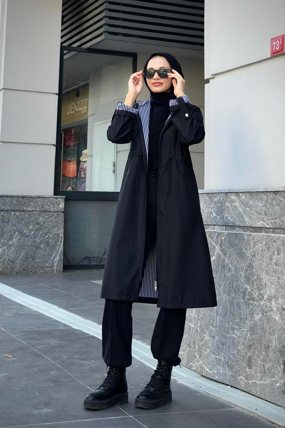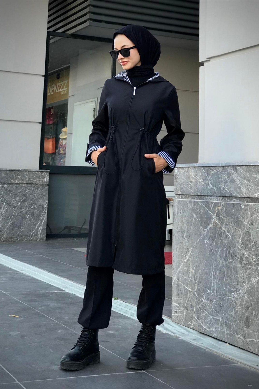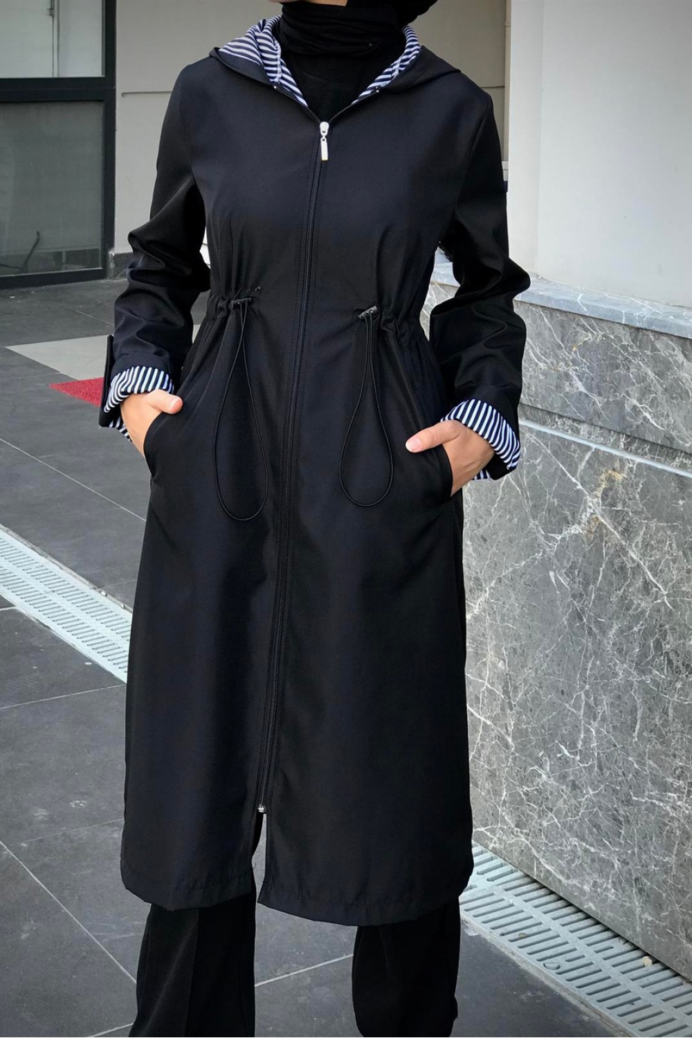 Tina Fermuarlı Trençkot Siyah