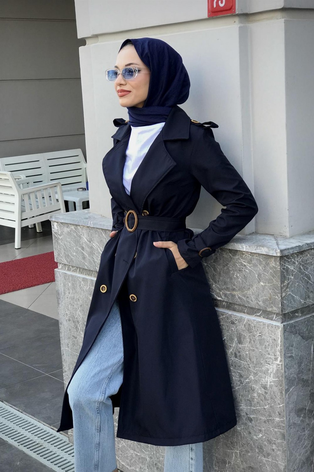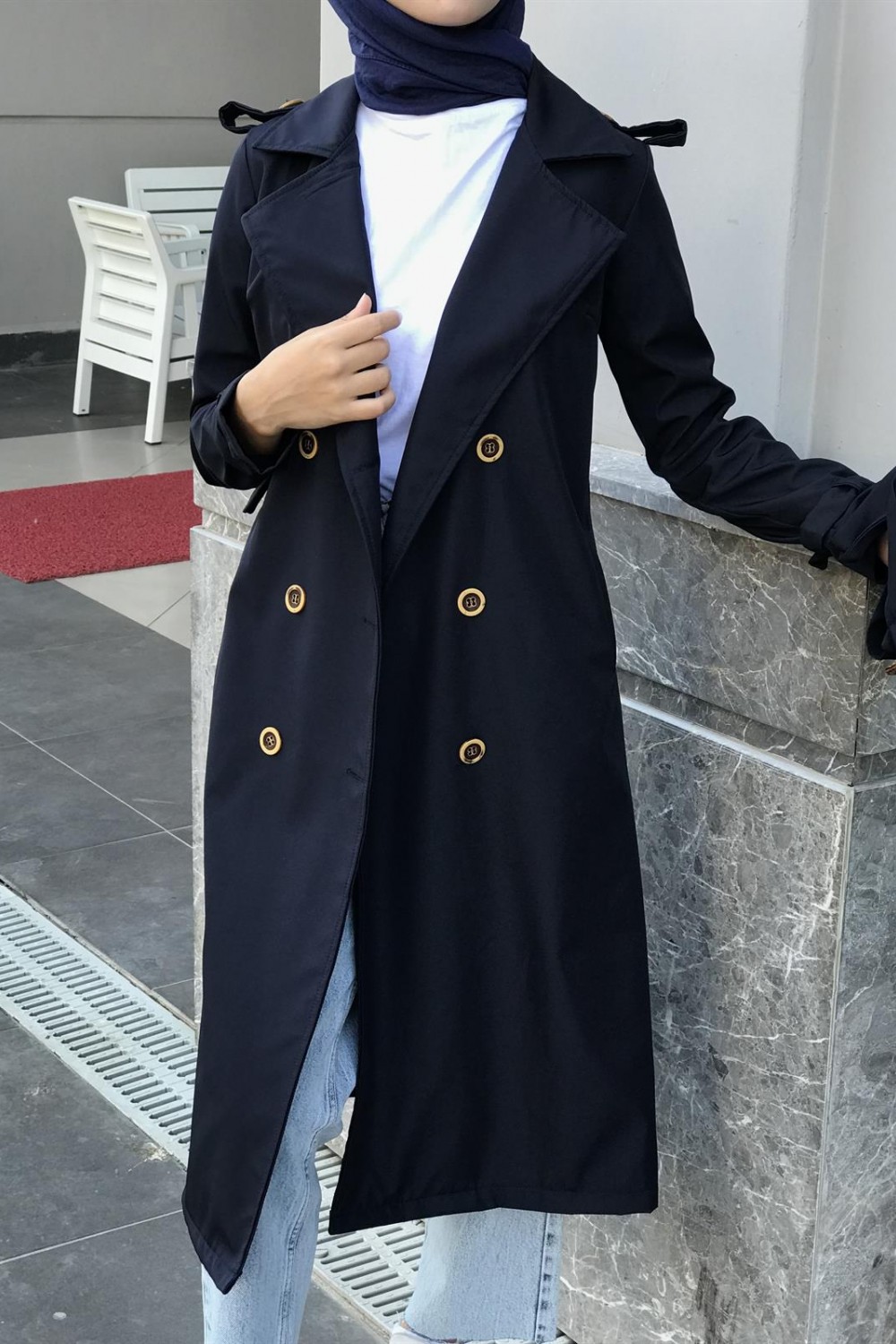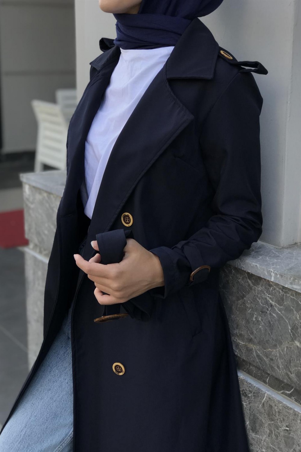 Nasa Apoletli Trençkot Lacivert