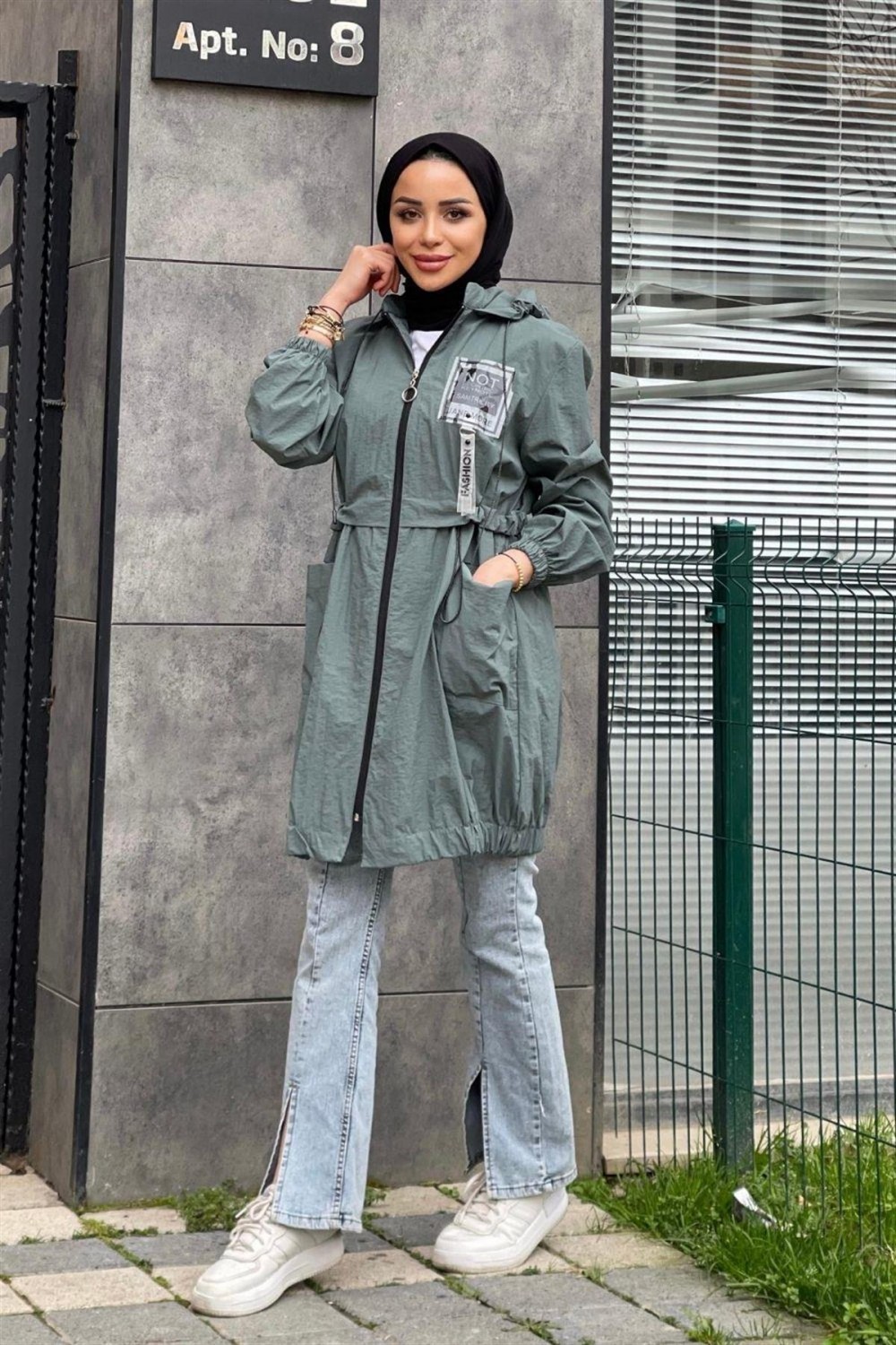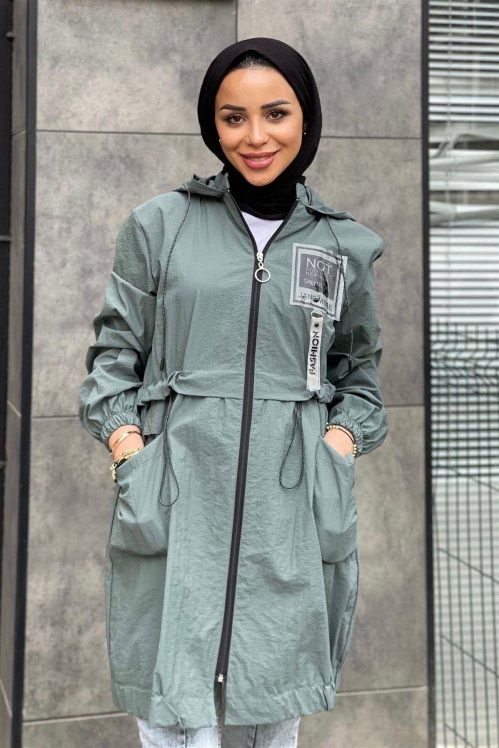 Fermuarlı Beli Büzgülü Yağmurluk Mint