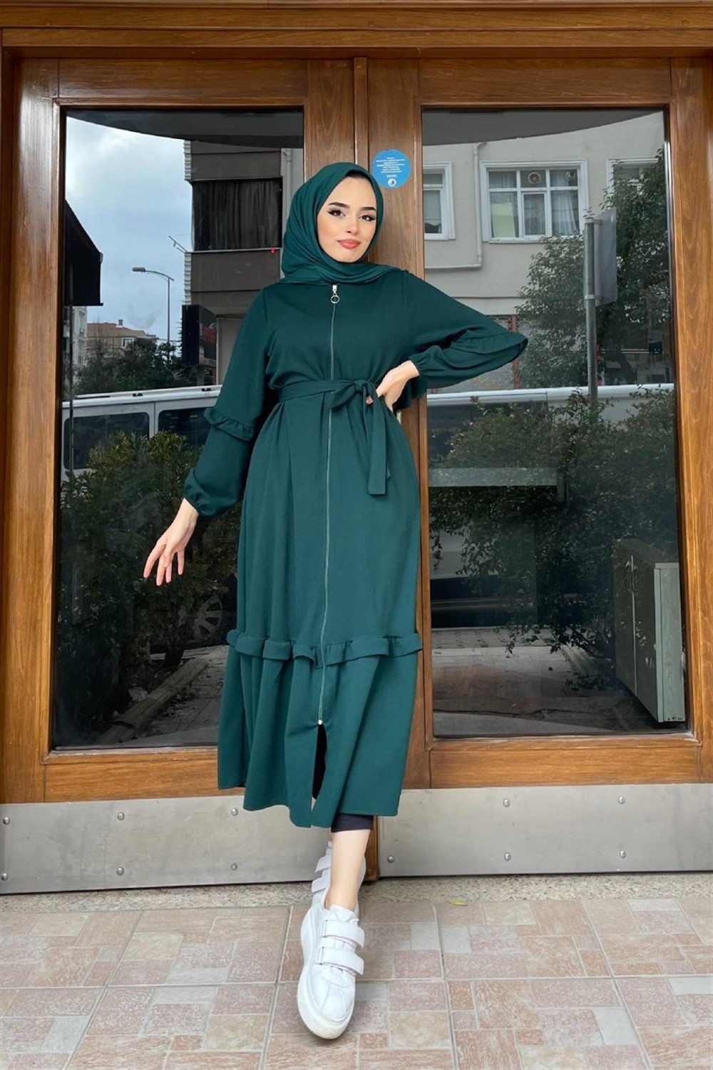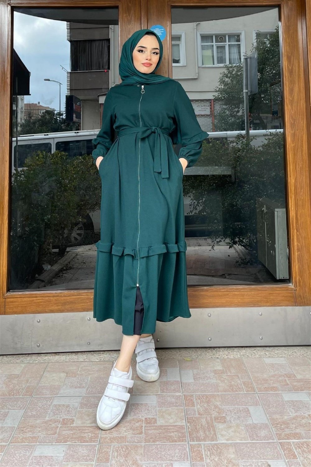 Boydan Fermuarlı Fırfırlı Kap Zümrüt