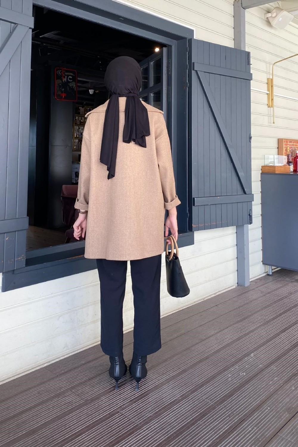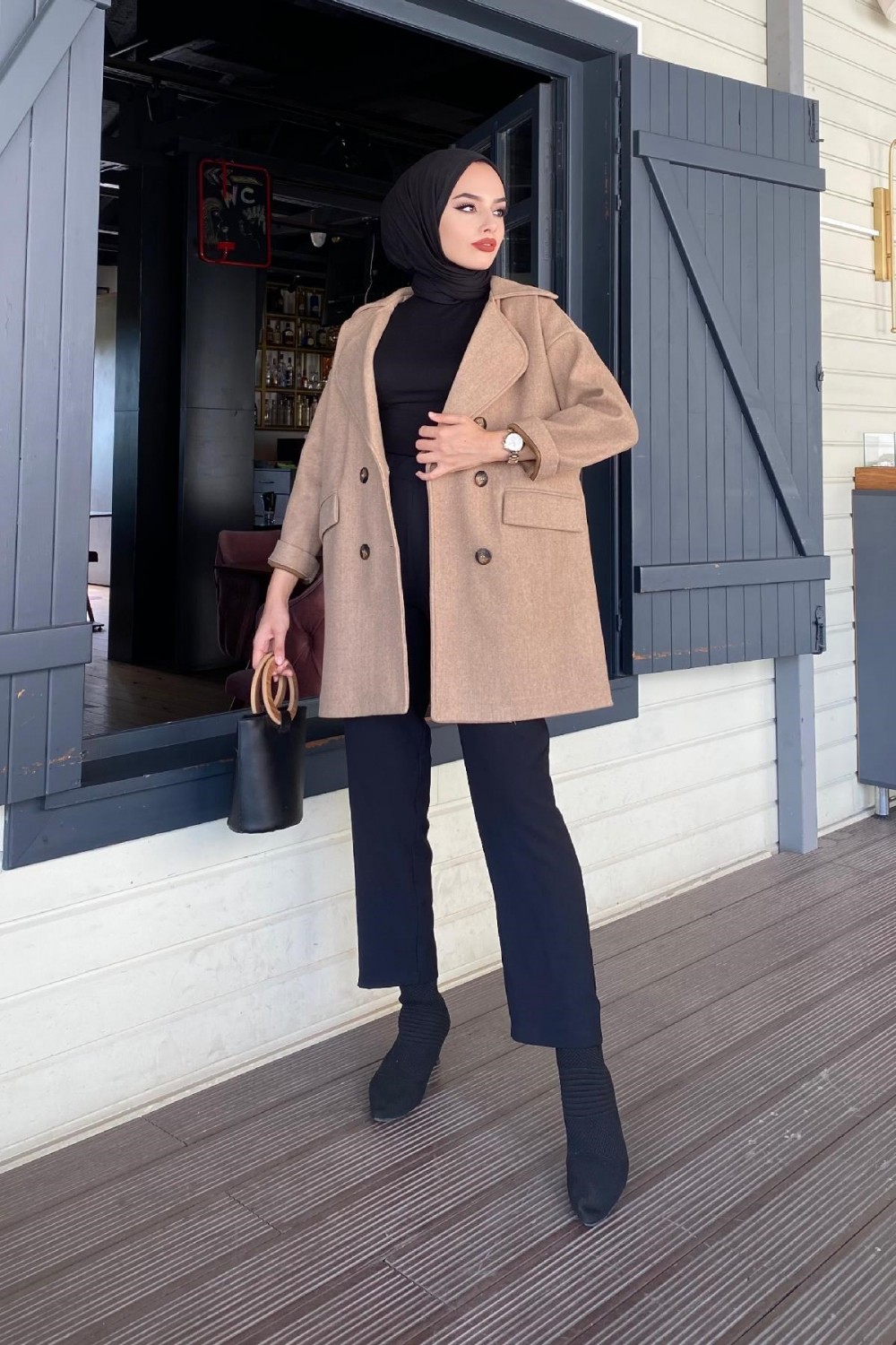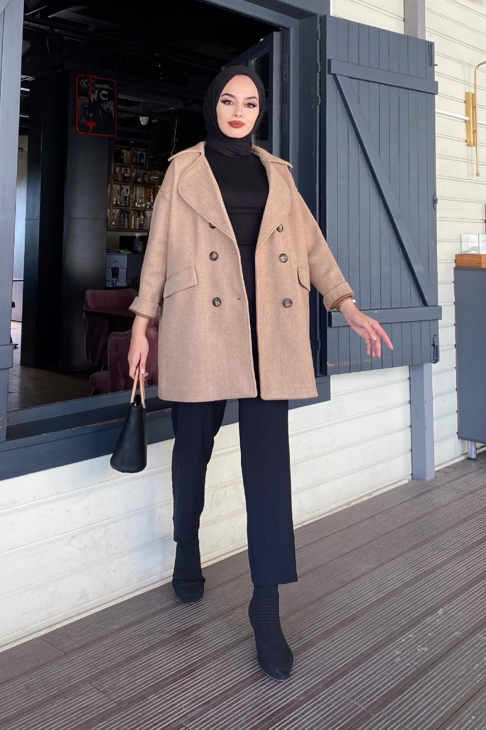 Düğmeli Kaşe Kaban SütlüKahve