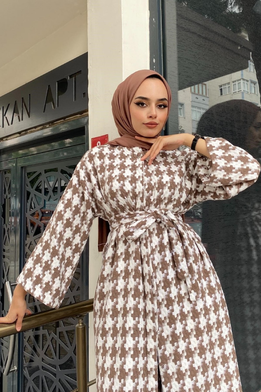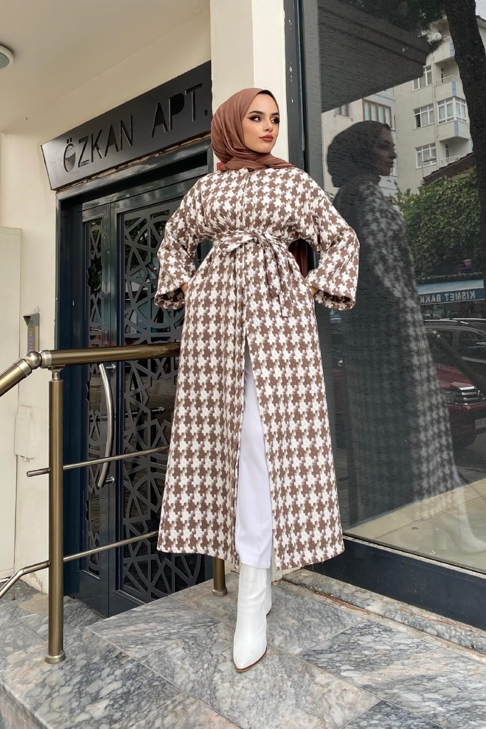 Kaz Ayağı Desenli Kap Kahverengi