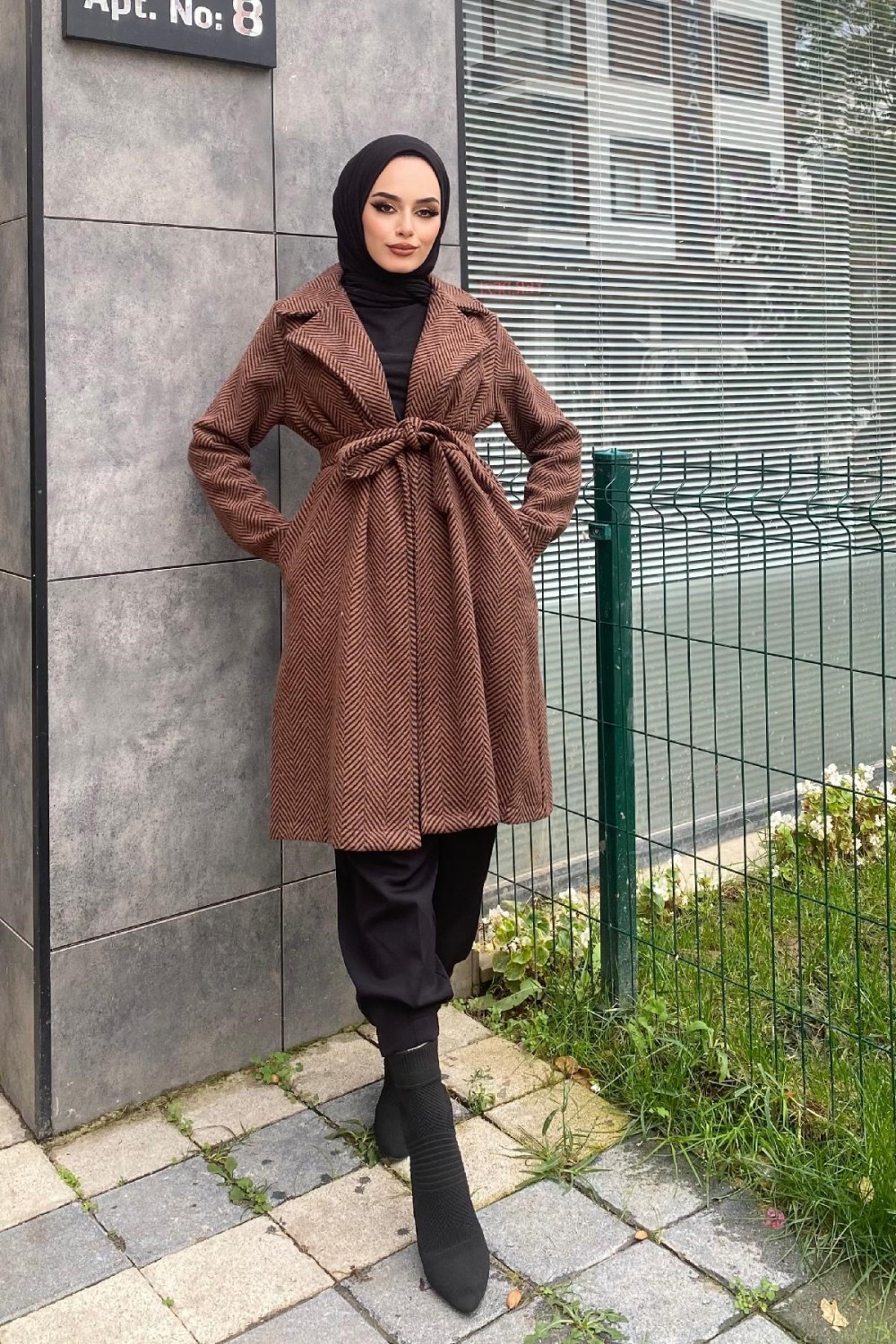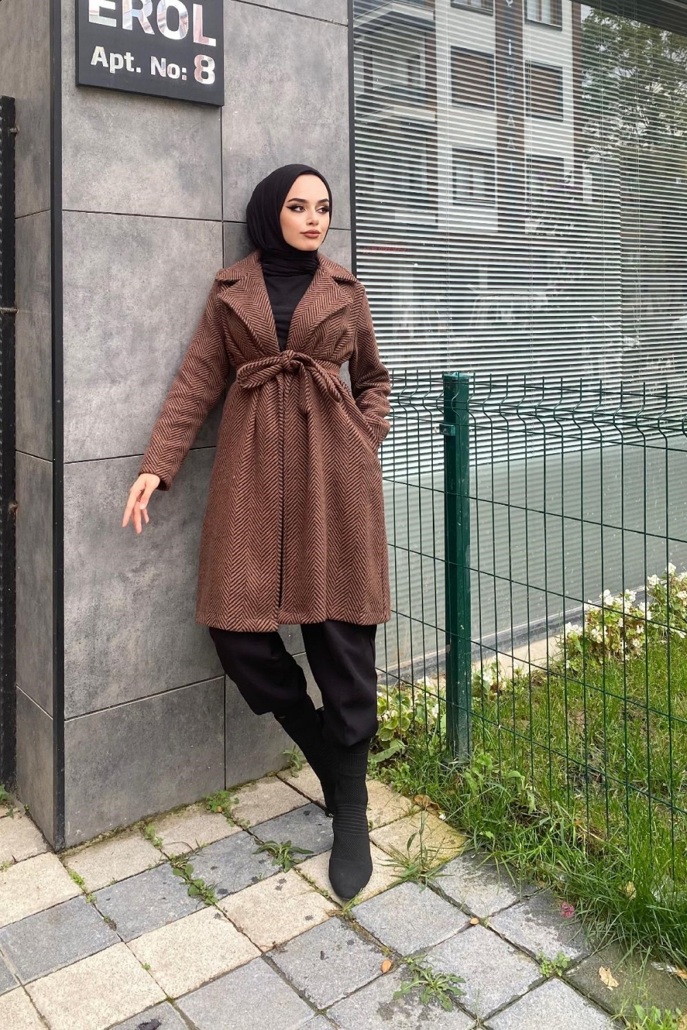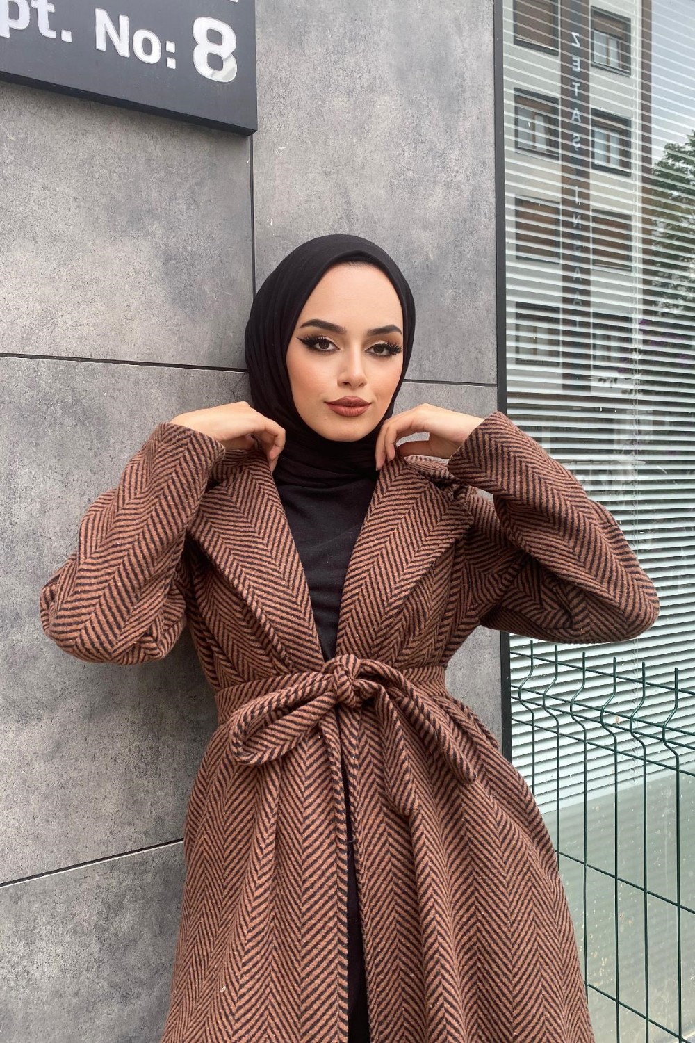 Zebra Desen Kaşe Kap Kahverengi