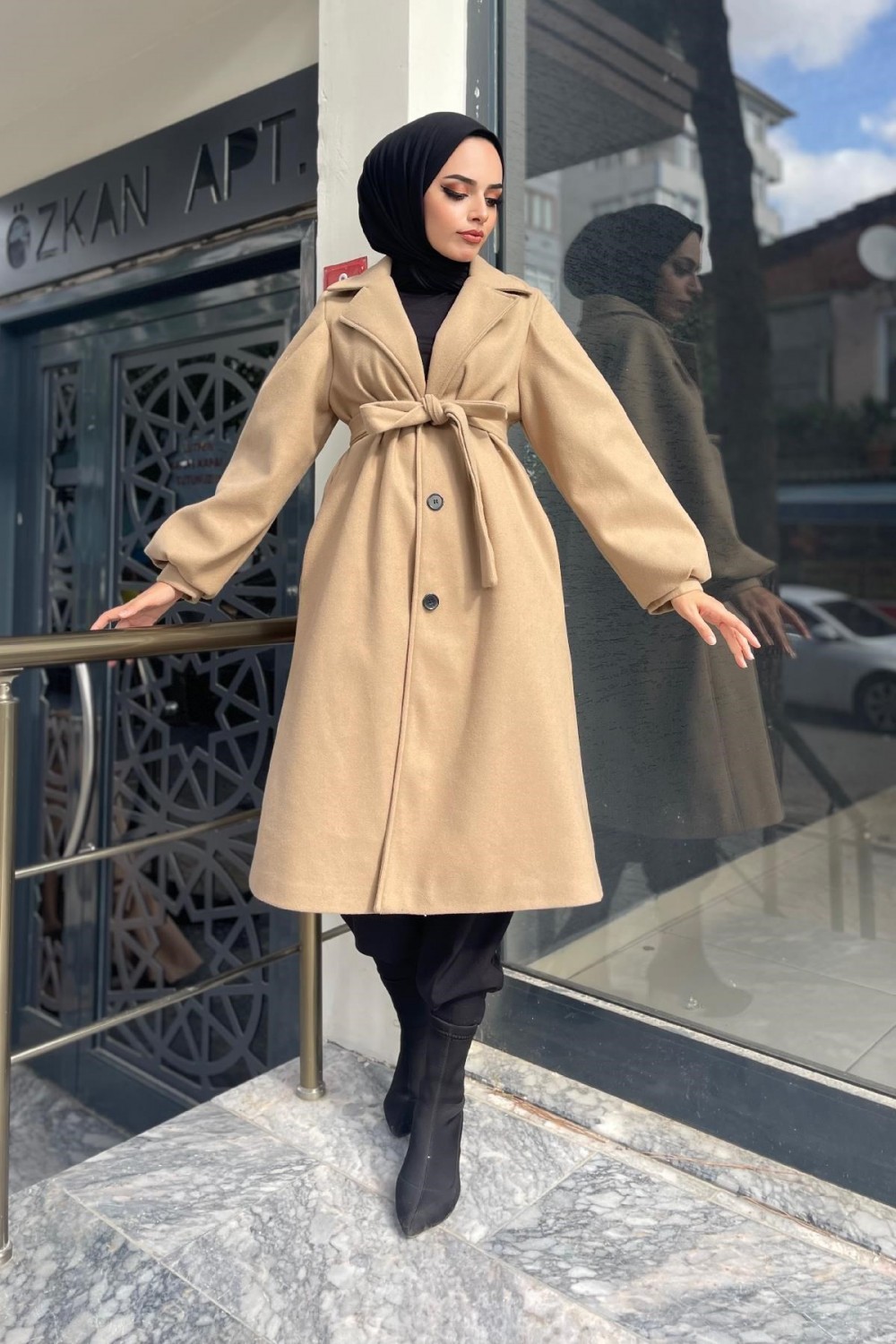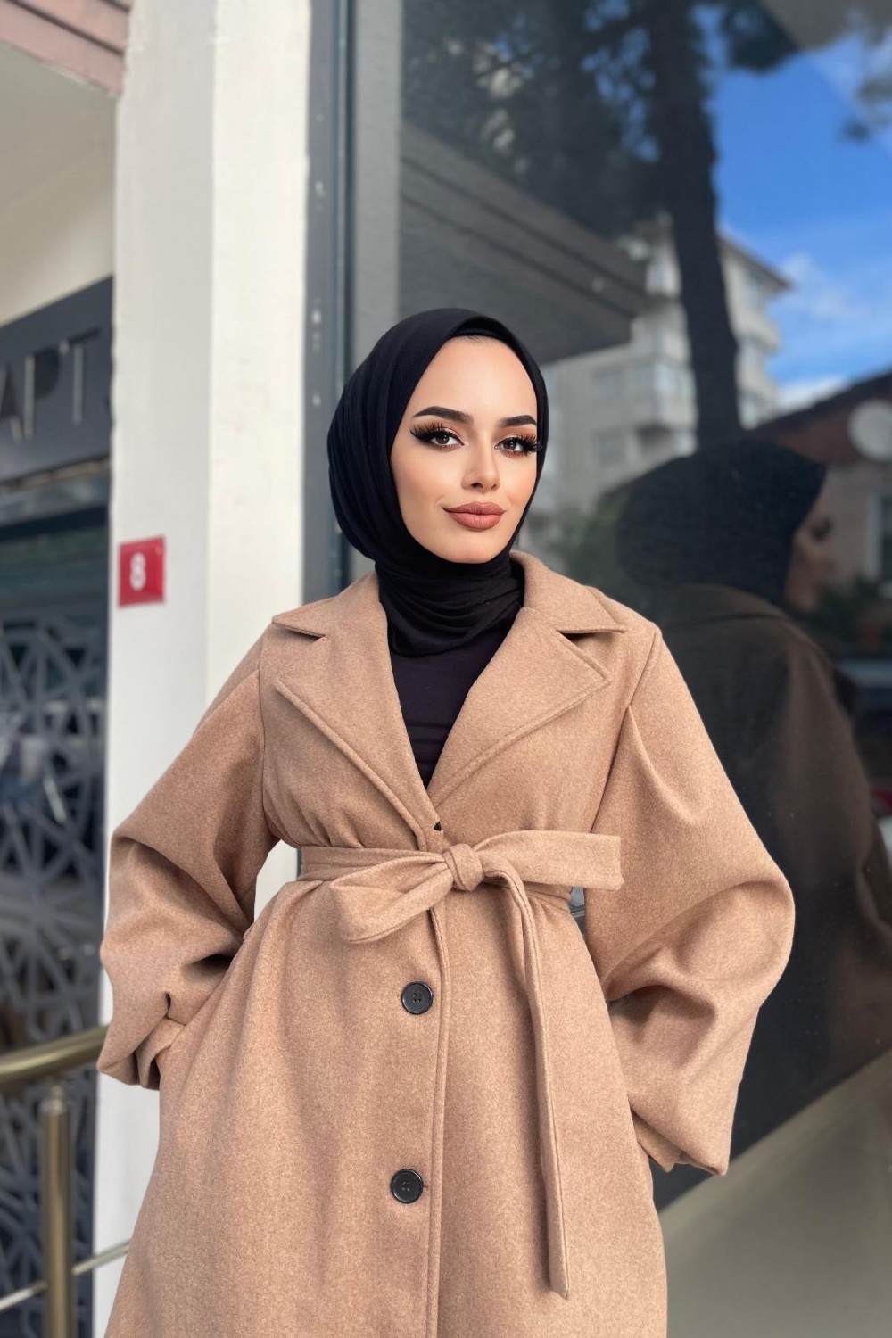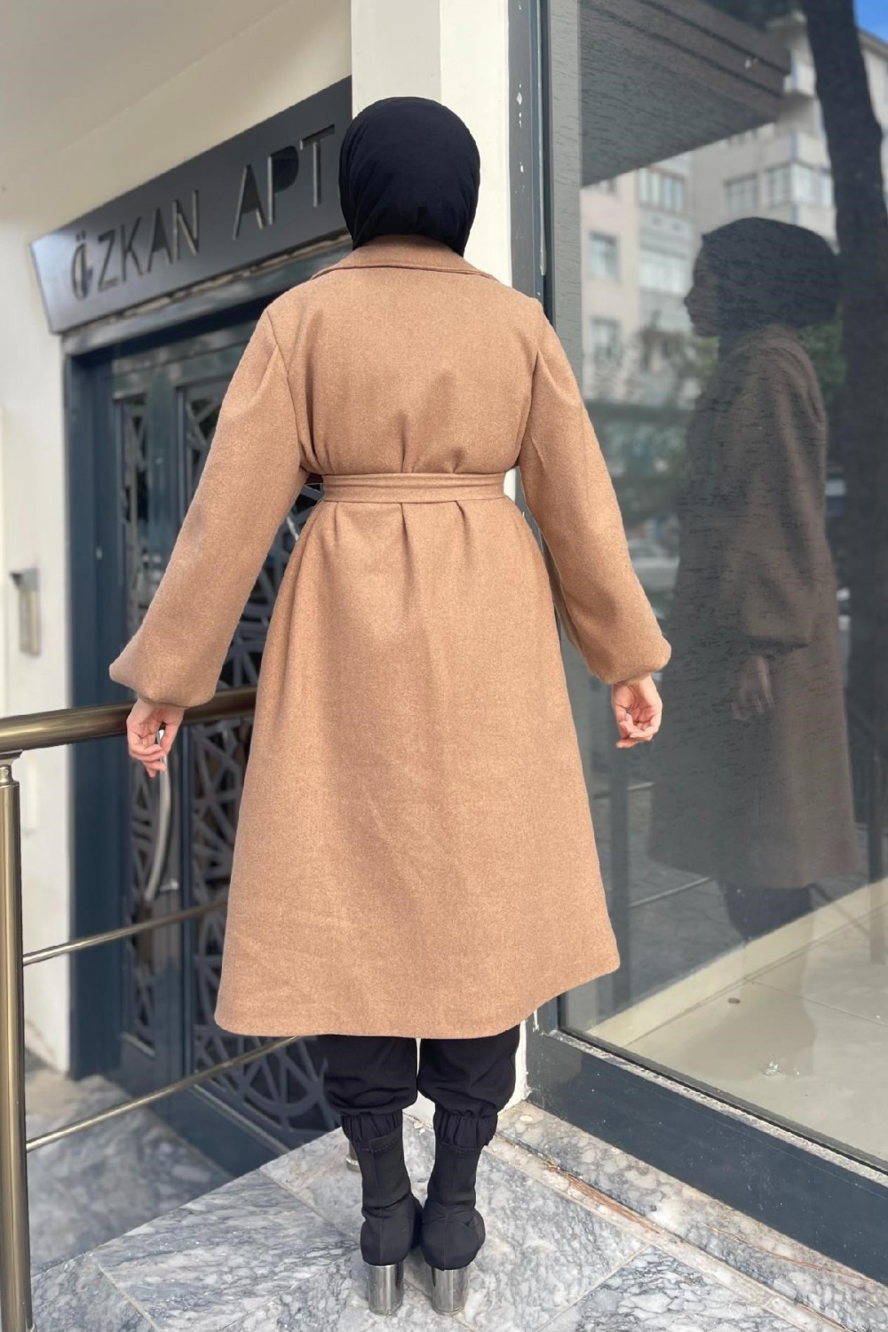 Düğmeli Cepli Kaşe Kaban SütlüKahve