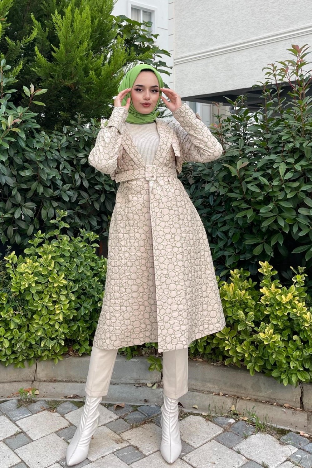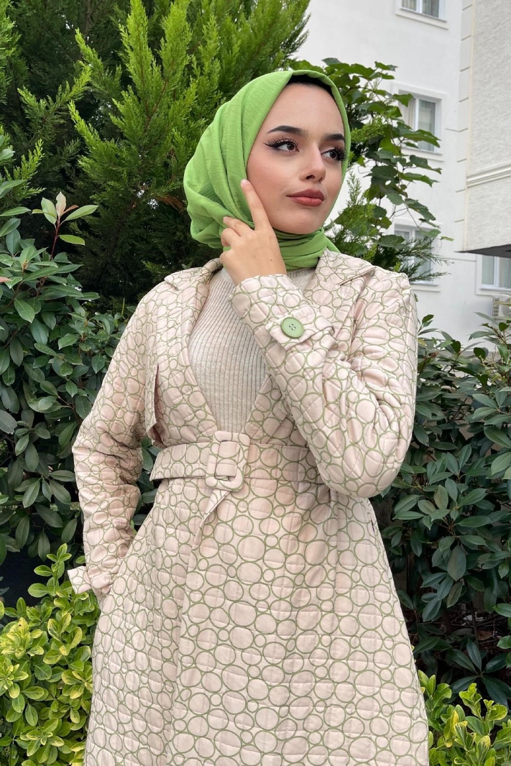 Halka Desenli Kemerli Kap Yeşil