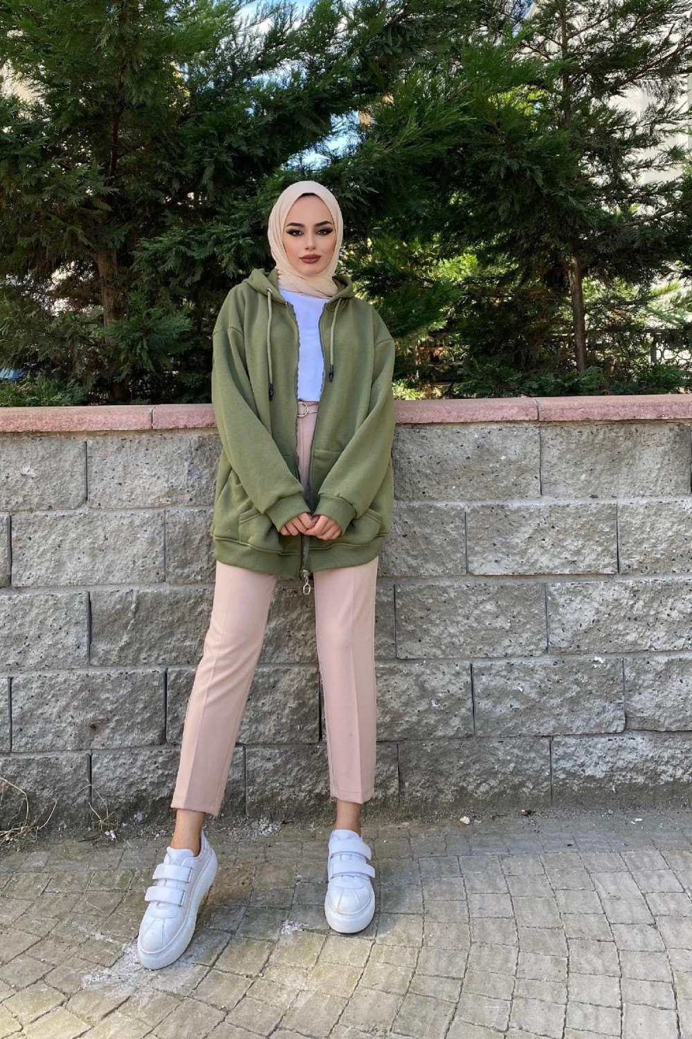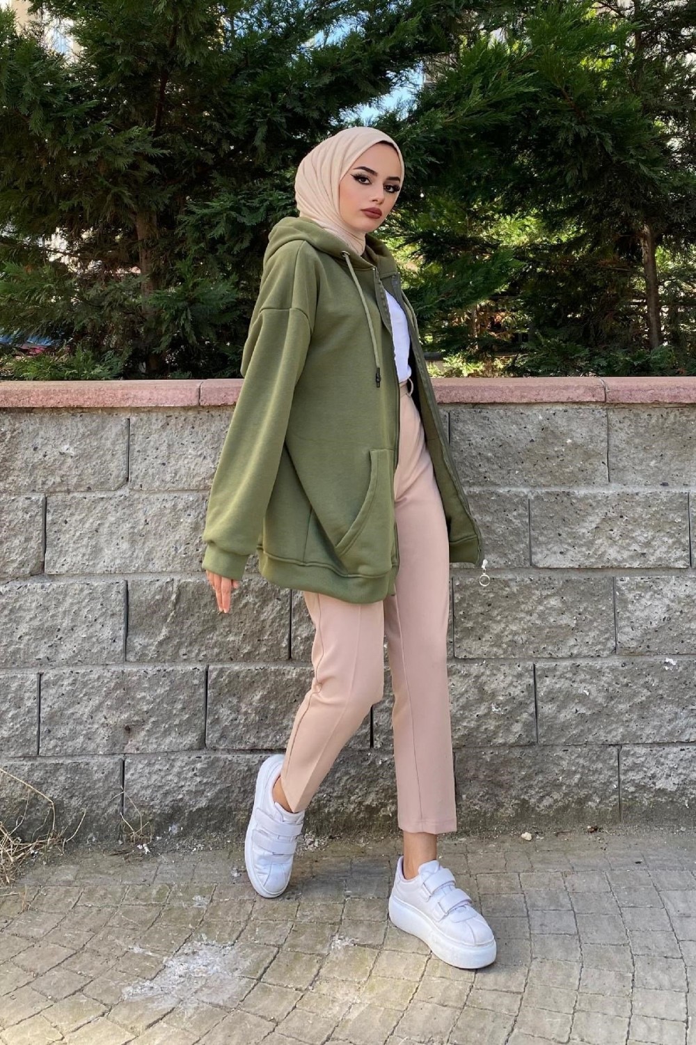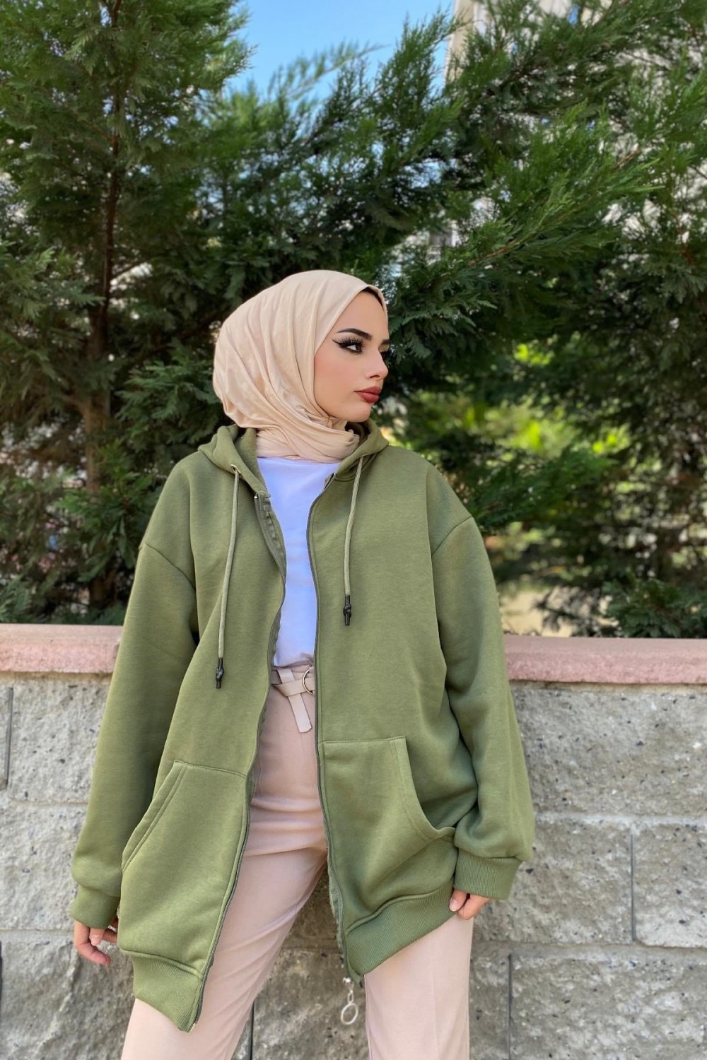 Fermuarlı Sweat Haki