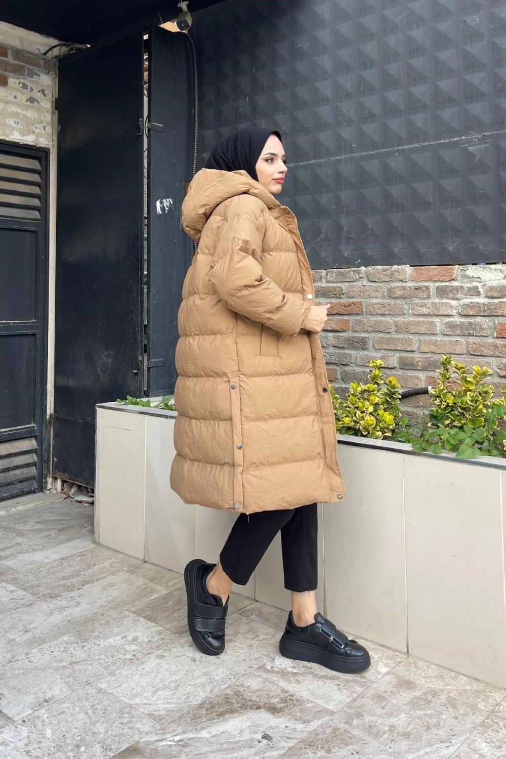 Yanı Çıtçıtlı Mont SütlüKahve