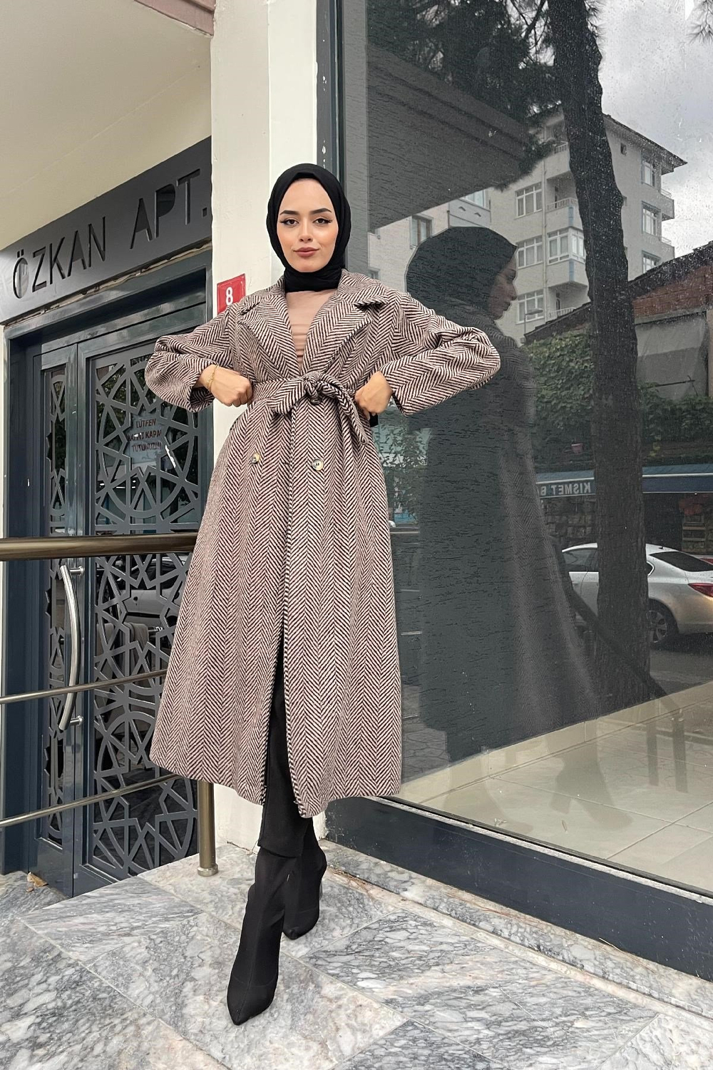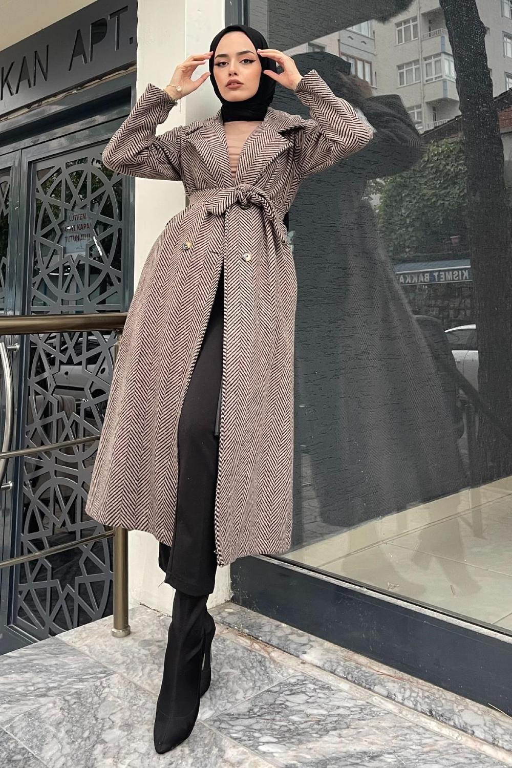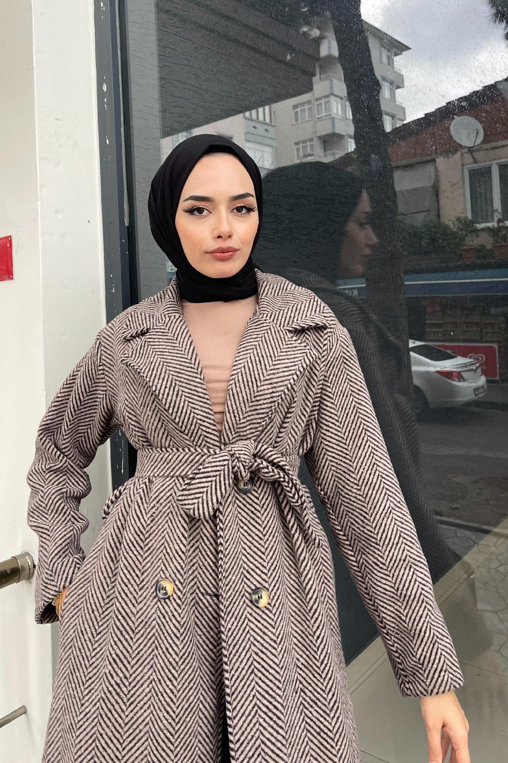 Verev Çizgili Kaşe Kaban SütlüKahve