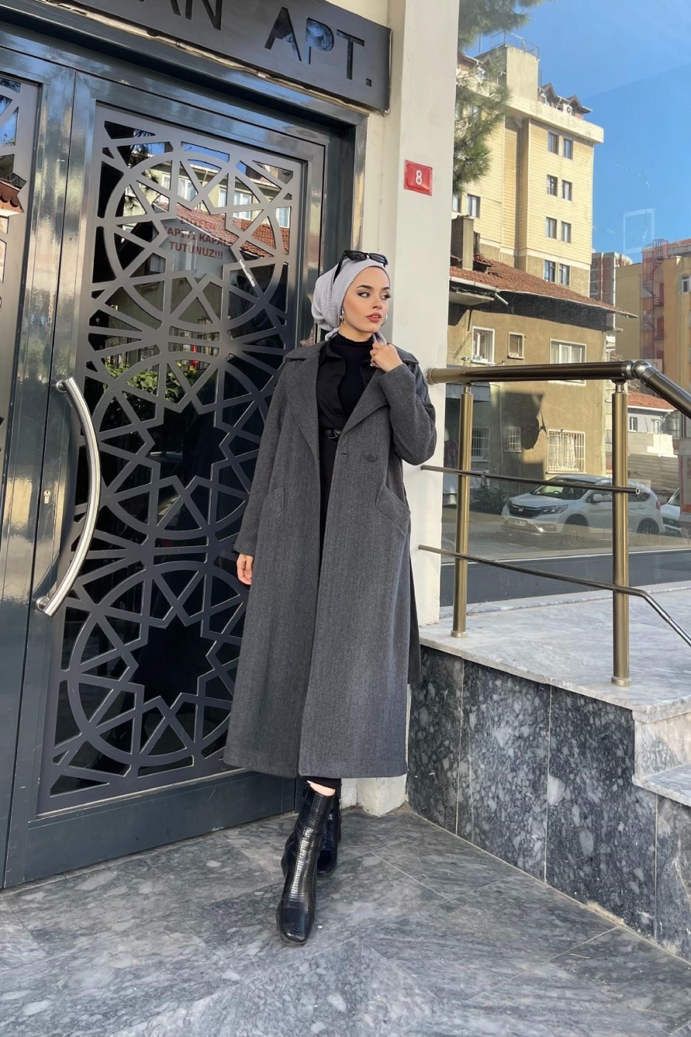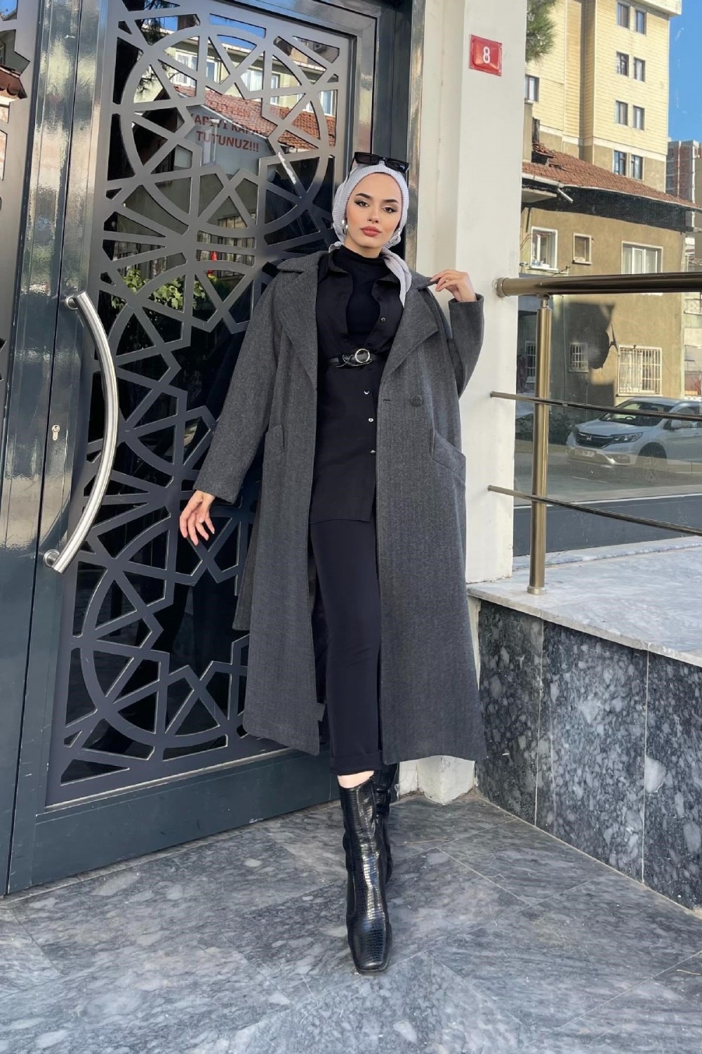Yandan Düğmeli Kaşe Kaban Füme