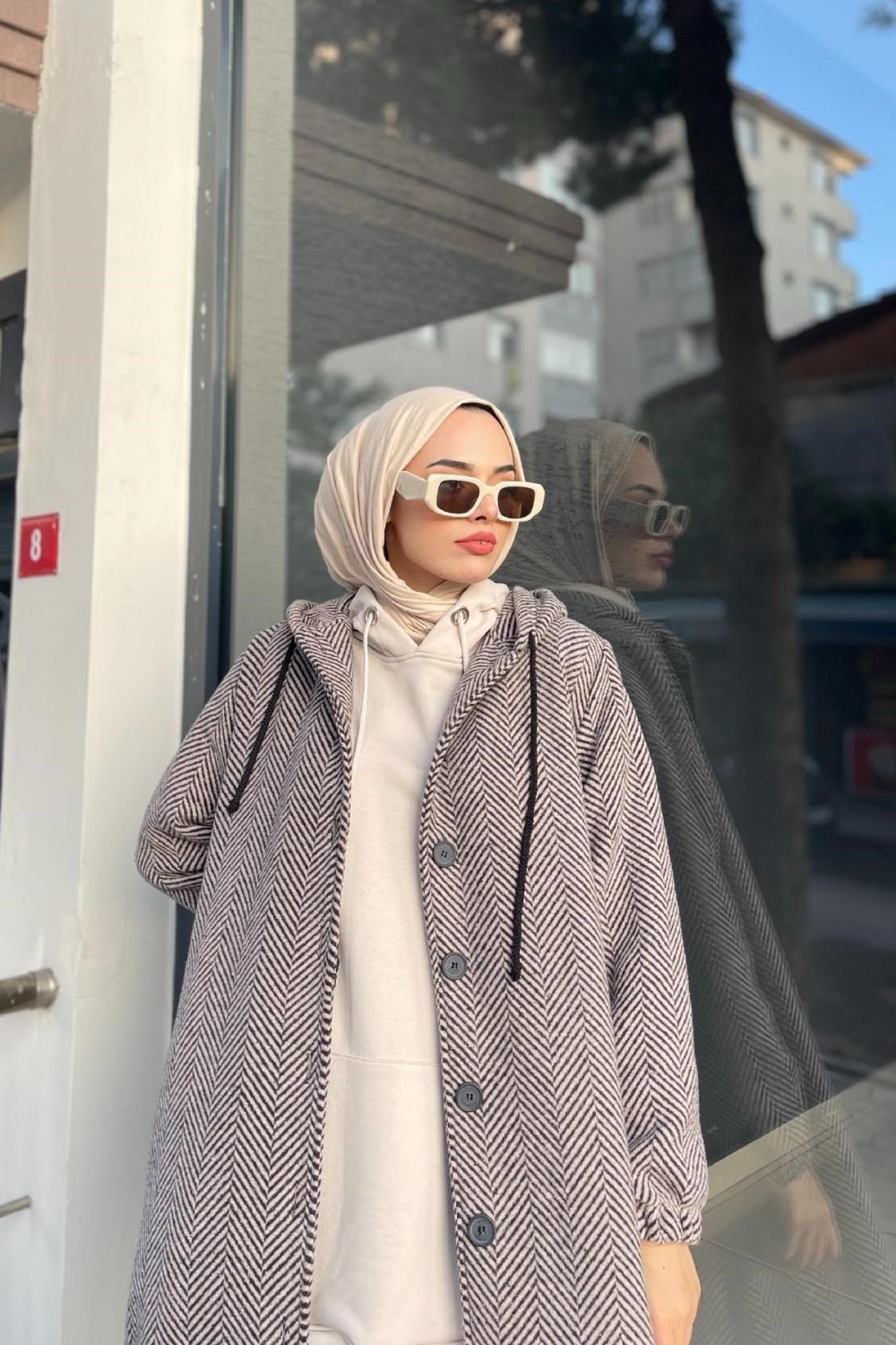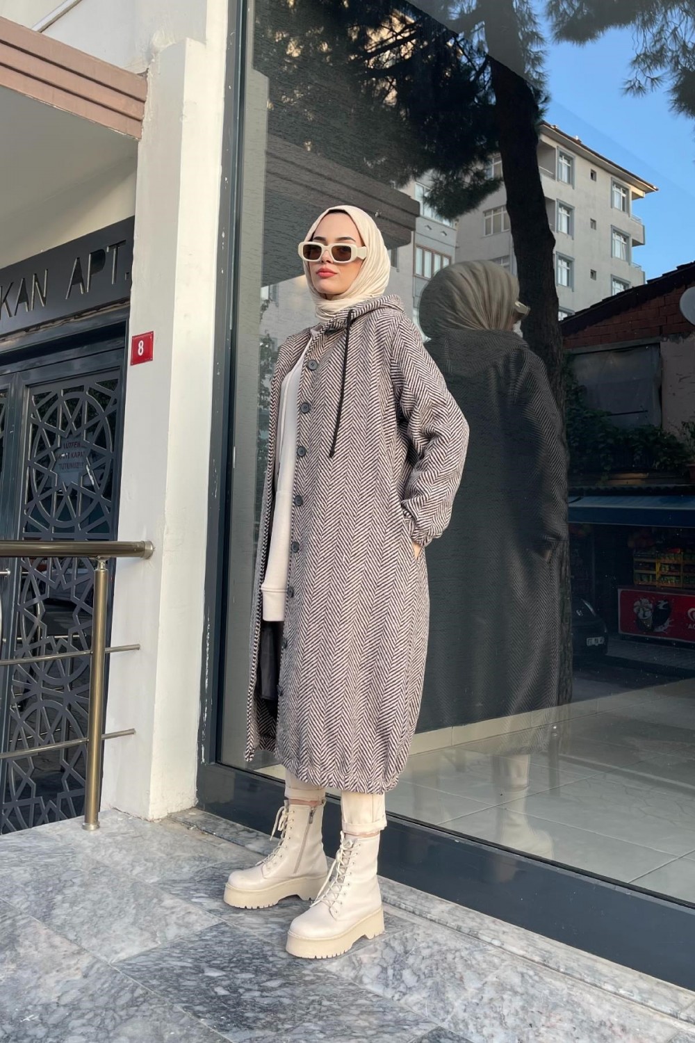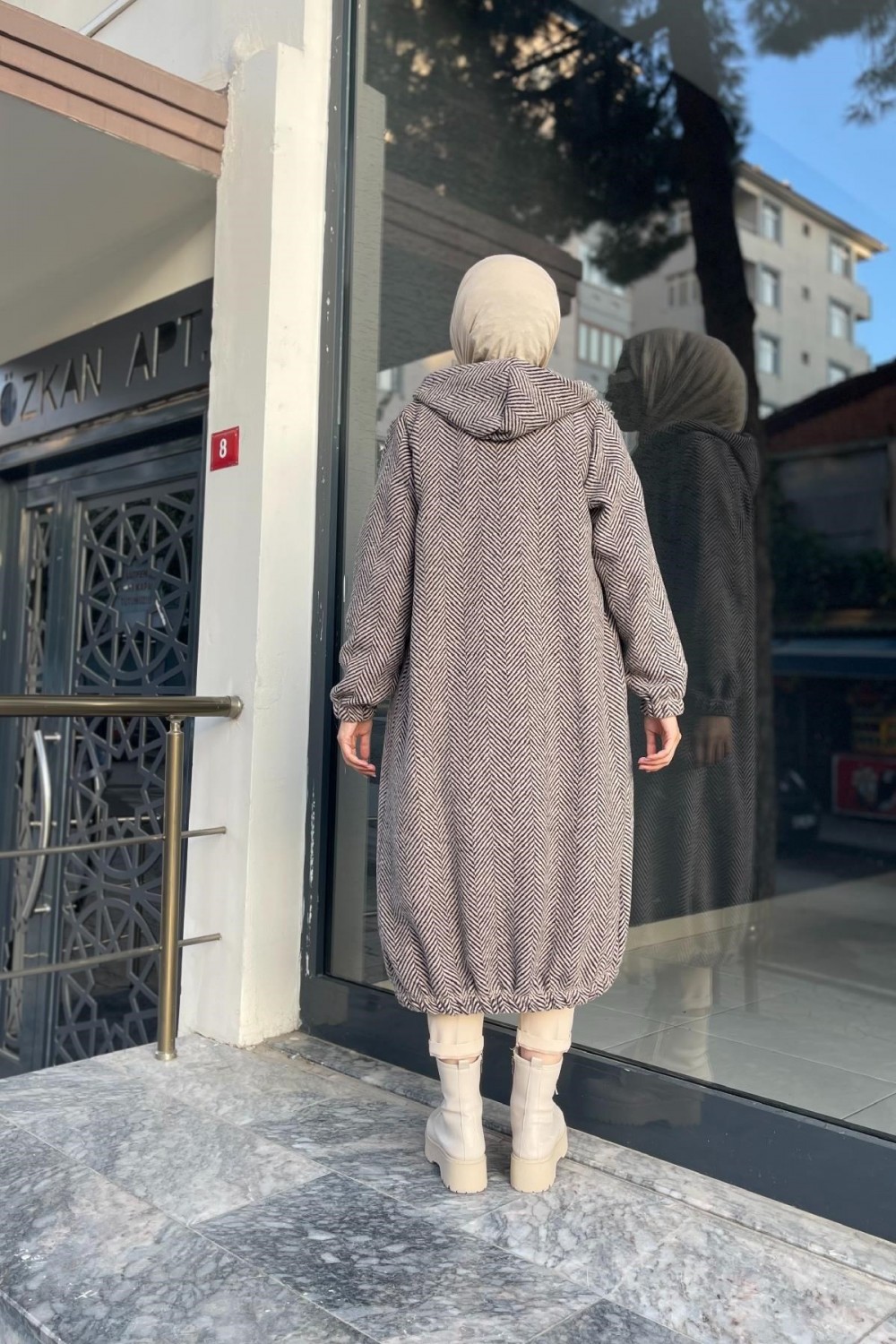 Düğmeli Kapşonlu Kap SütlüKahve