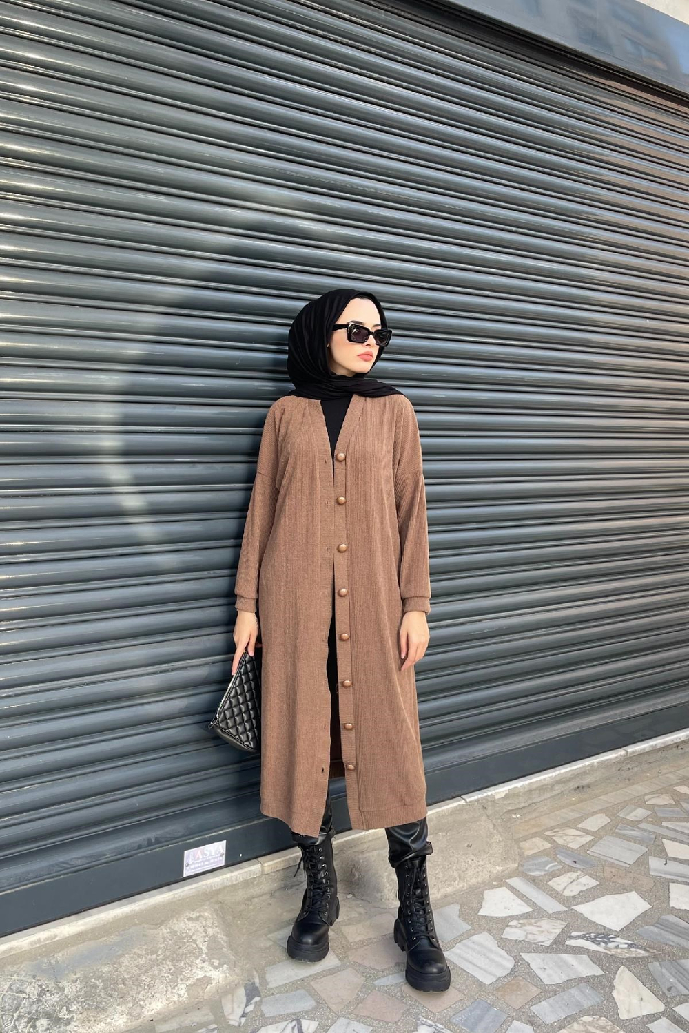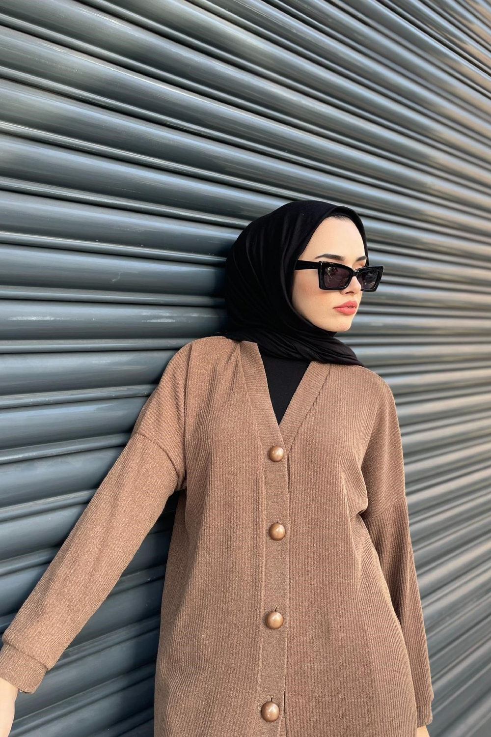 Düğmeli Uzun Hırka Kahverengi