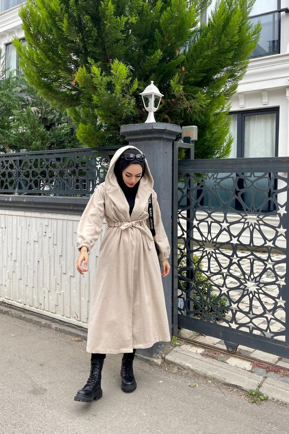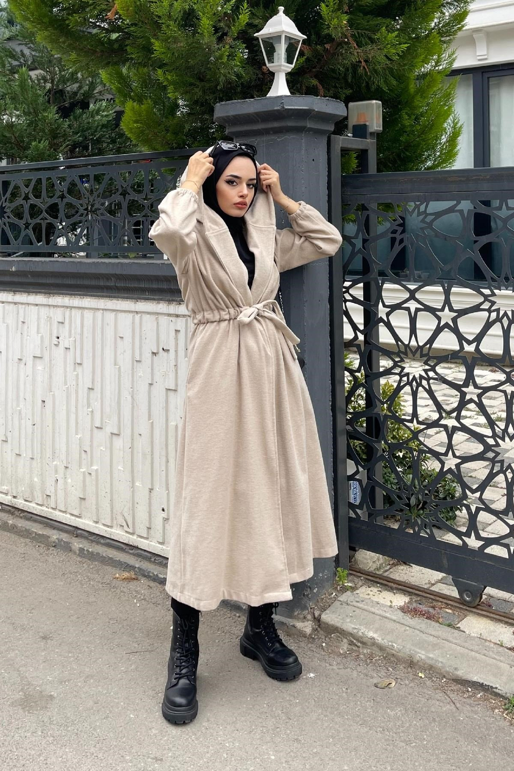 Beli Büzgülü Bağlamalı Kap Bej