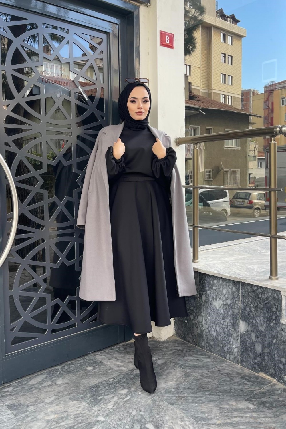 Düğmeli Astarlı Kaban Gri