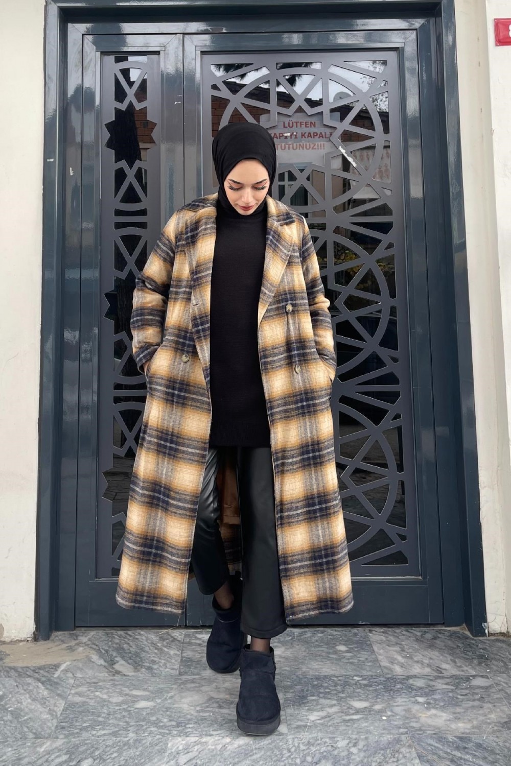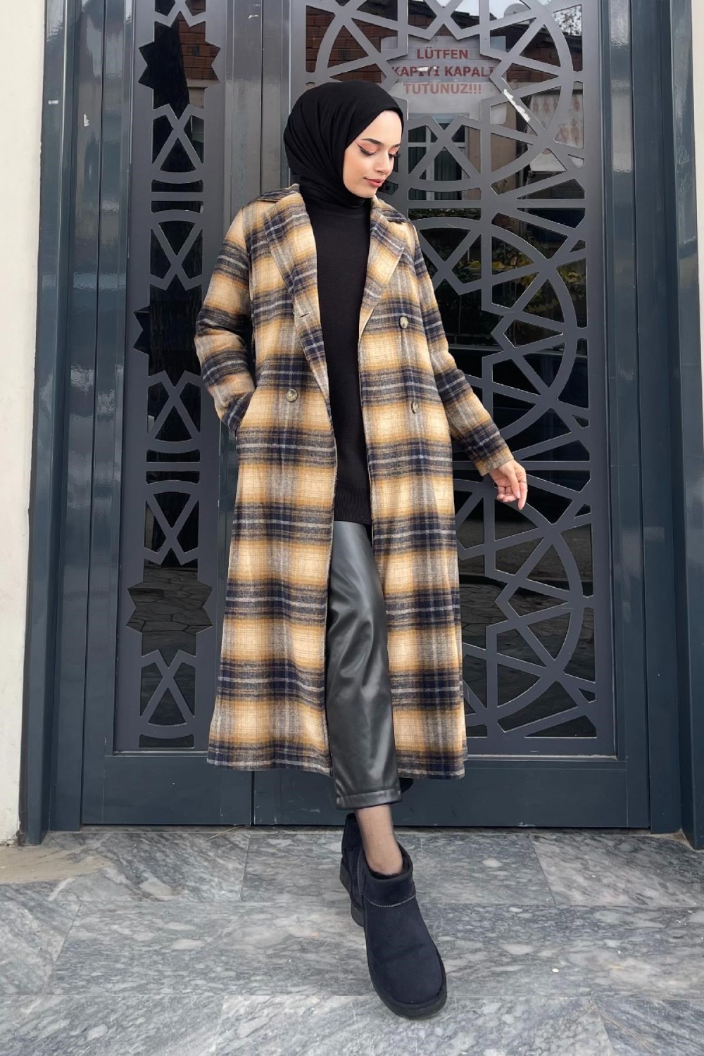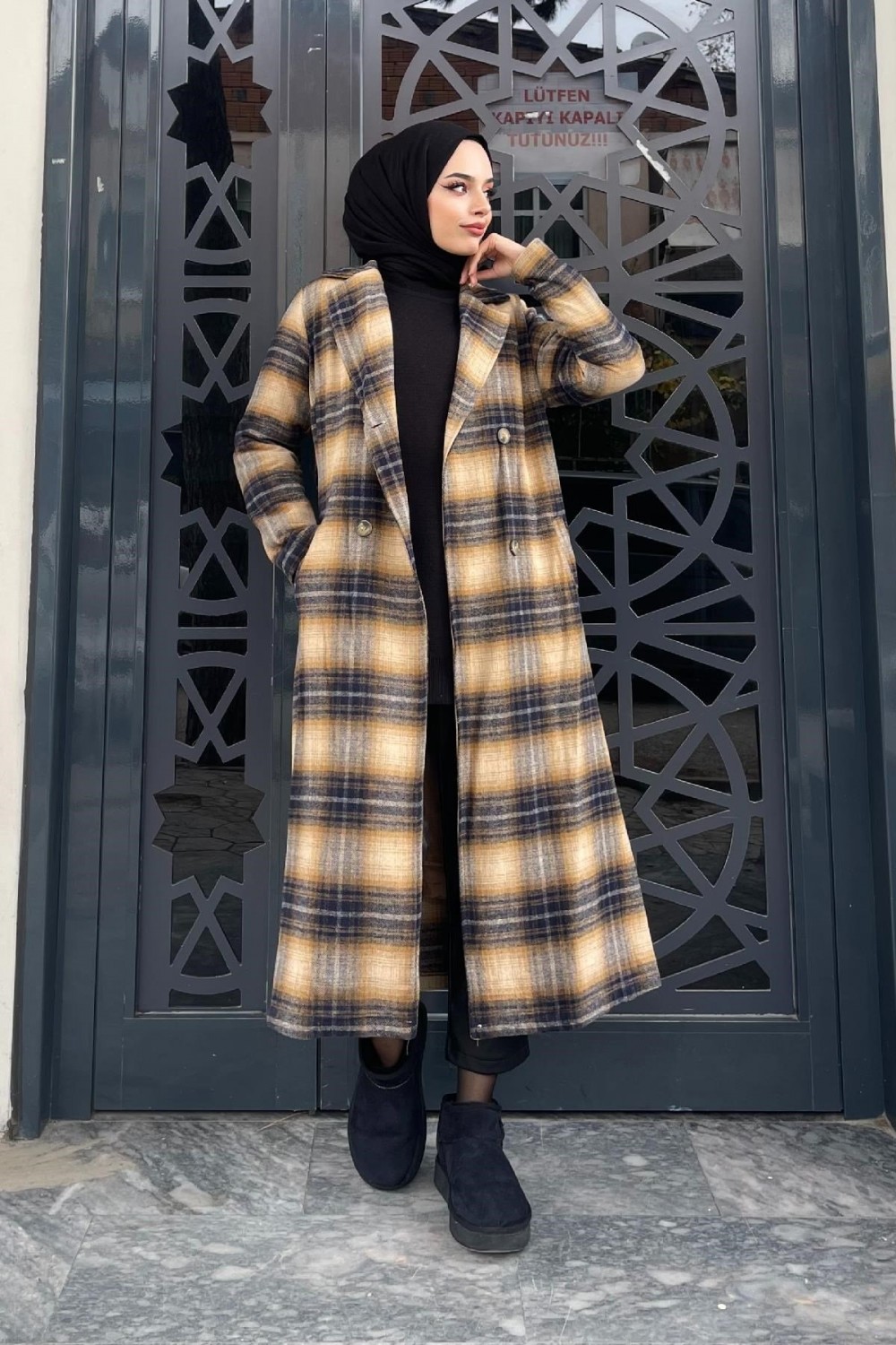 Düğmeli Astarlı Kaşe Kaban Kahverengi