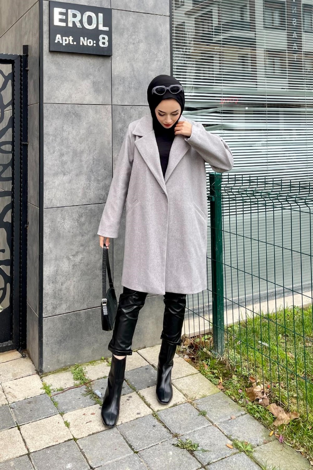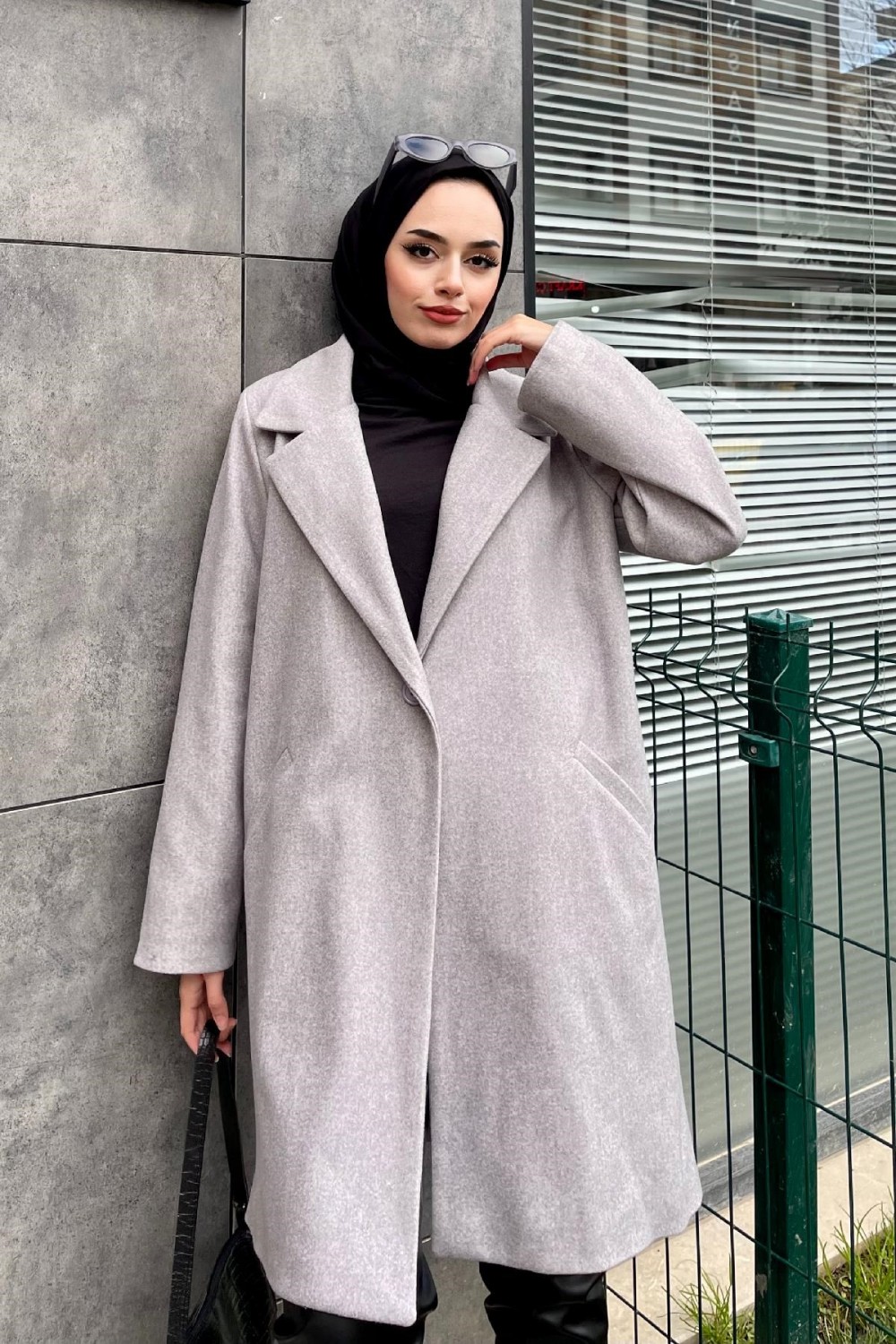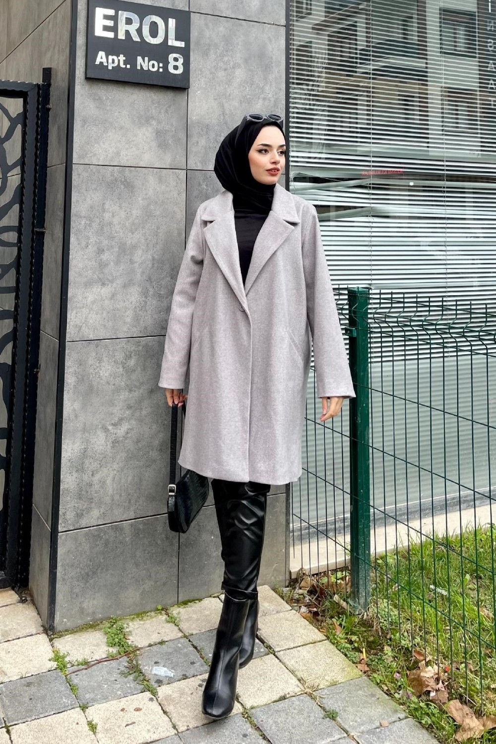 Filetolu Kısa Kaban Gri