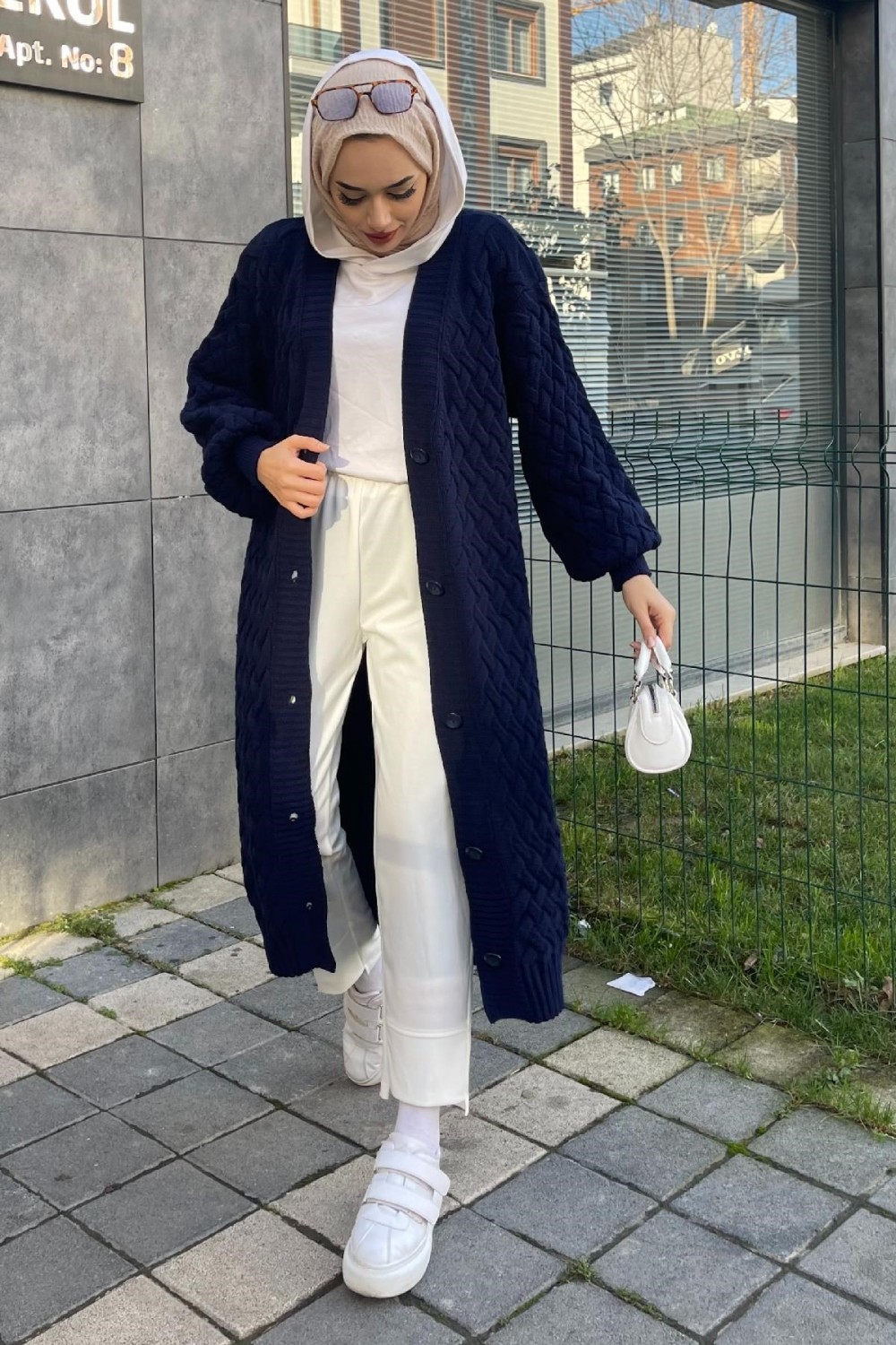 Düğmeli Kalın Hırka Lacivert
