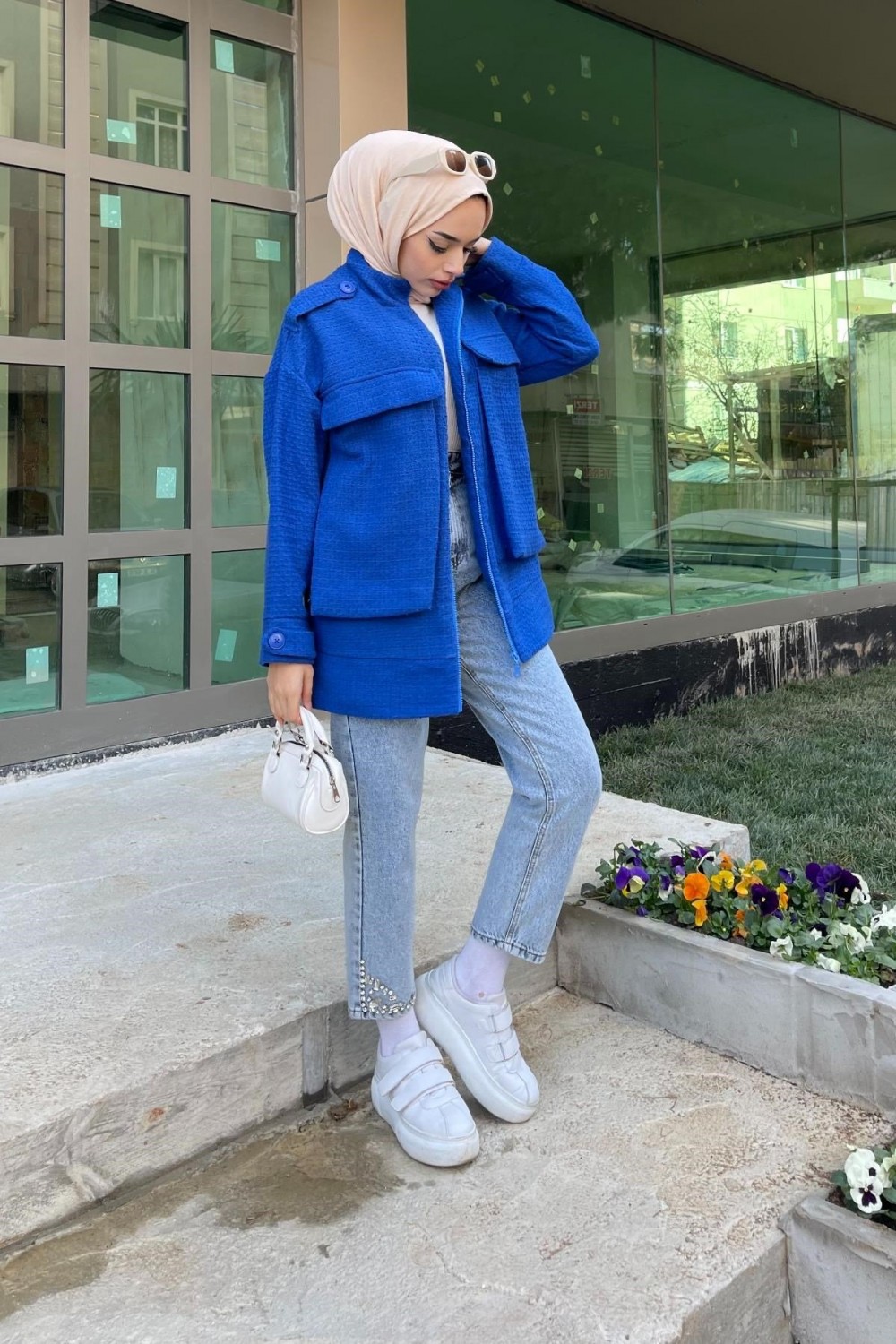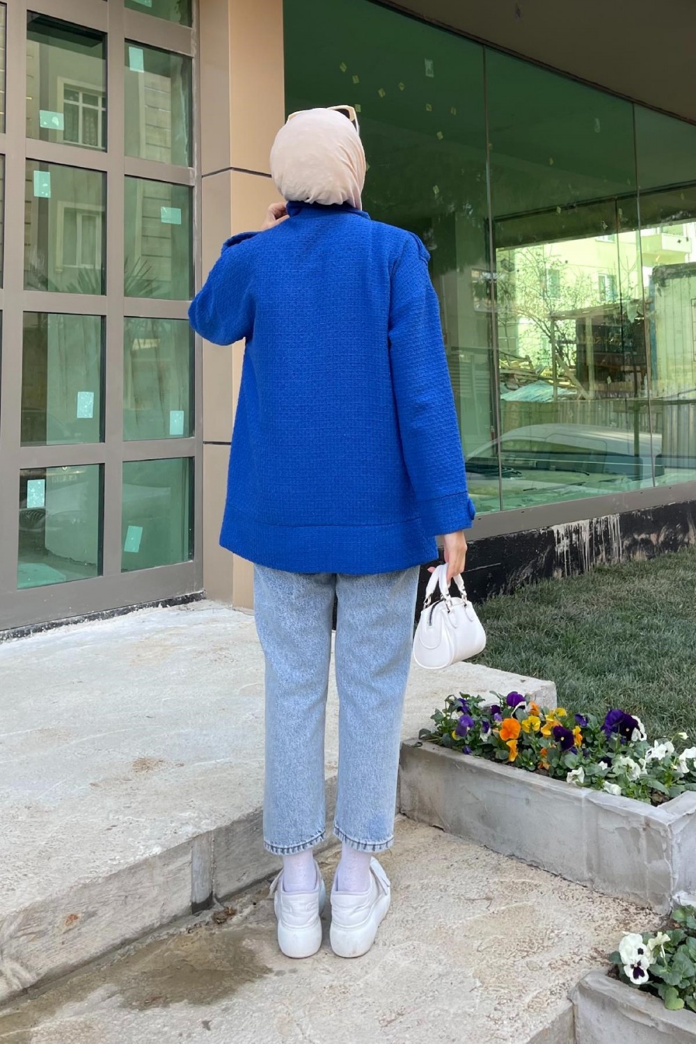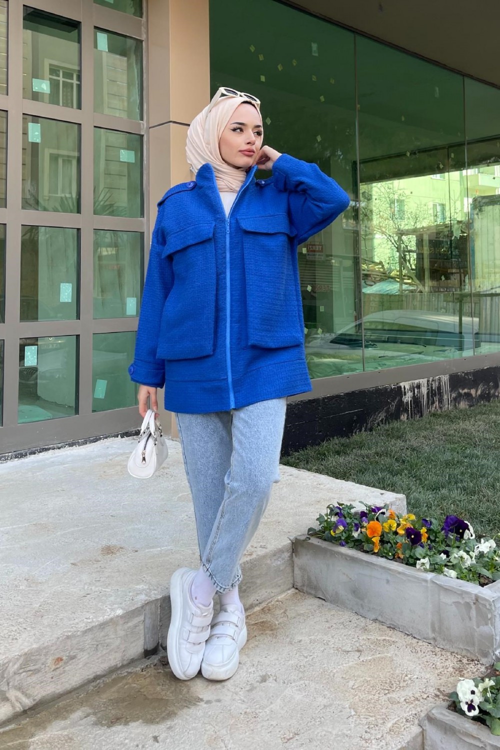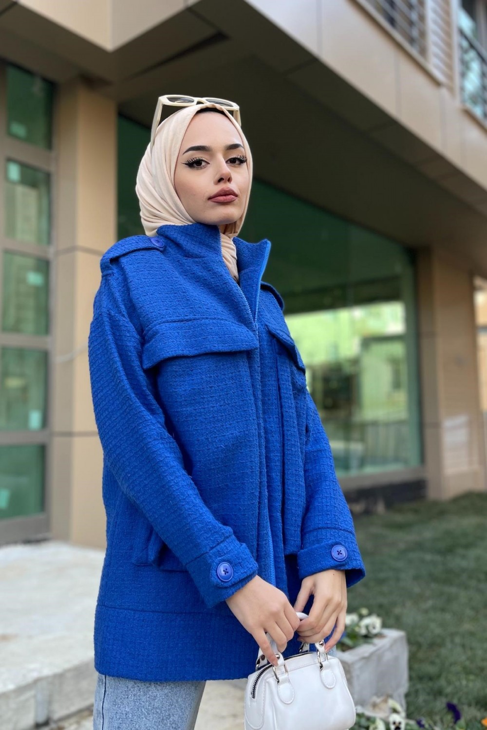 İri Cepli Tüvit Ceket Saks