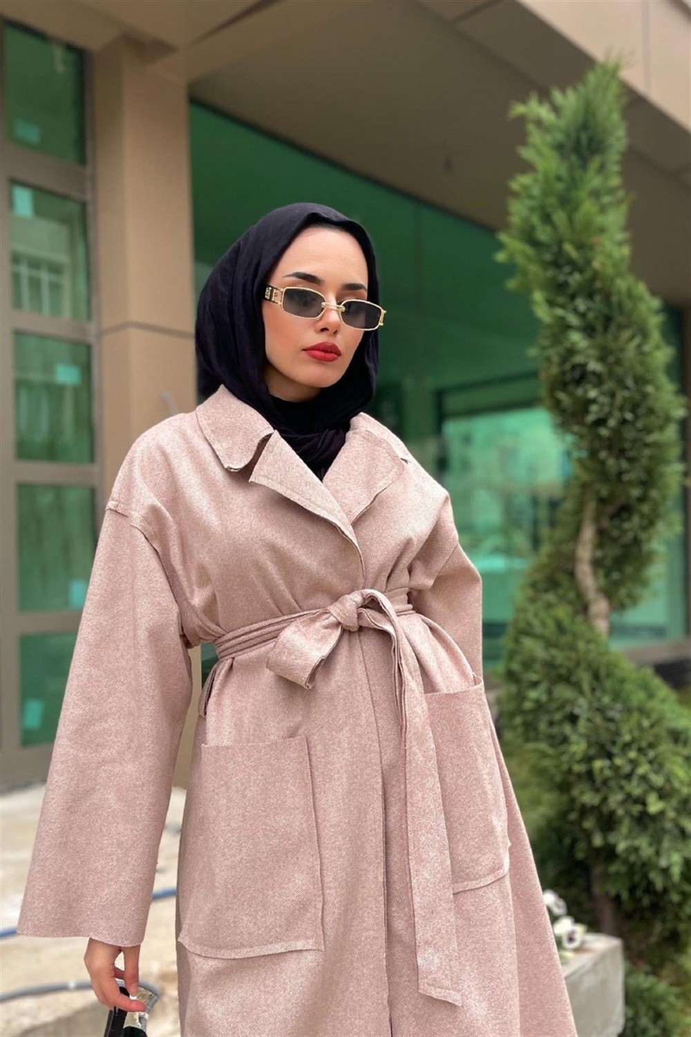 Cepli Şal Yaka Kaban Vizon