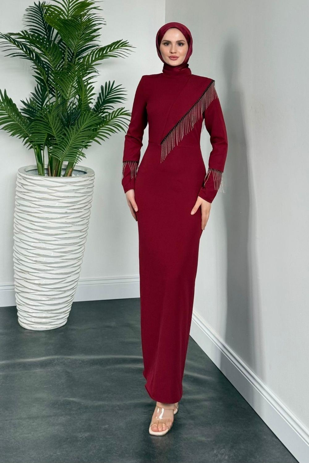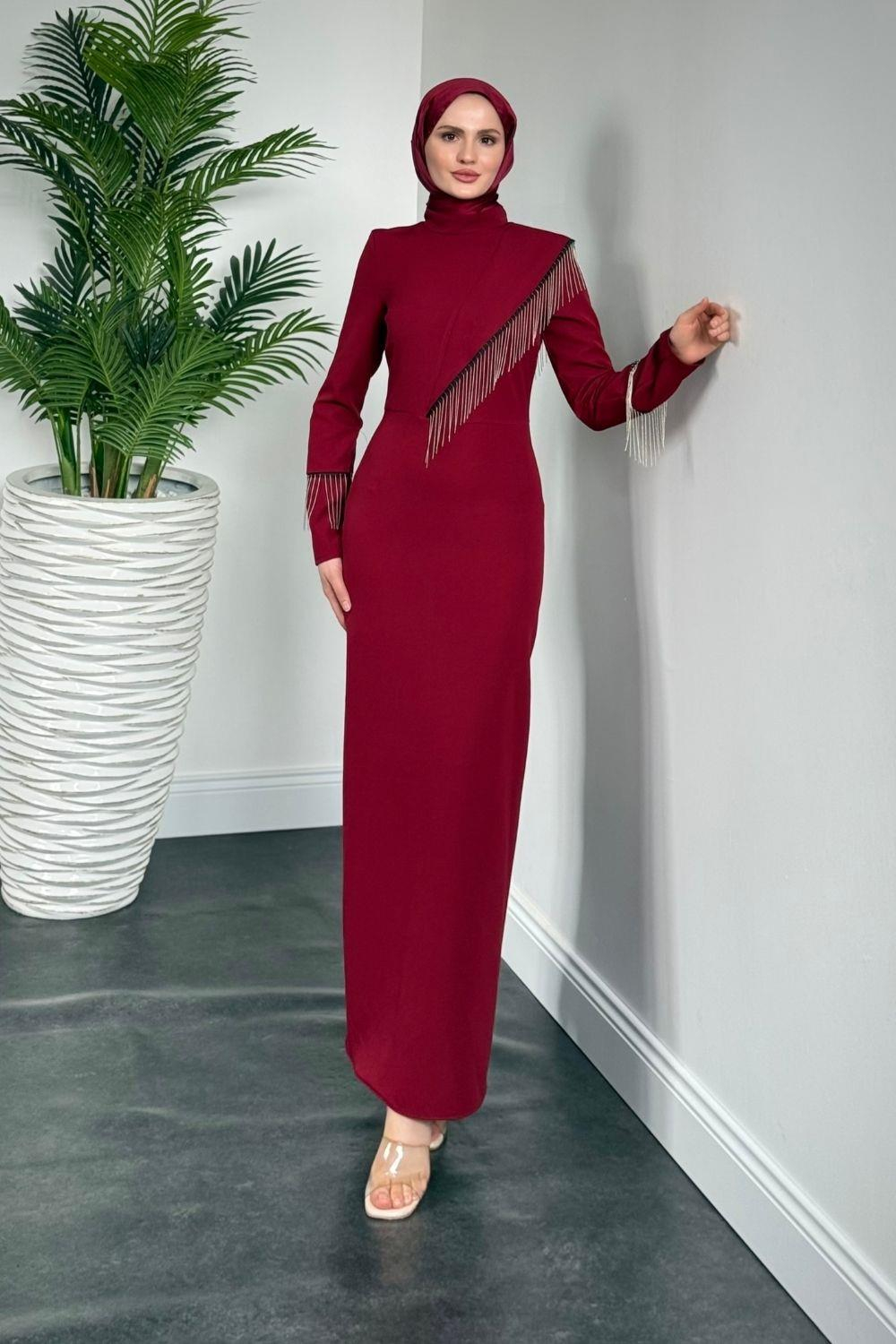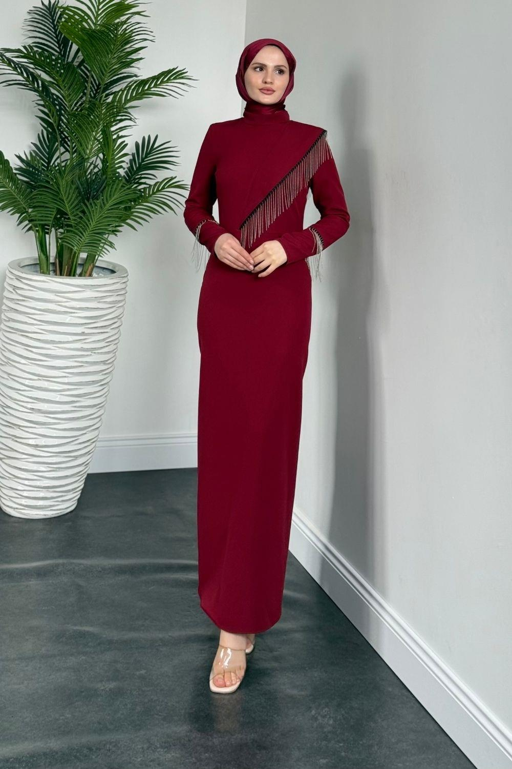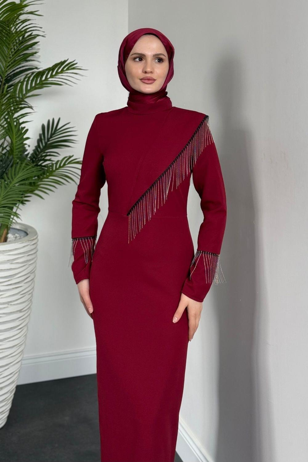 Kalia Püsküllü Kalem Elbise Bordo