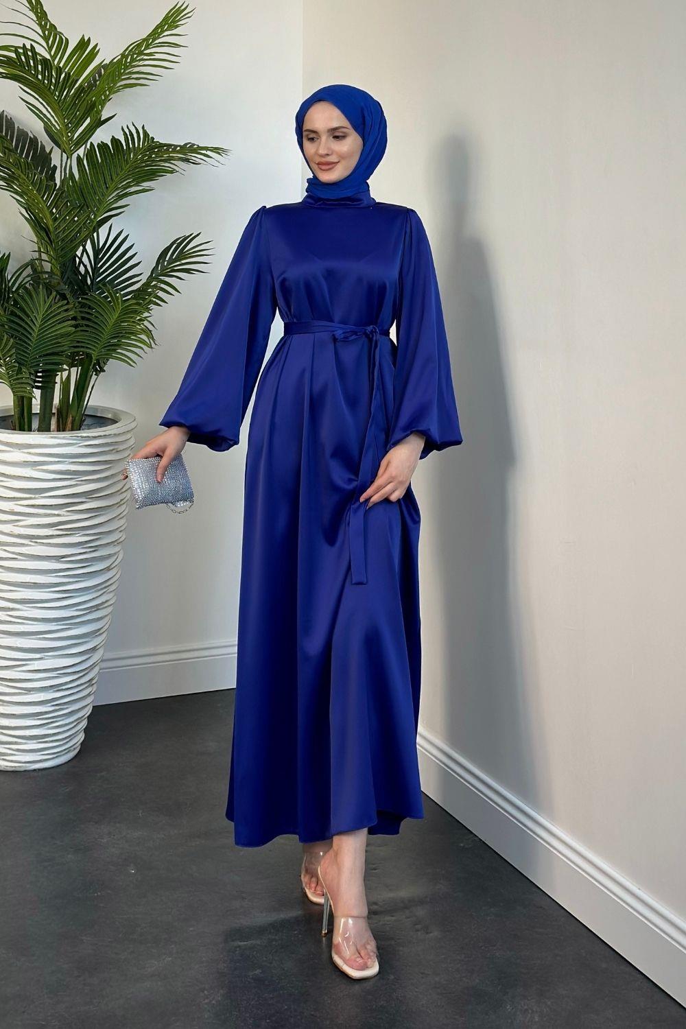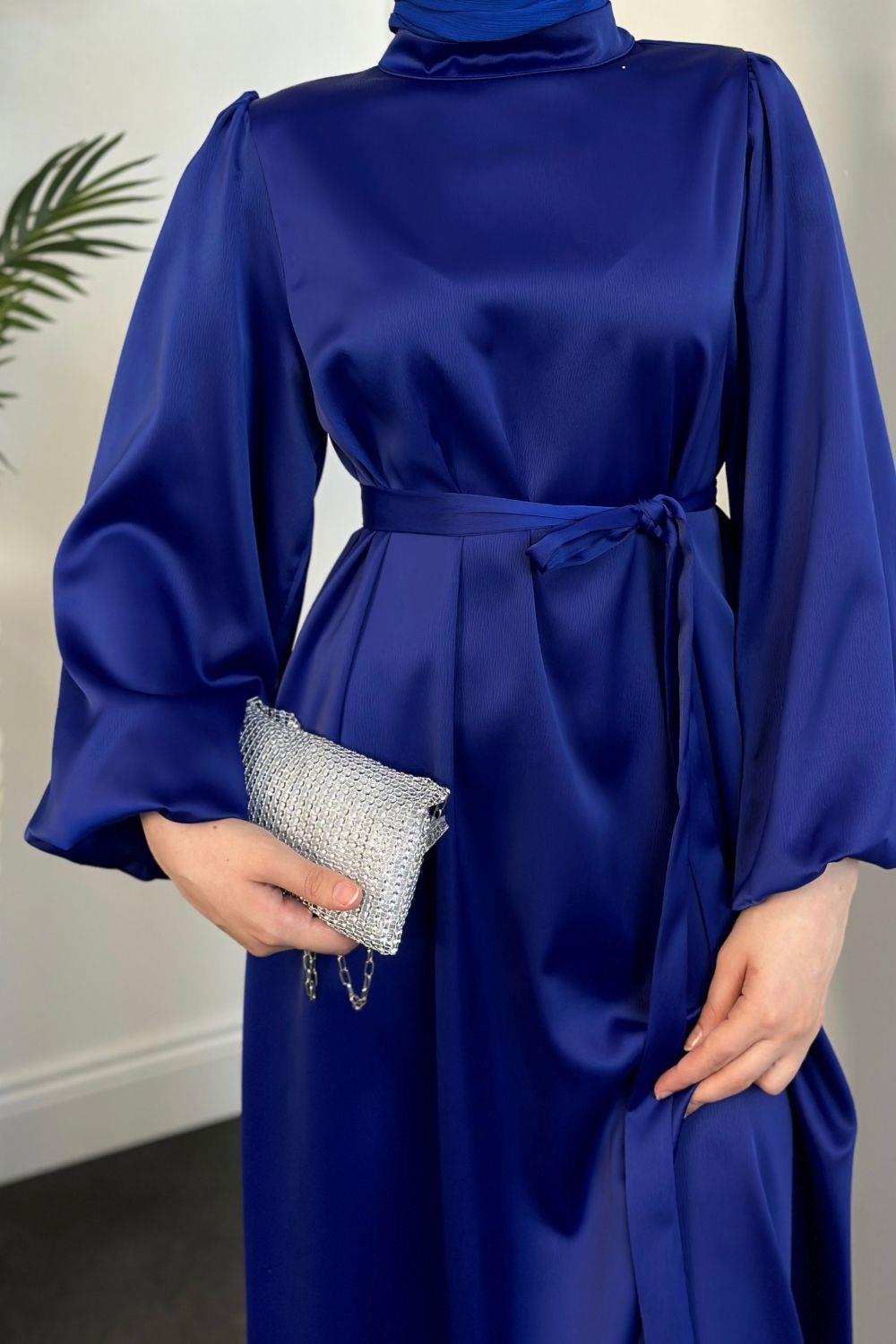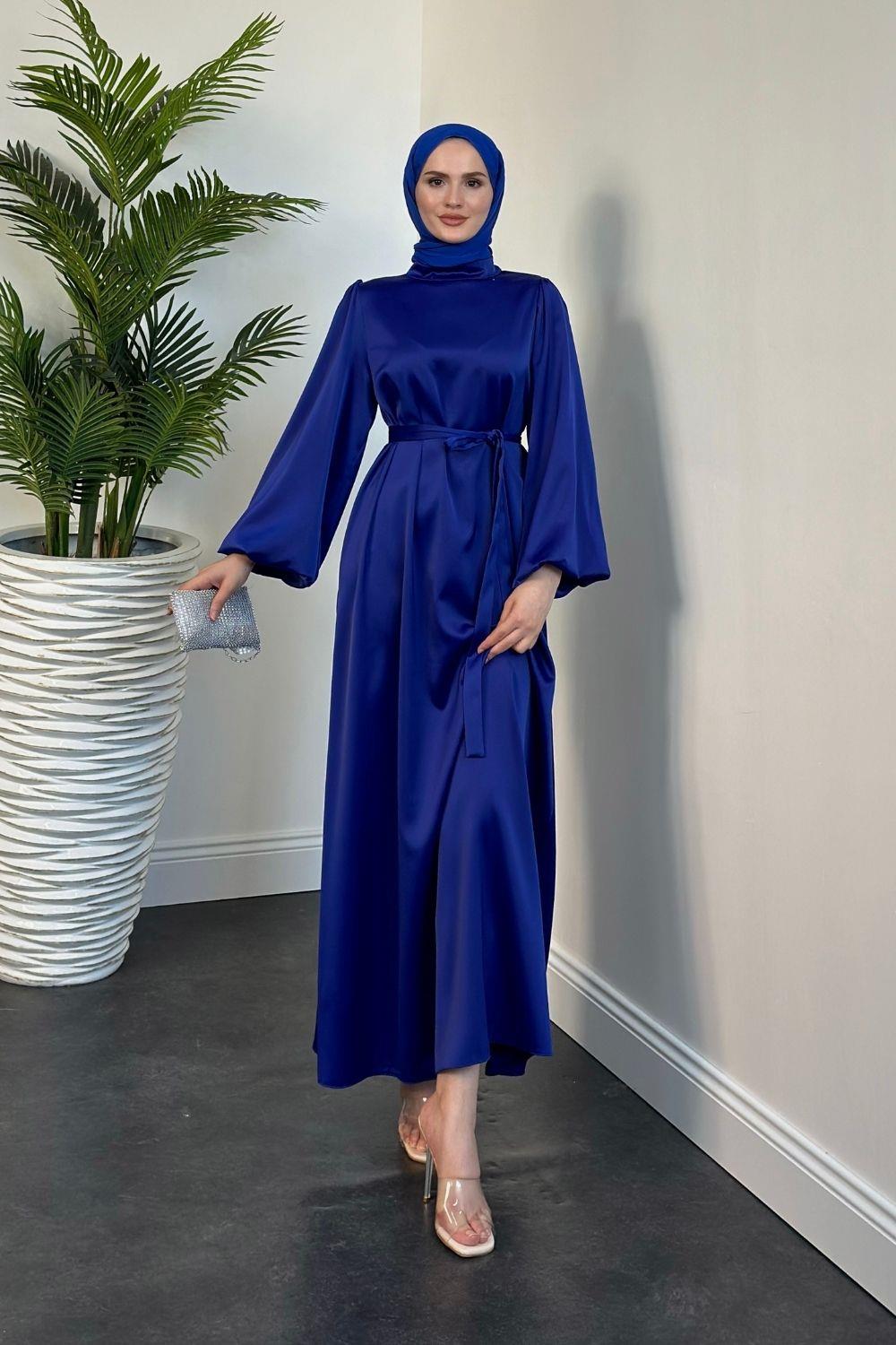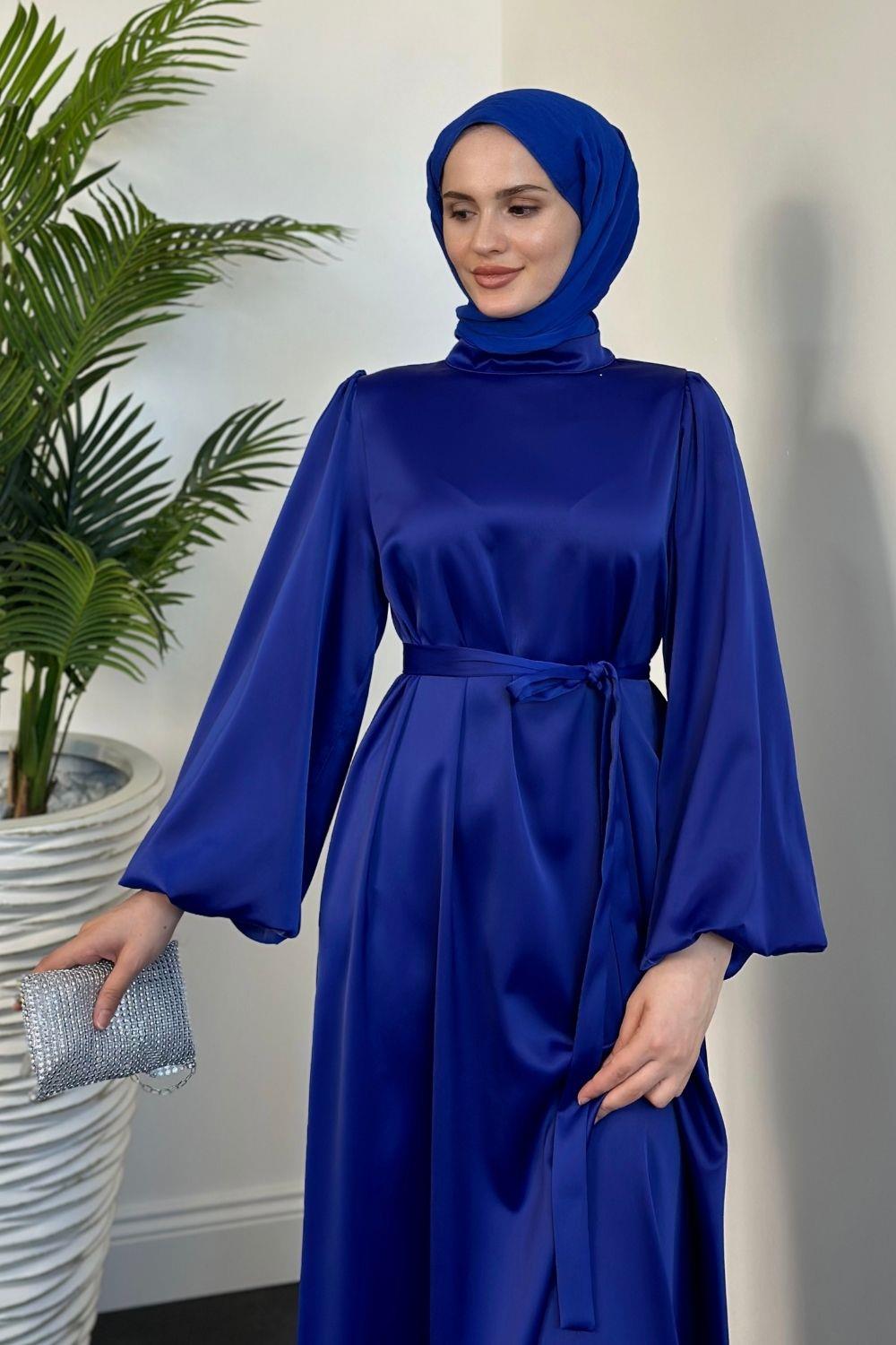 Dimitra Balon Kol Saten Elbise Saks