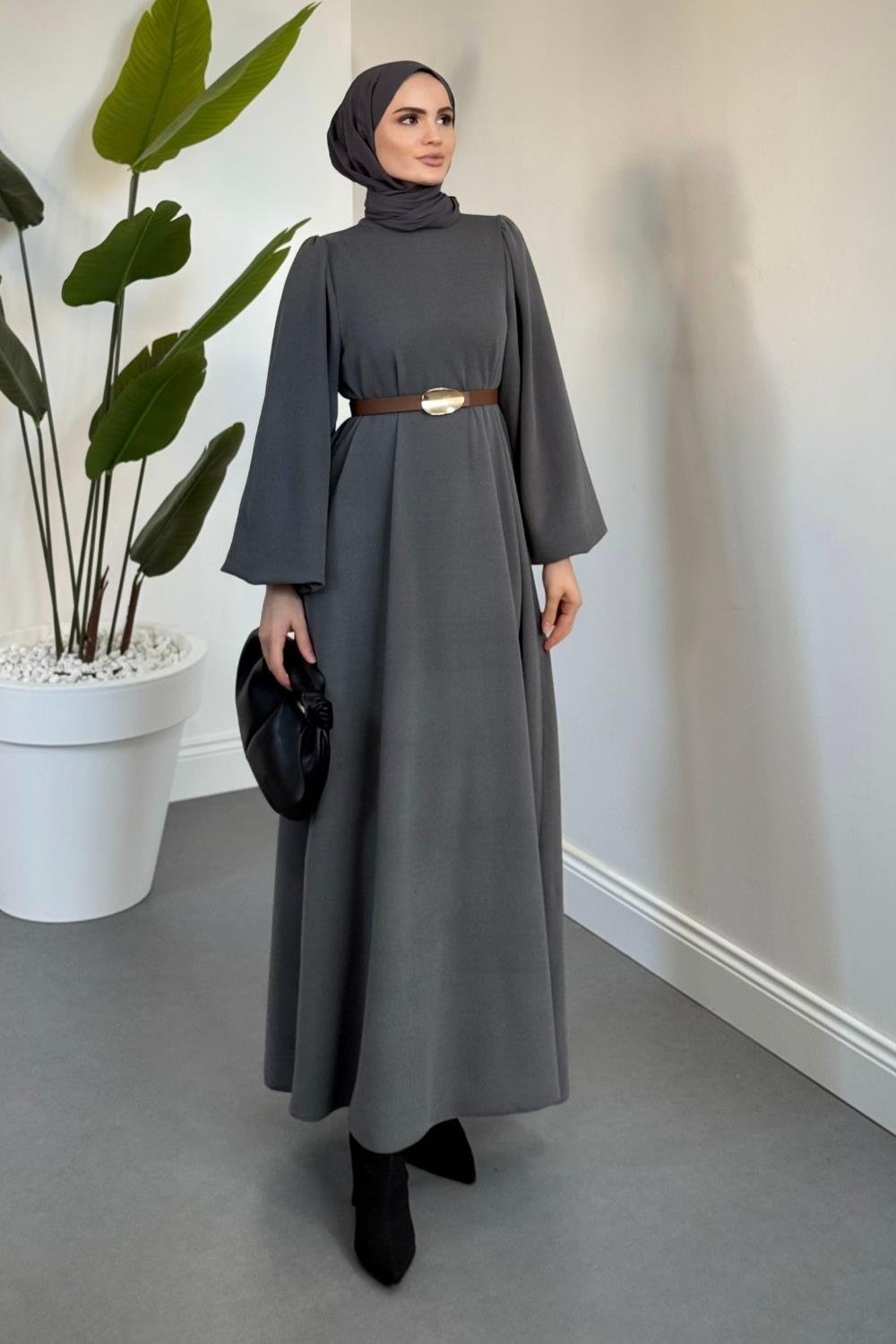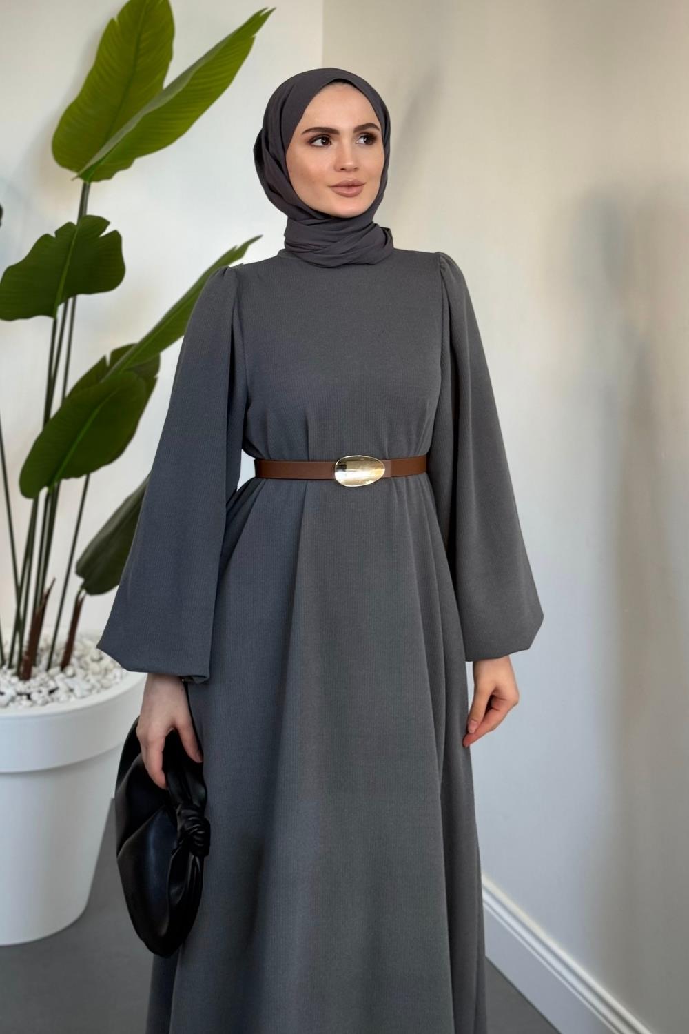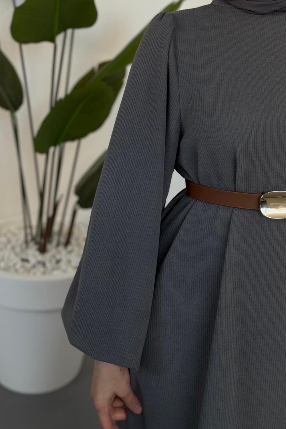 Blake Fitilli Kemerli Elbise Füme