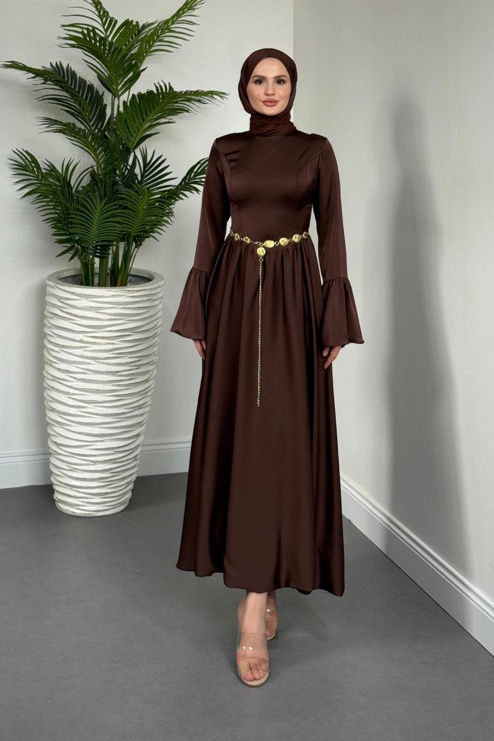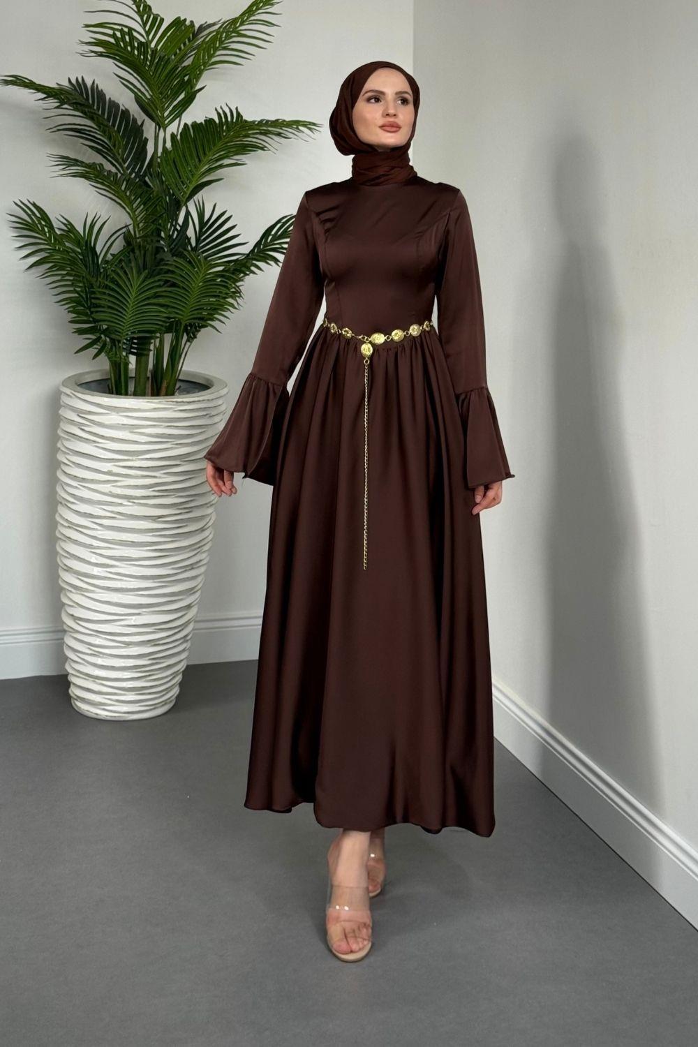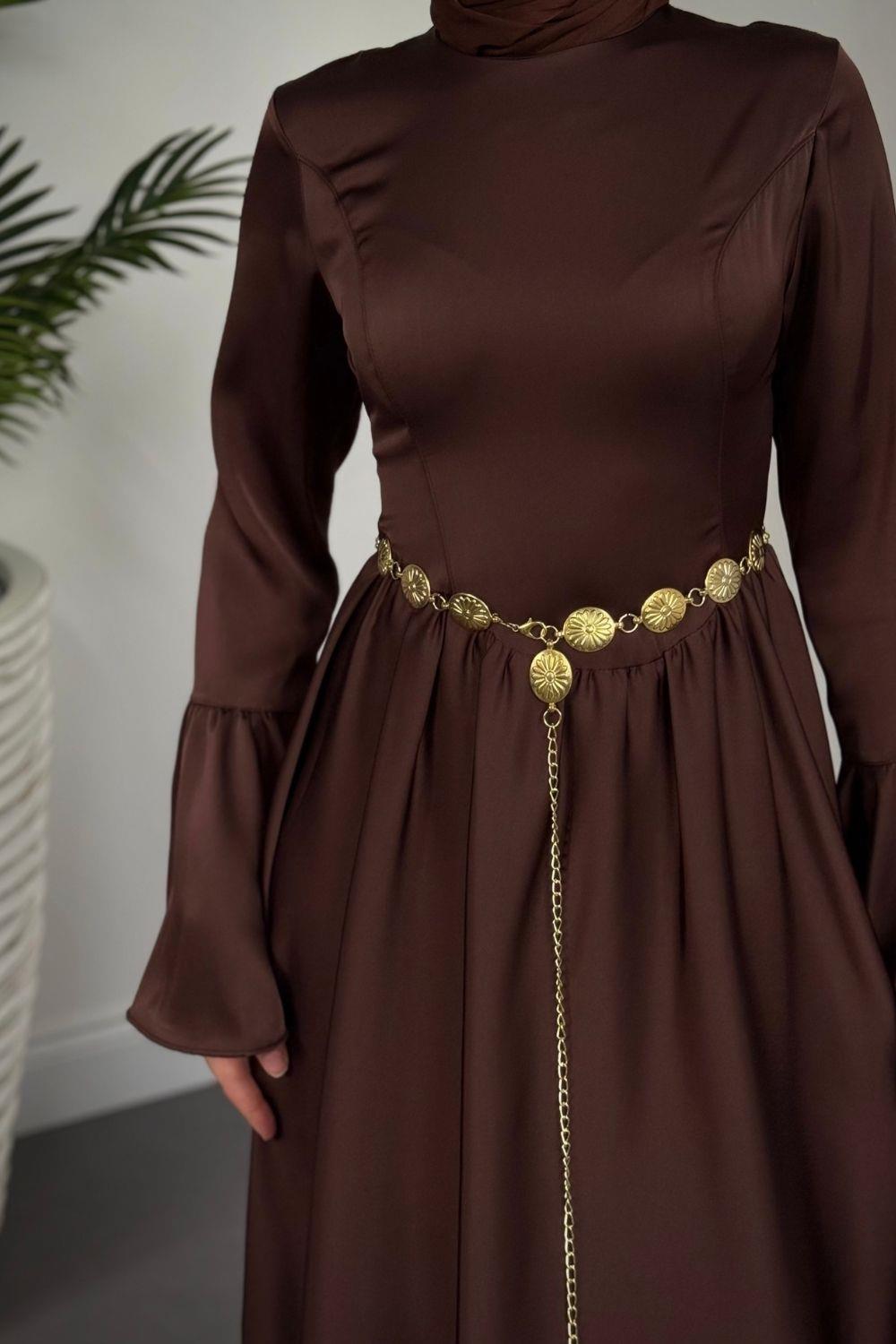 Orville Gold Kemerli Balon Etek Elbise Kahvereng(KEMERSİZ)