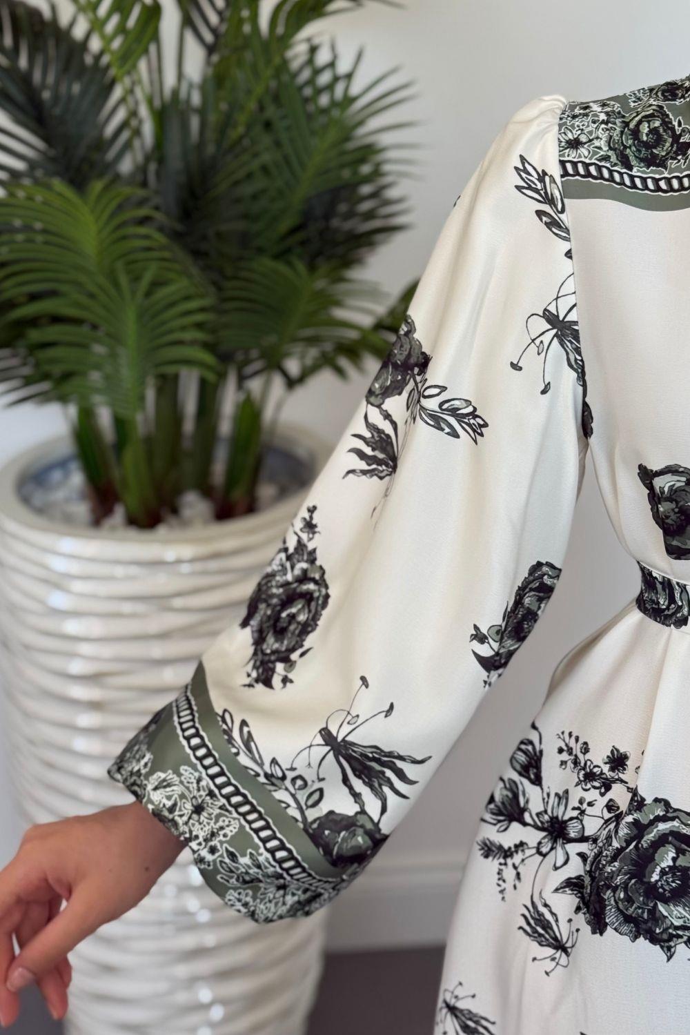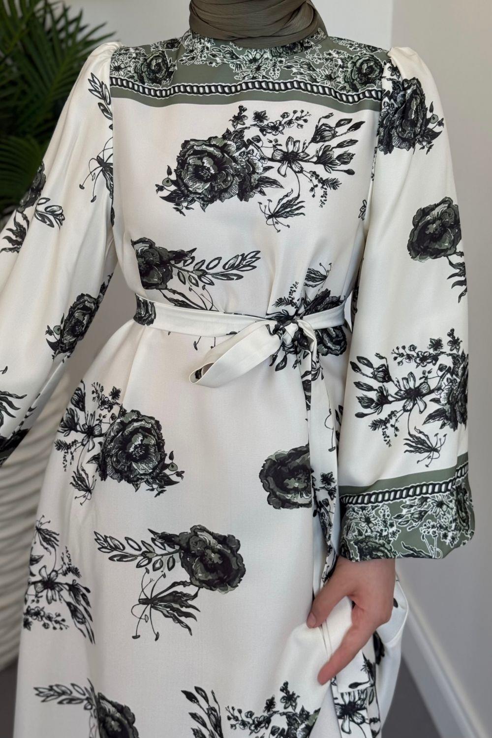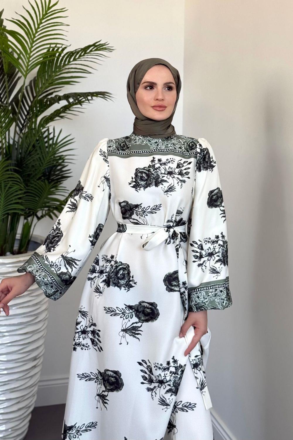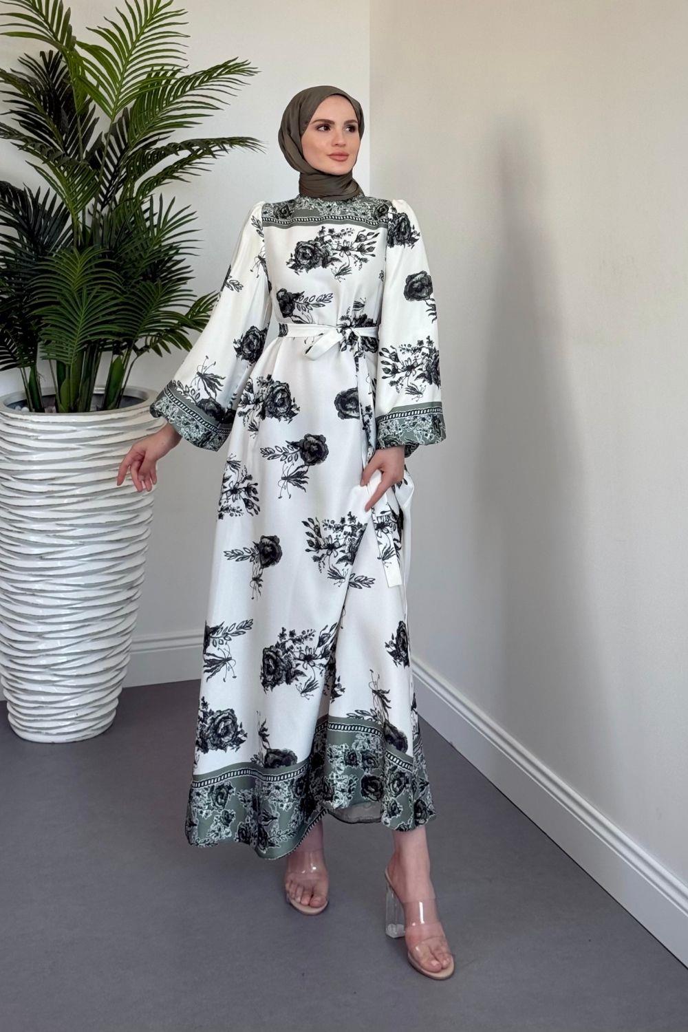 Ellarose Saten Elbise Haki