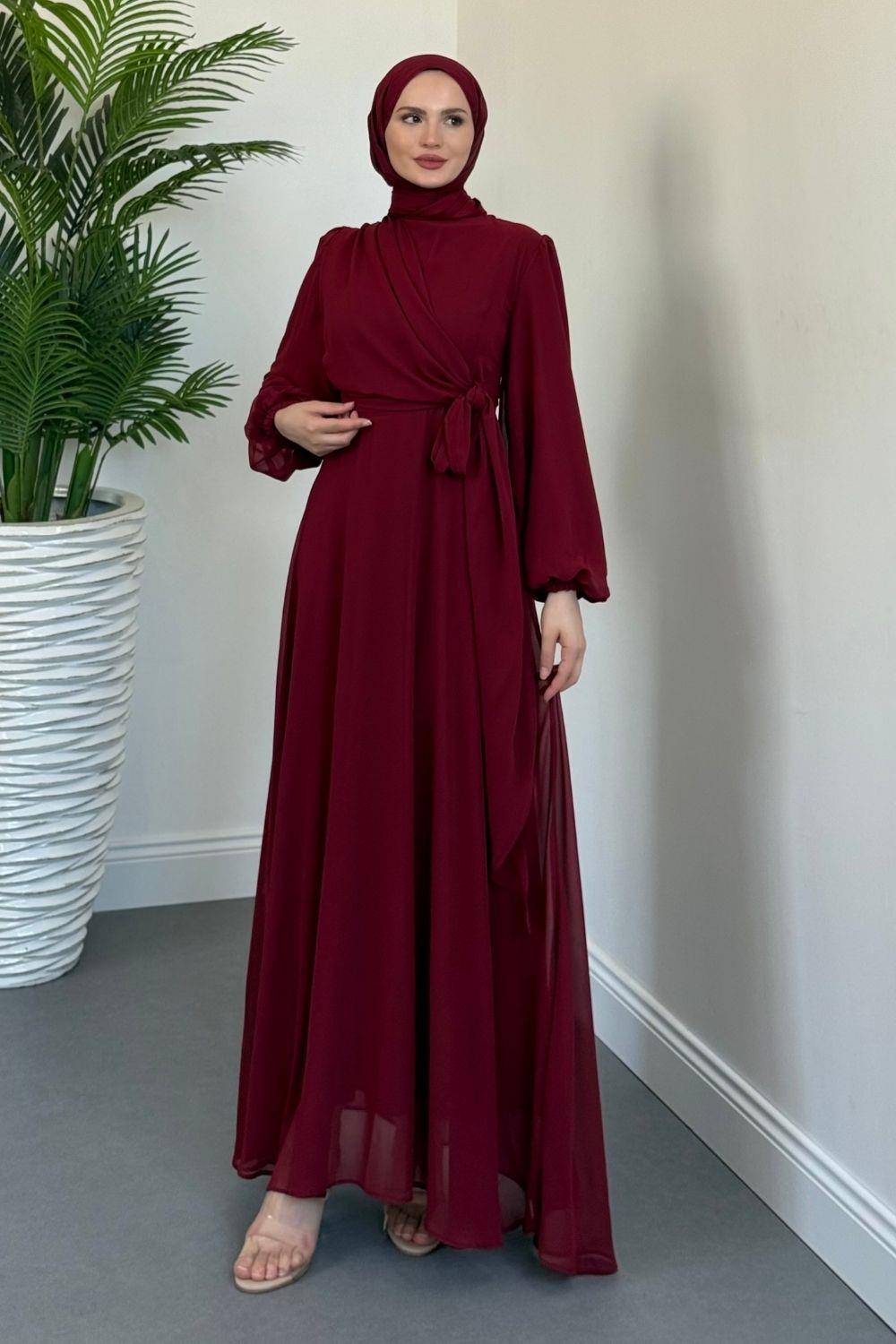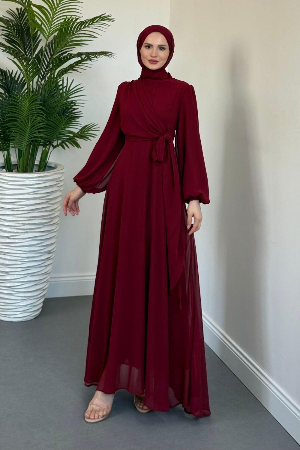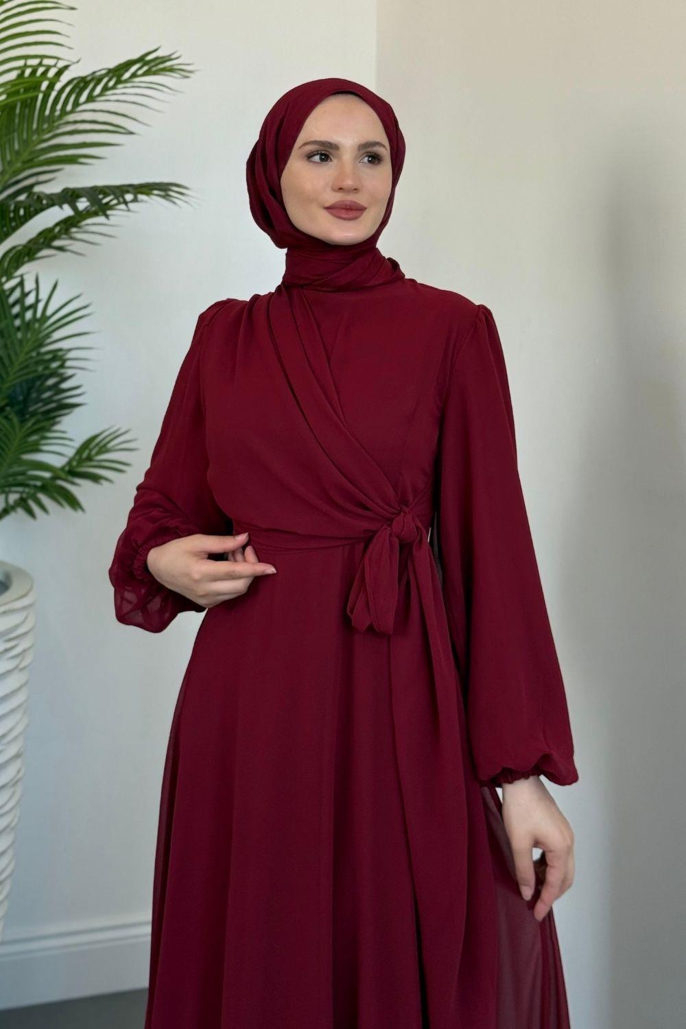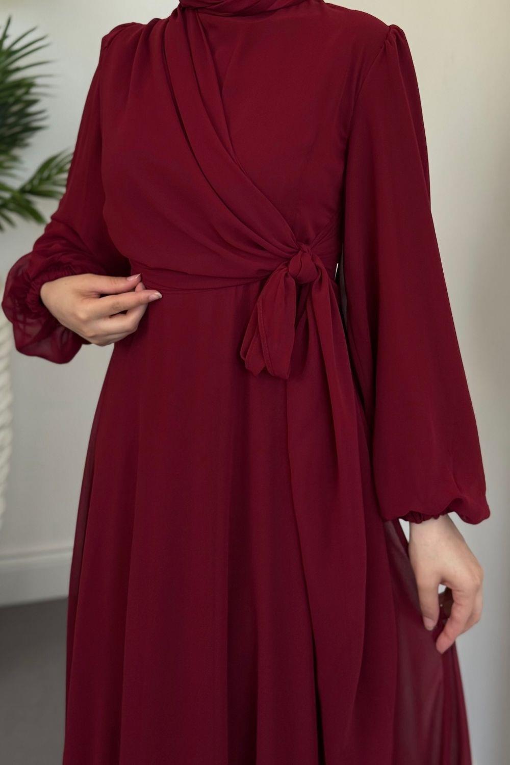 Onstantic Yandan Bağlamalı Elbise Bordo