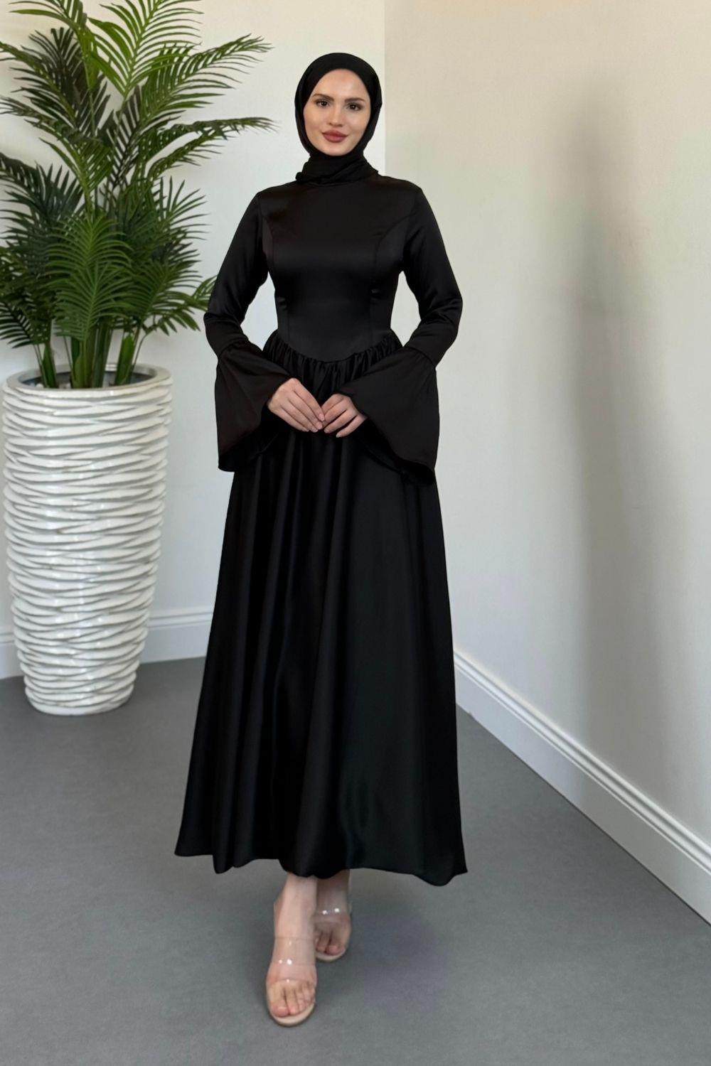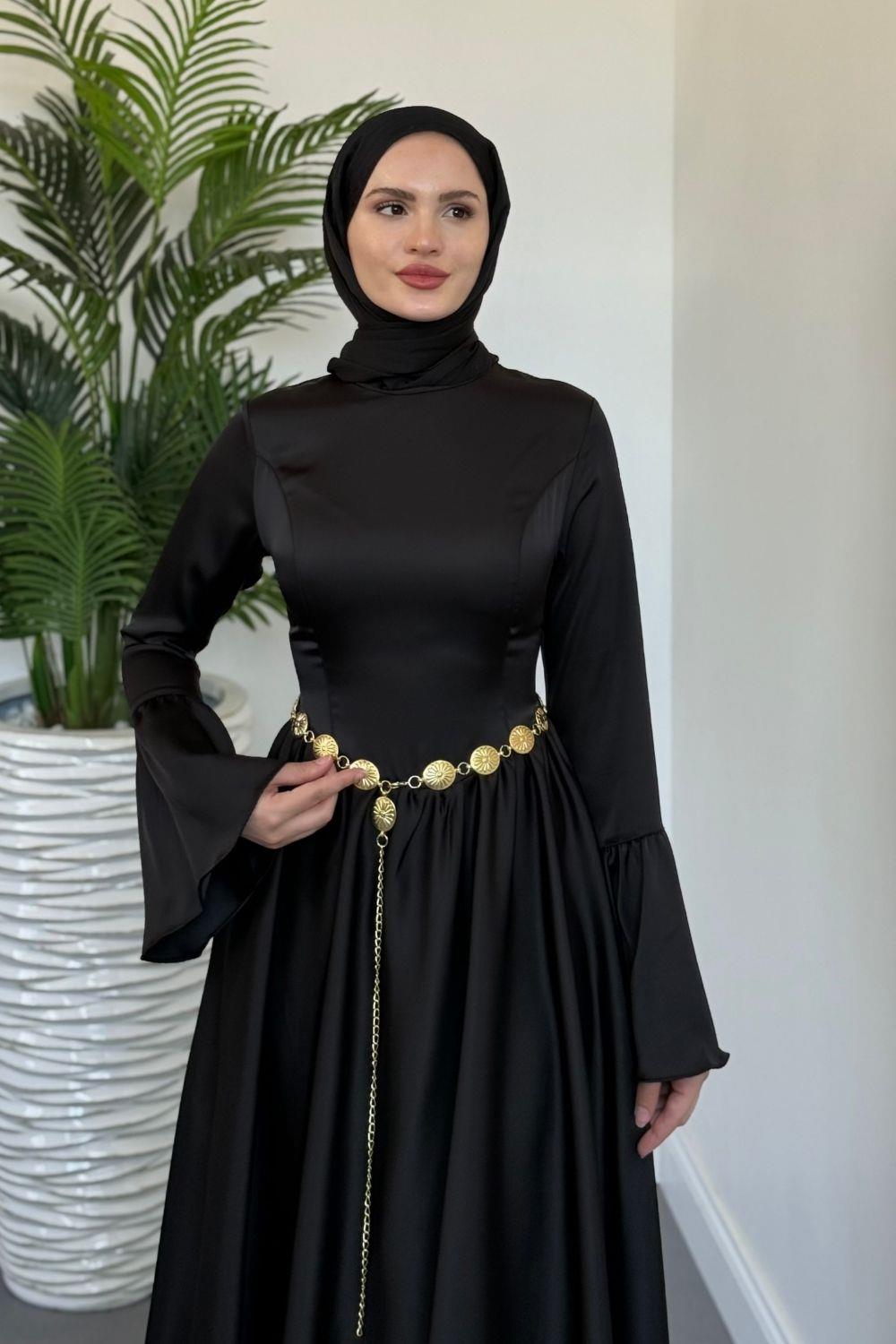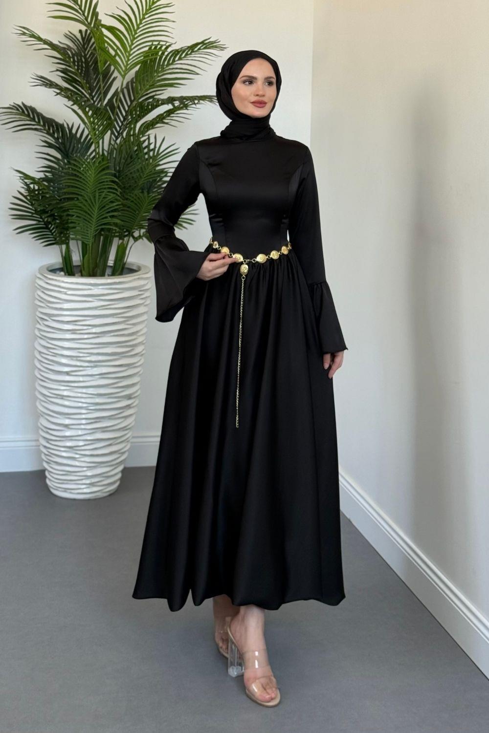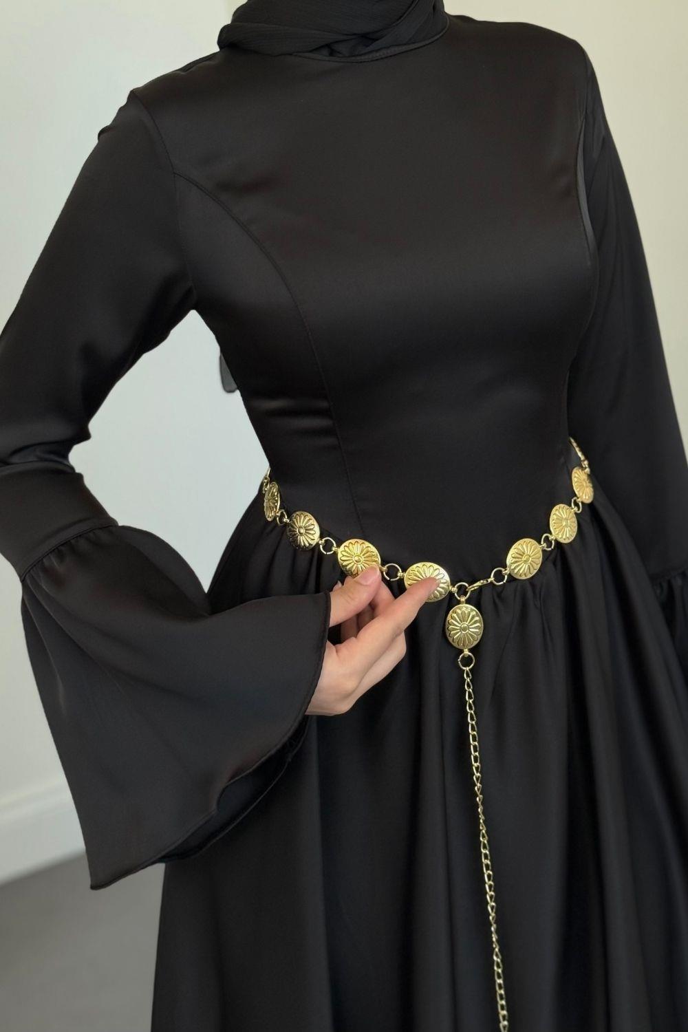 Orville Gold Kemerli Balon Etek Elbise Siyah(KEMERSİZDİR)