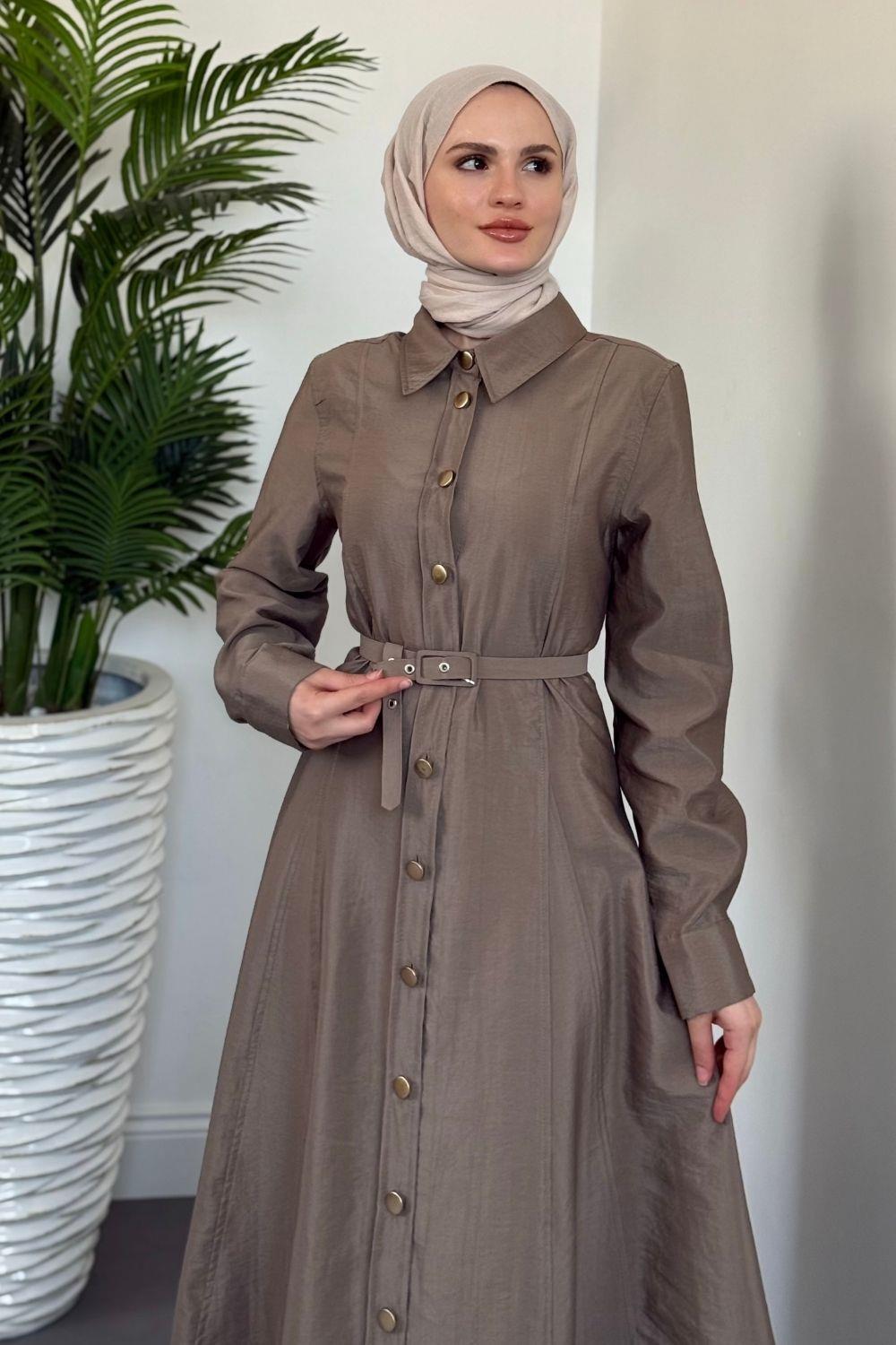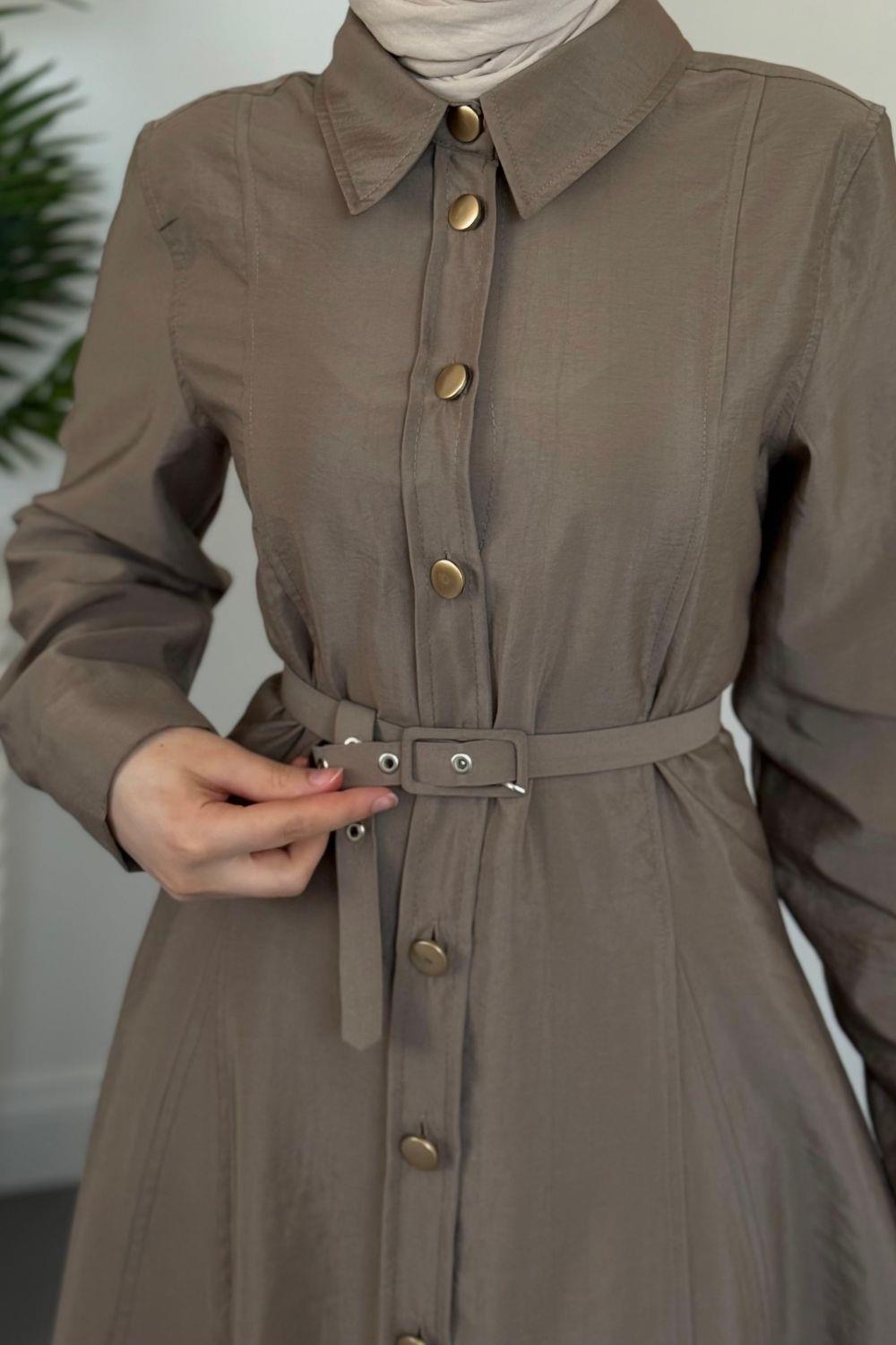 Valira Düğmeli Kemerli Elbise Vizon