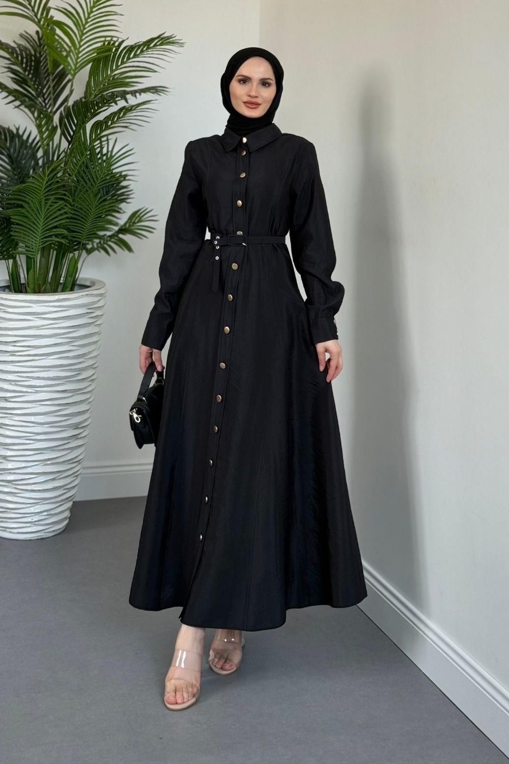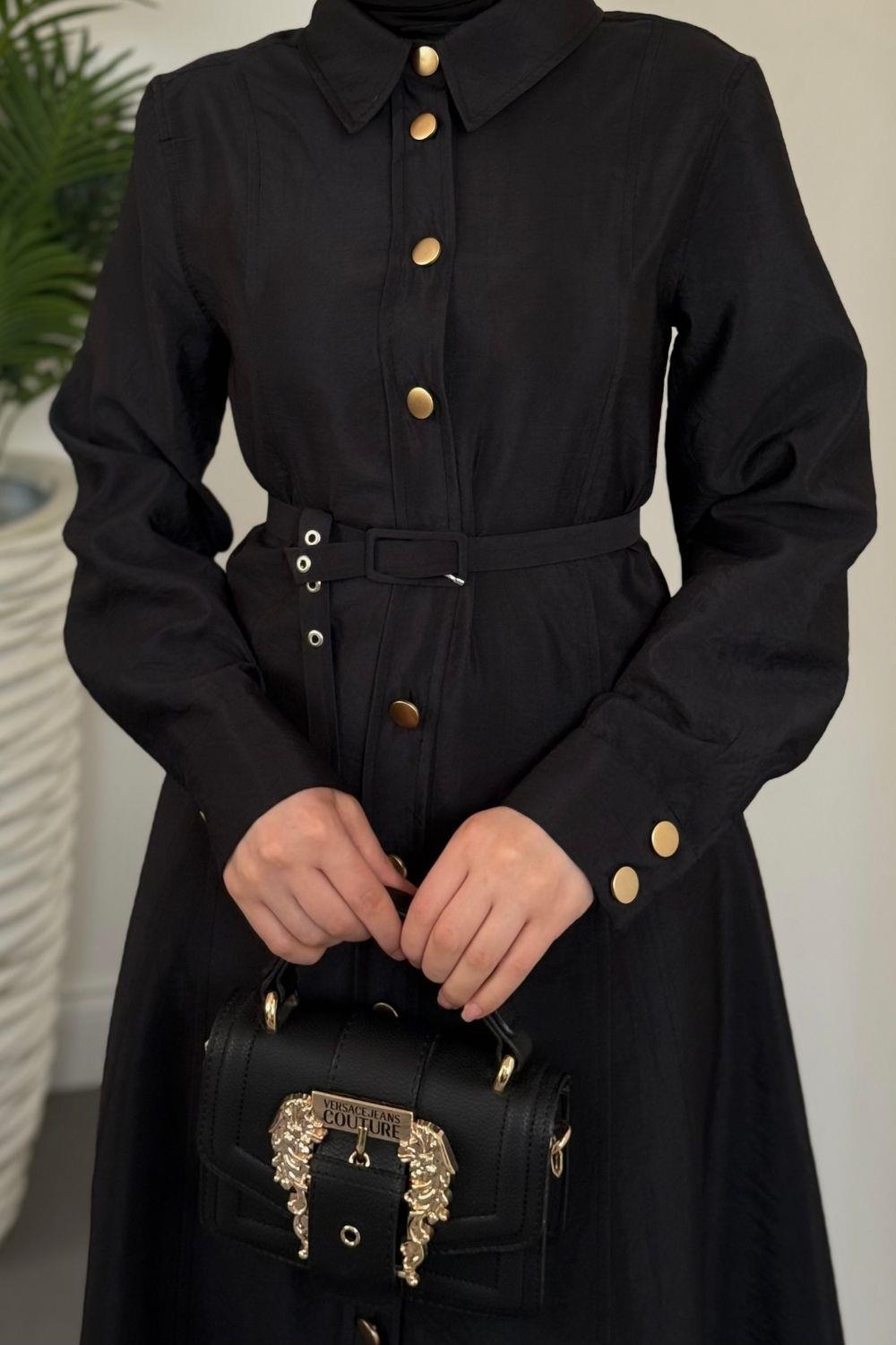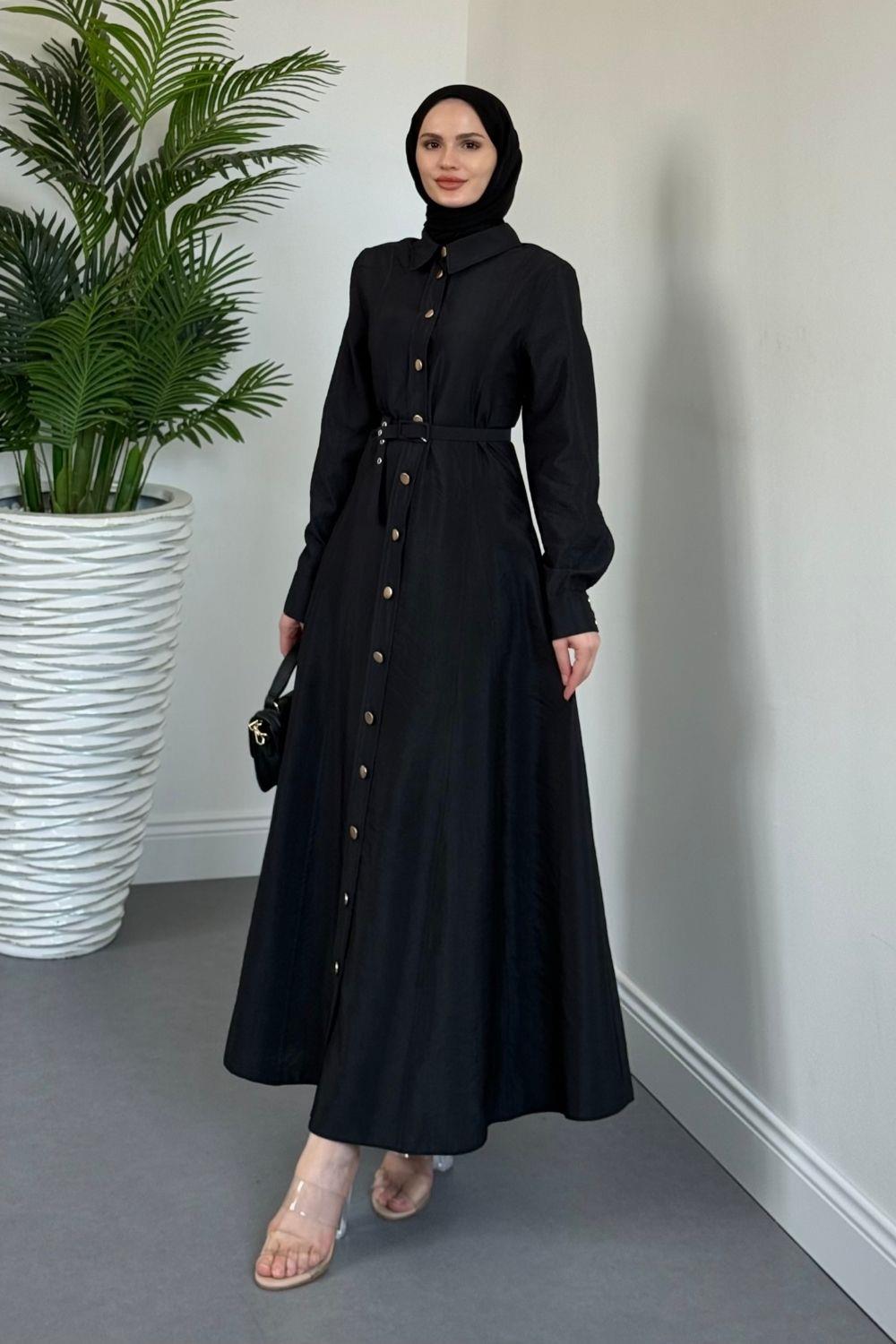 Valira Düğmeli Kemerli Elbise Siyah