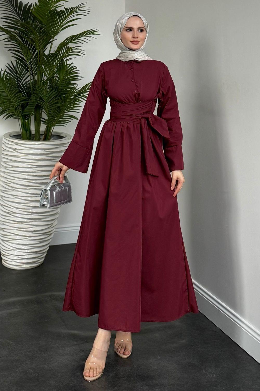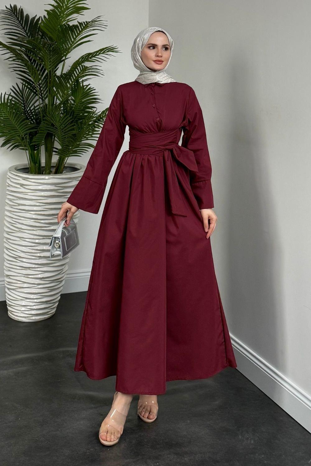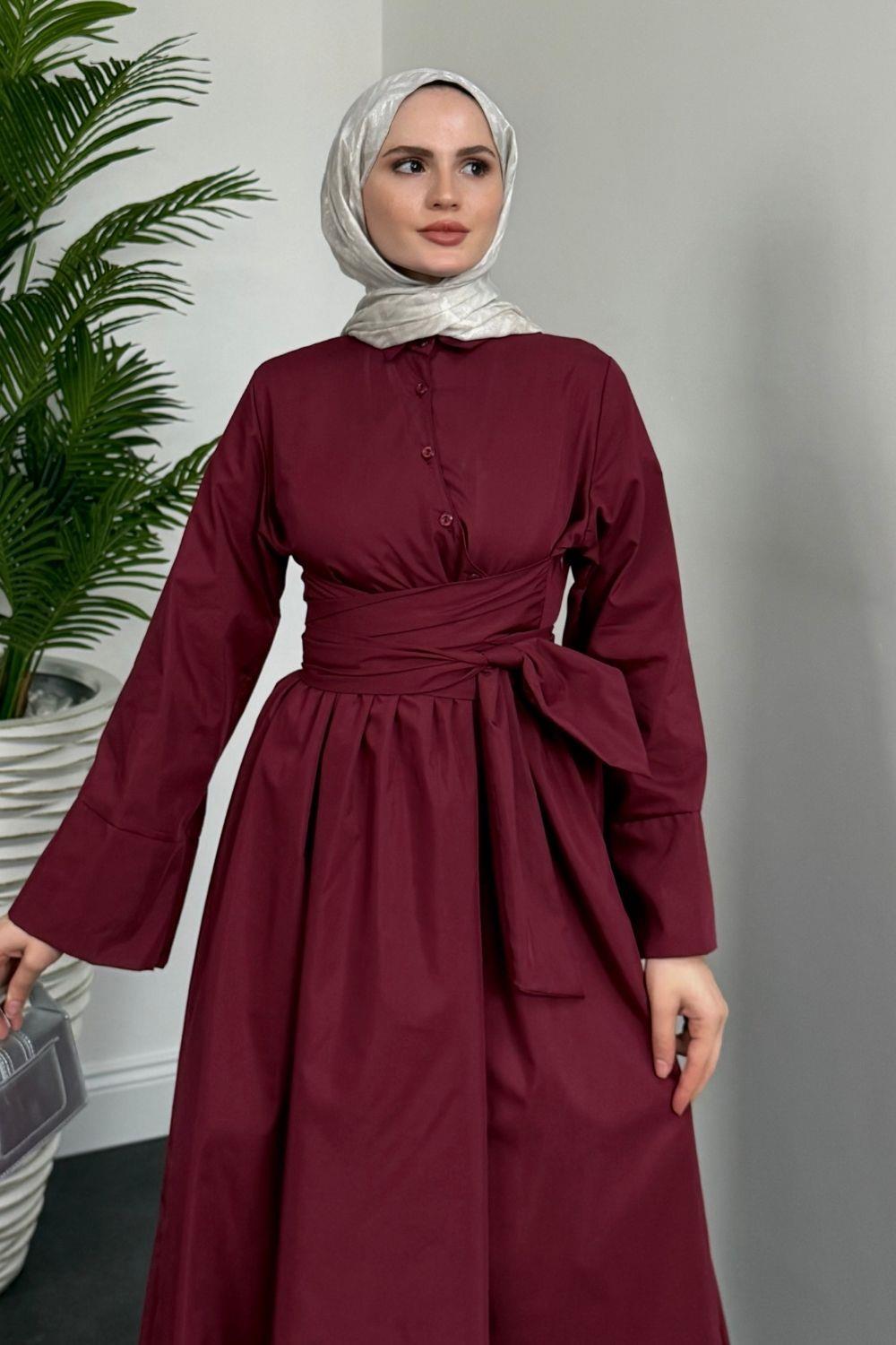 İzella Gömlek Elbise Bordo