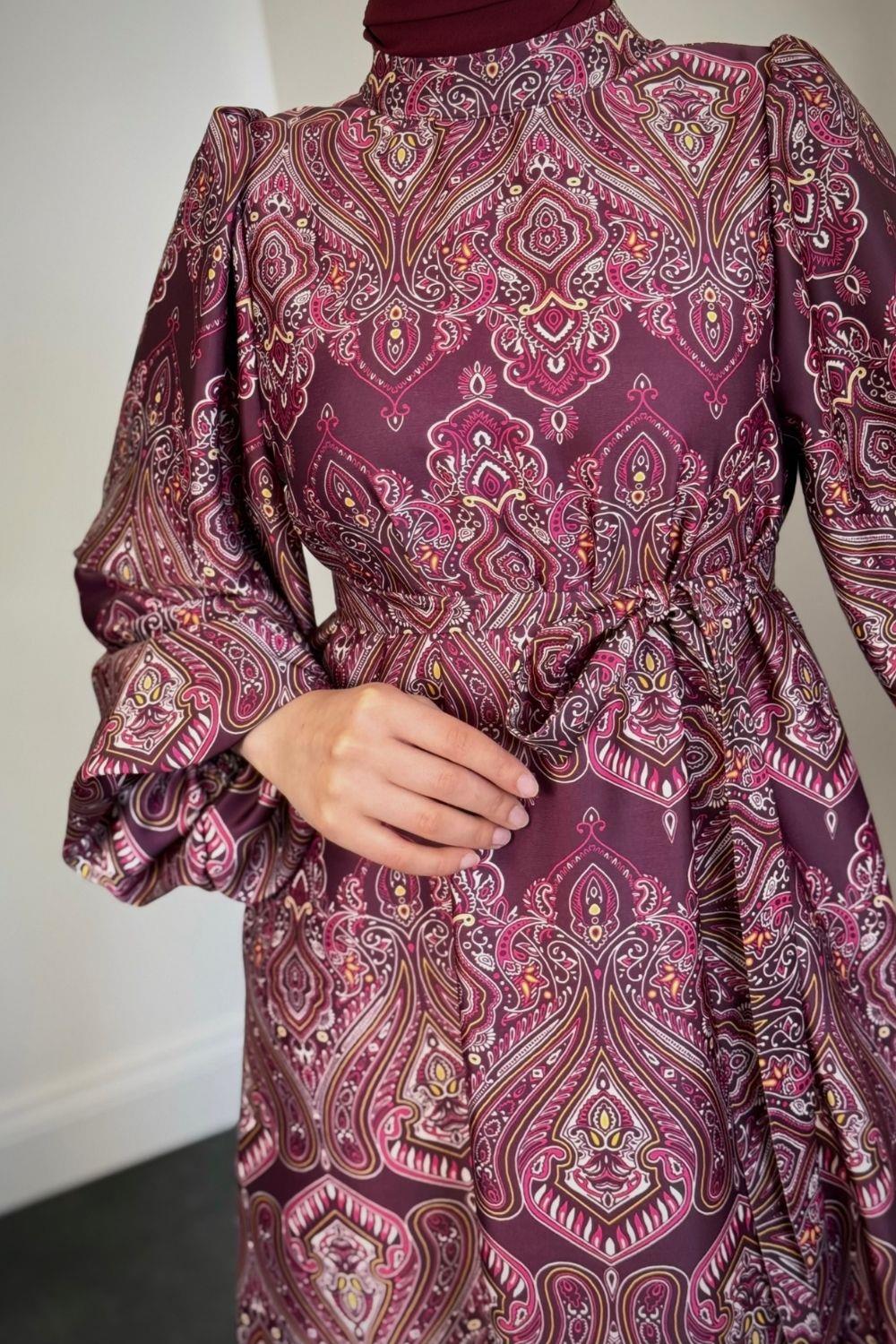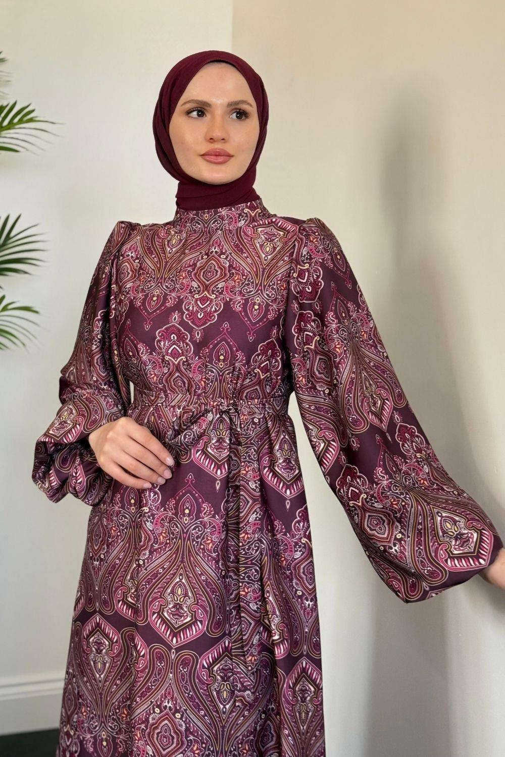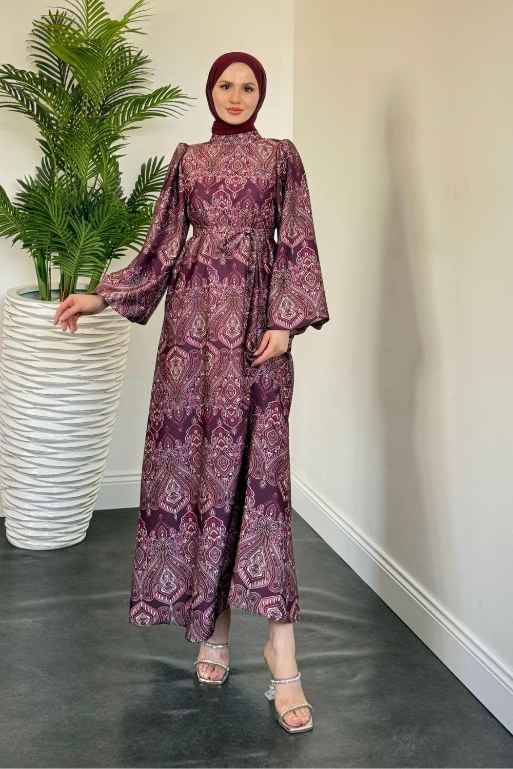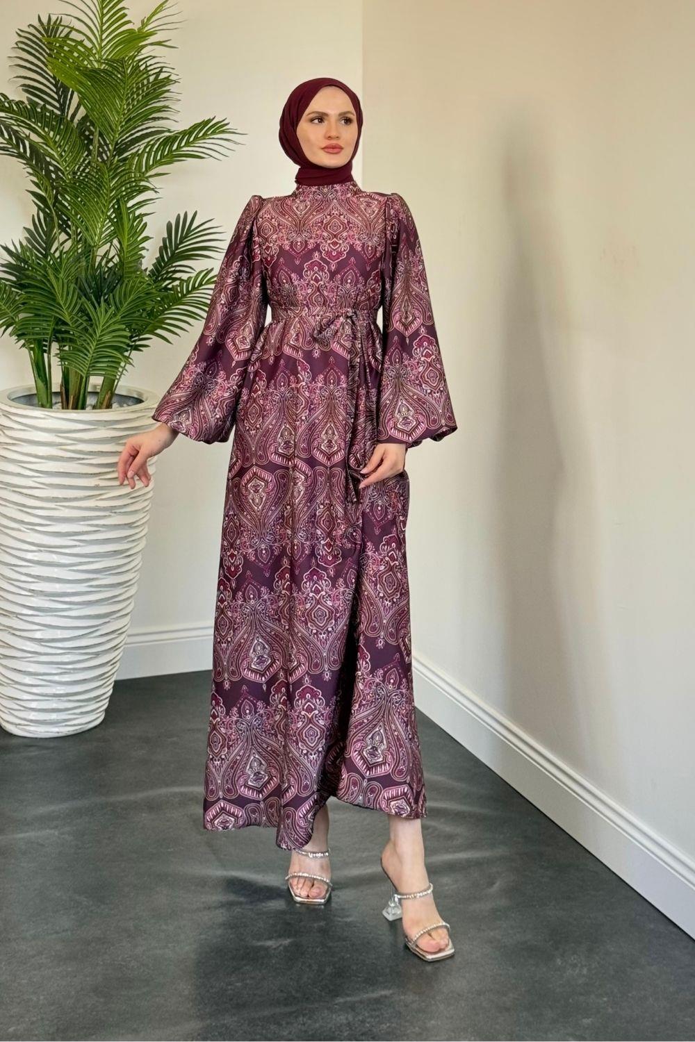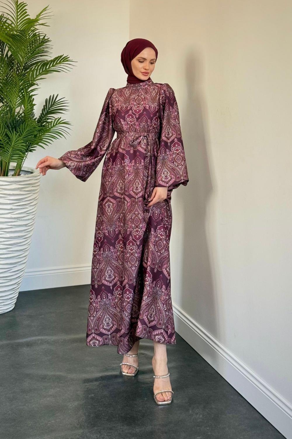 Lilsa Şal Desen Saten Abiye Mürdüm