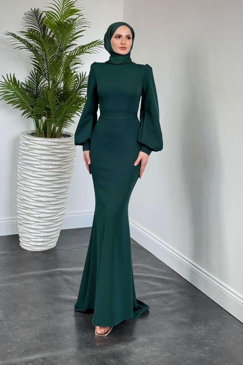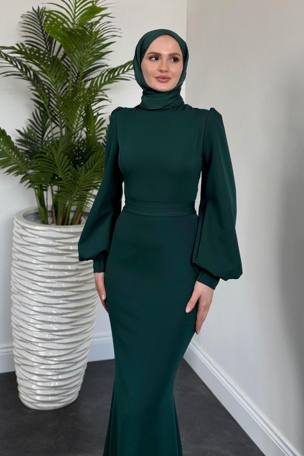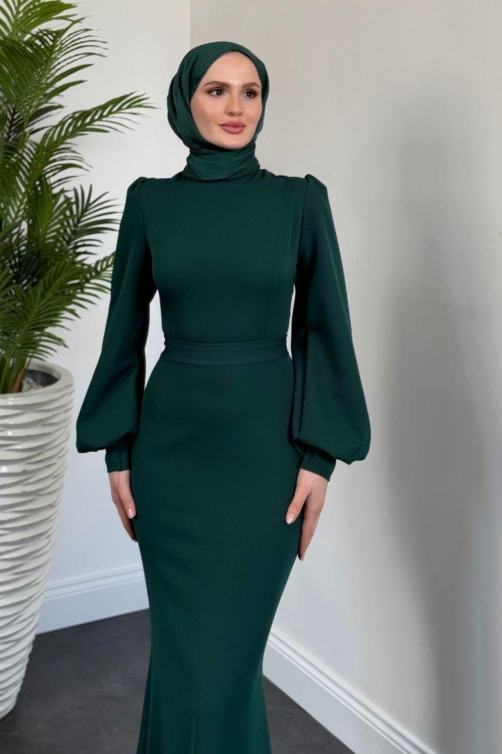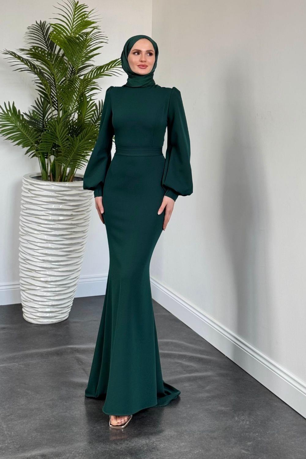 Lorenza Balon Kol Kuyruklu Abiye Zümrüt
