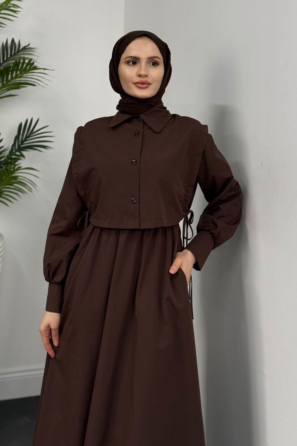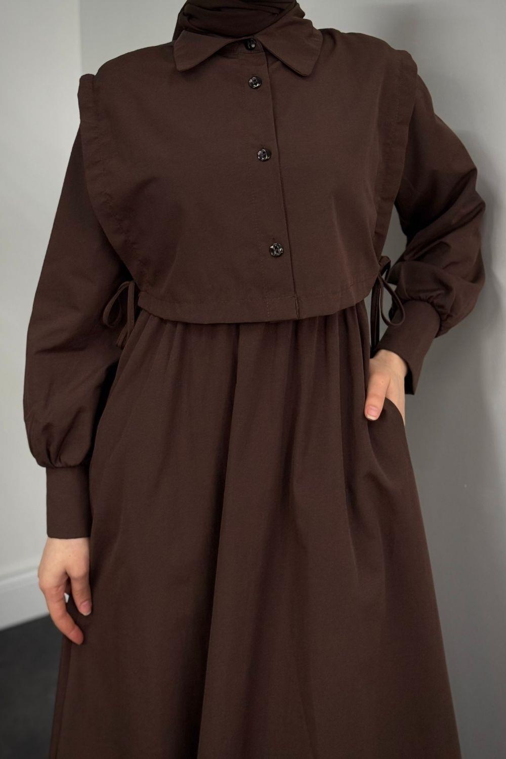 Liliana Terikotan Elbise Kahverengi