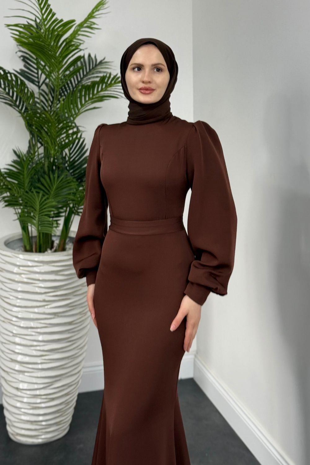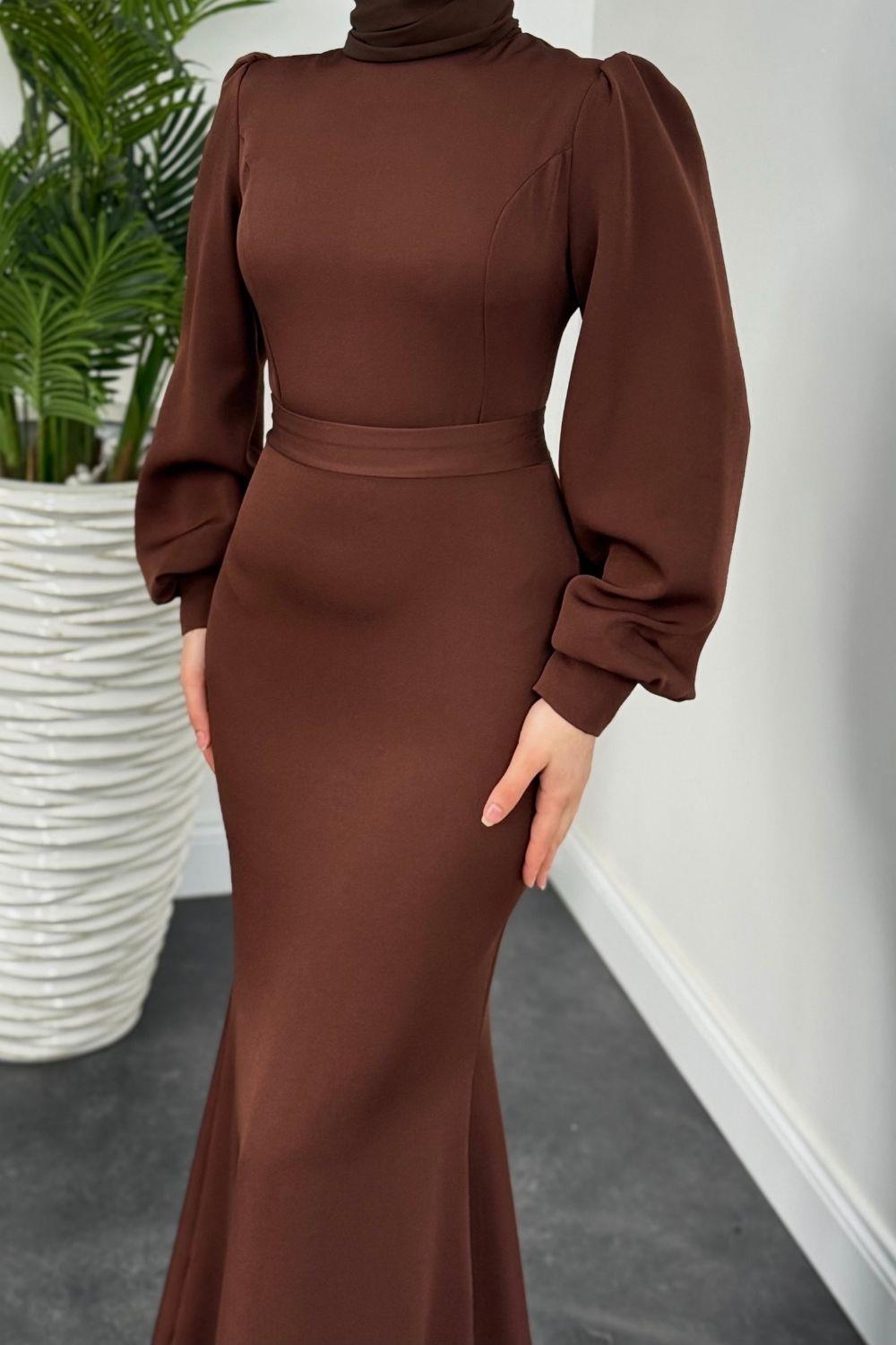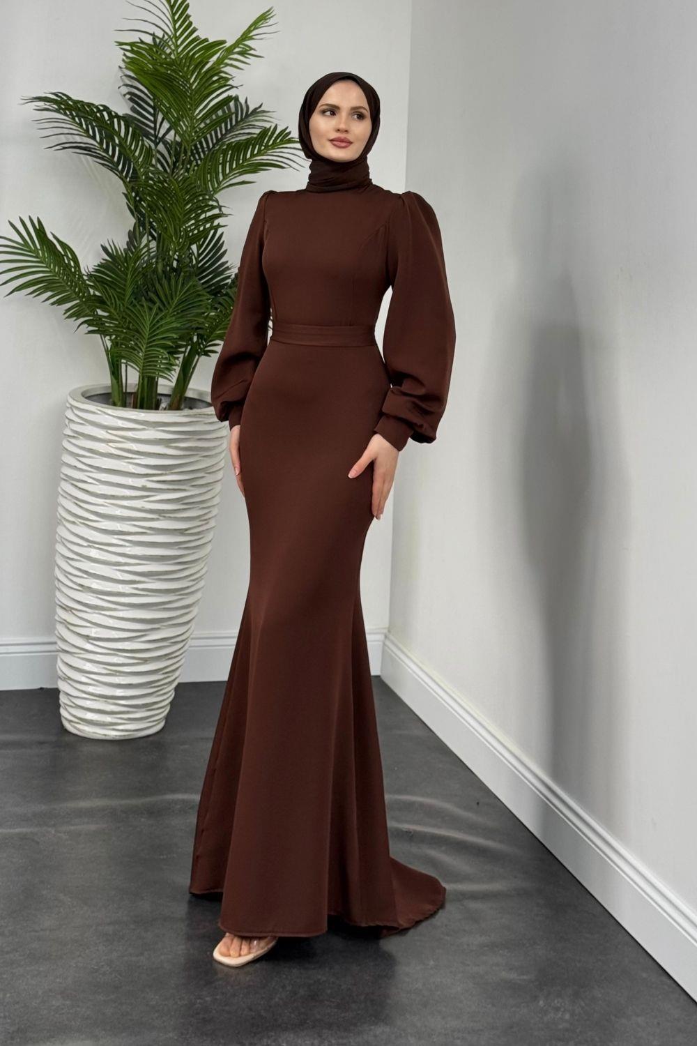 Lorenza Balon Kol Kuyruklu Abiye Kahverengi