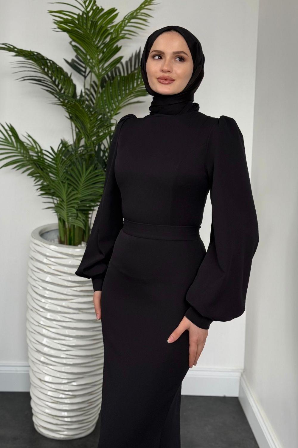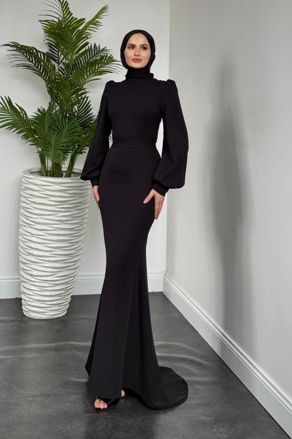 Lorenza Balon Kol Kuyruklu Abiye Siyah