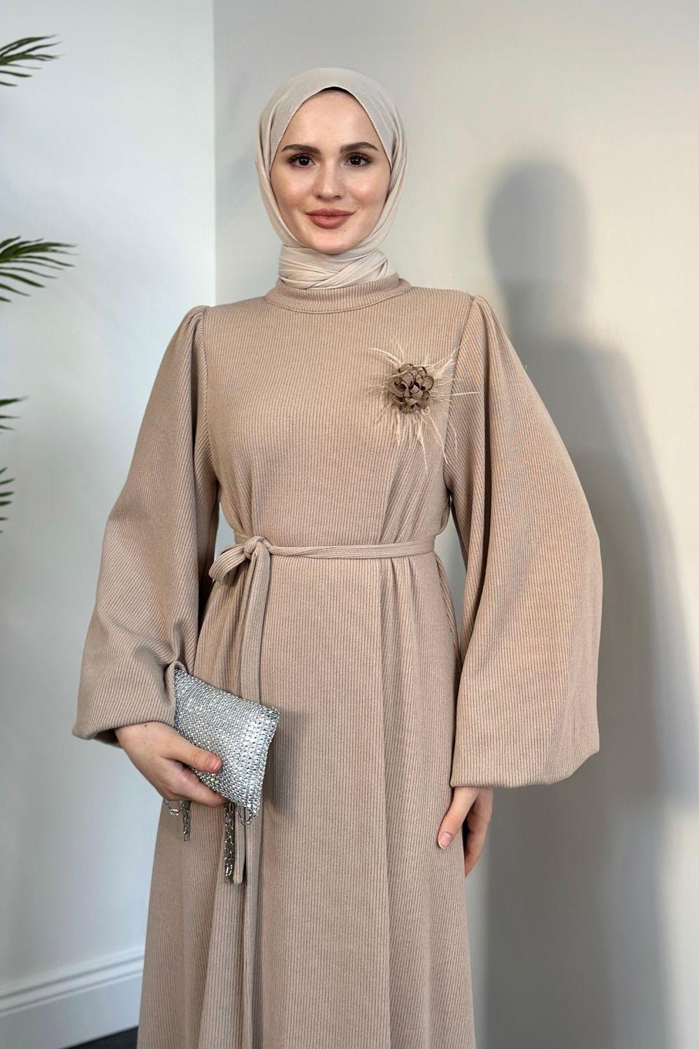 Herbert Gül Detay Elbise Sütlü Kahve(gülsüzdür)