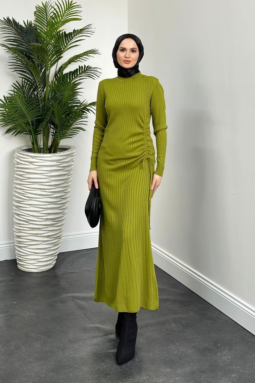Tamara Büzgülü Fi Triko Elbise Yağ Yeşili