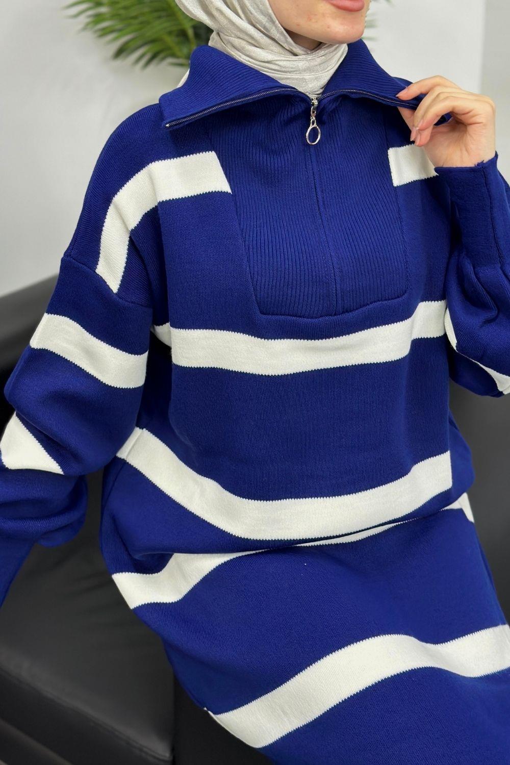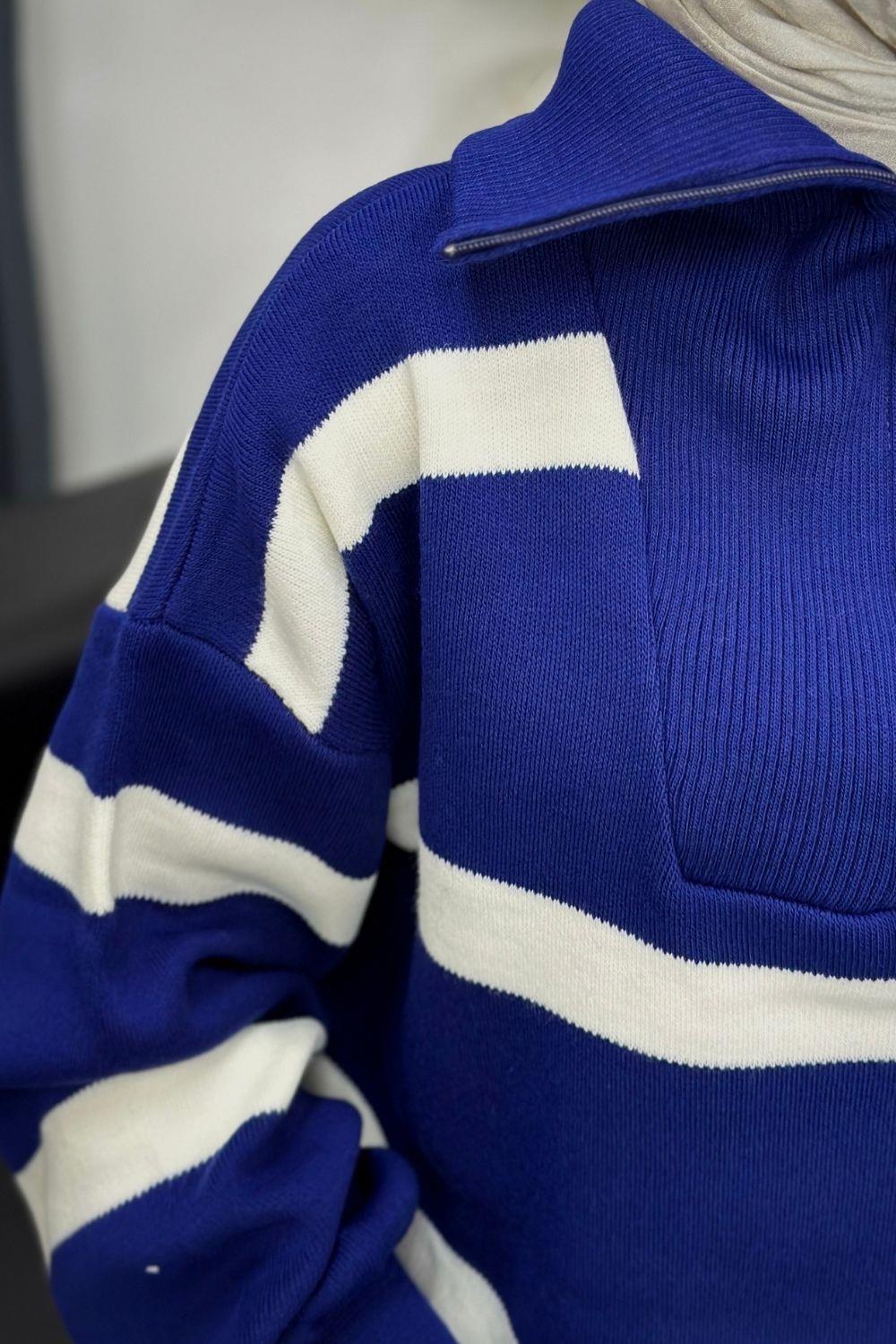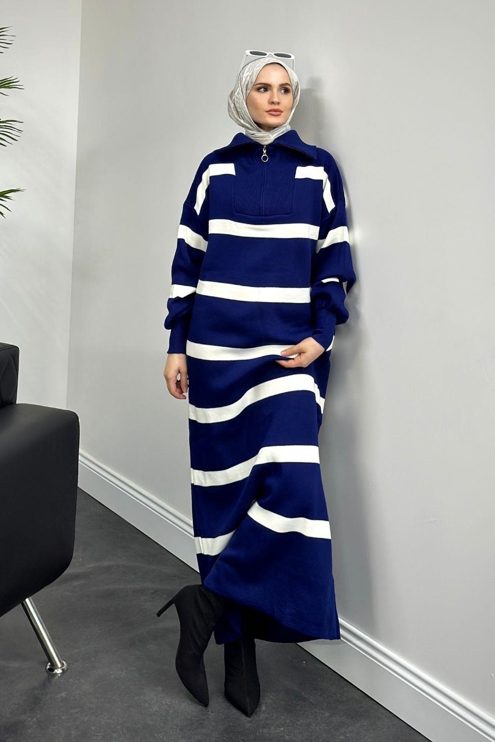 Serenity Çizgili Triko Elbise Sax