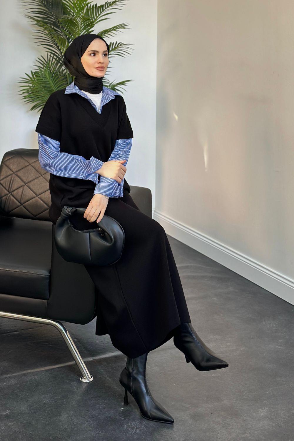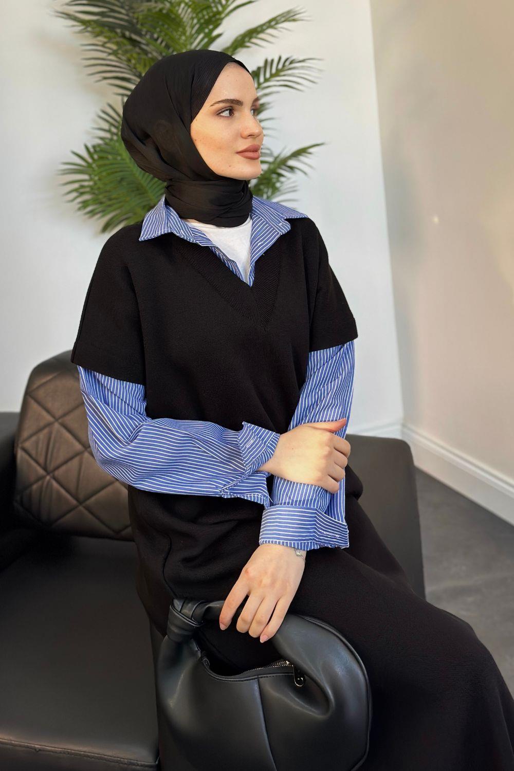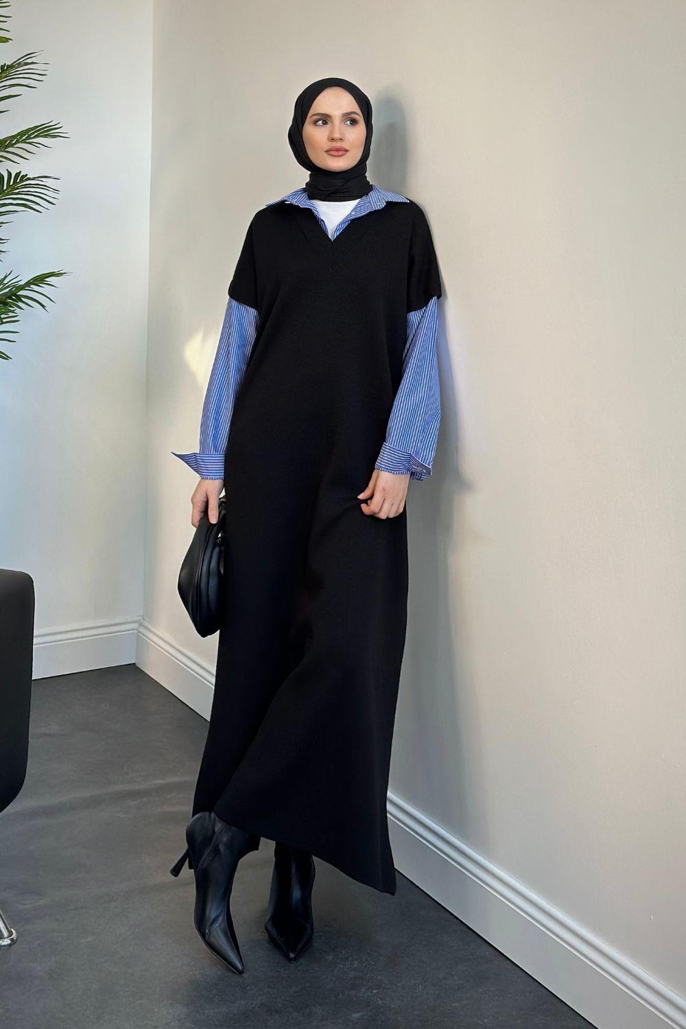 Sidney Gömlekli Triko Elbise Siyah