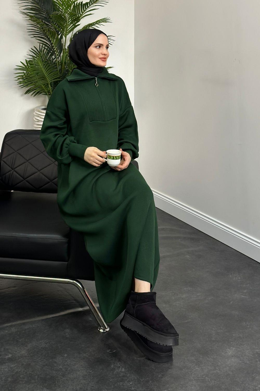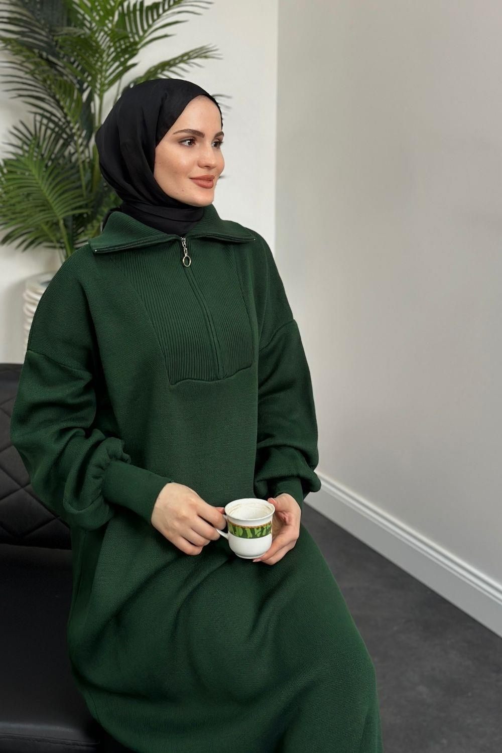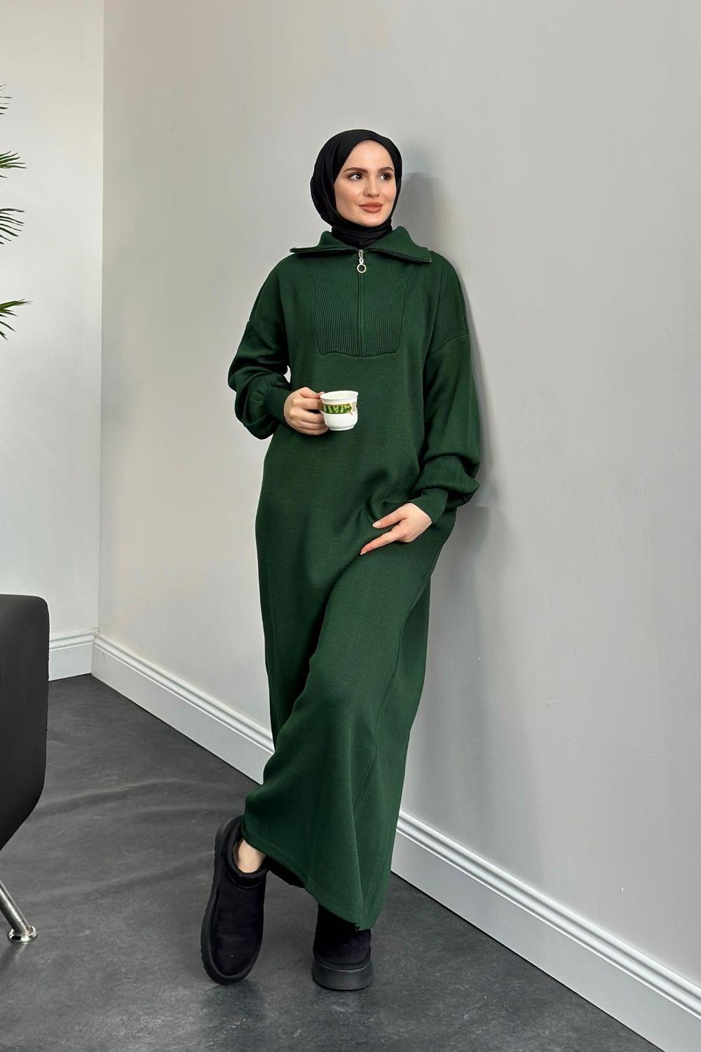 Jairo Fermuarlı Oversize Triko Elbise Zümrüt