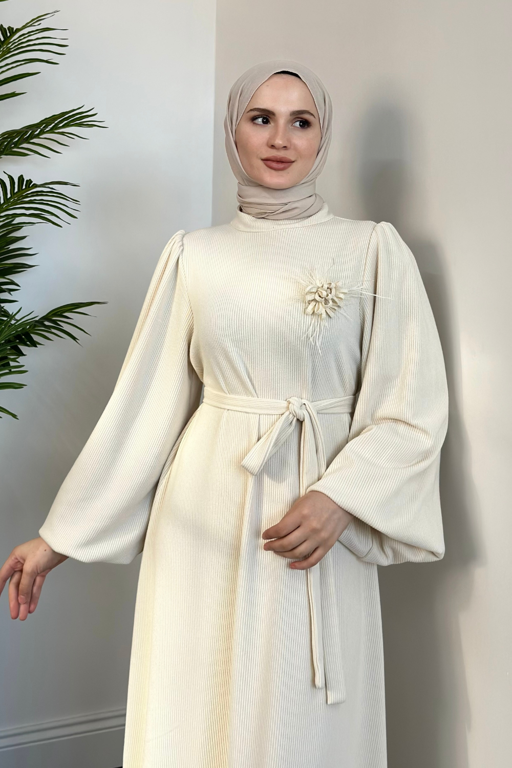 Herbert Gül Detay Elbise Krem(gülsüzdür)
