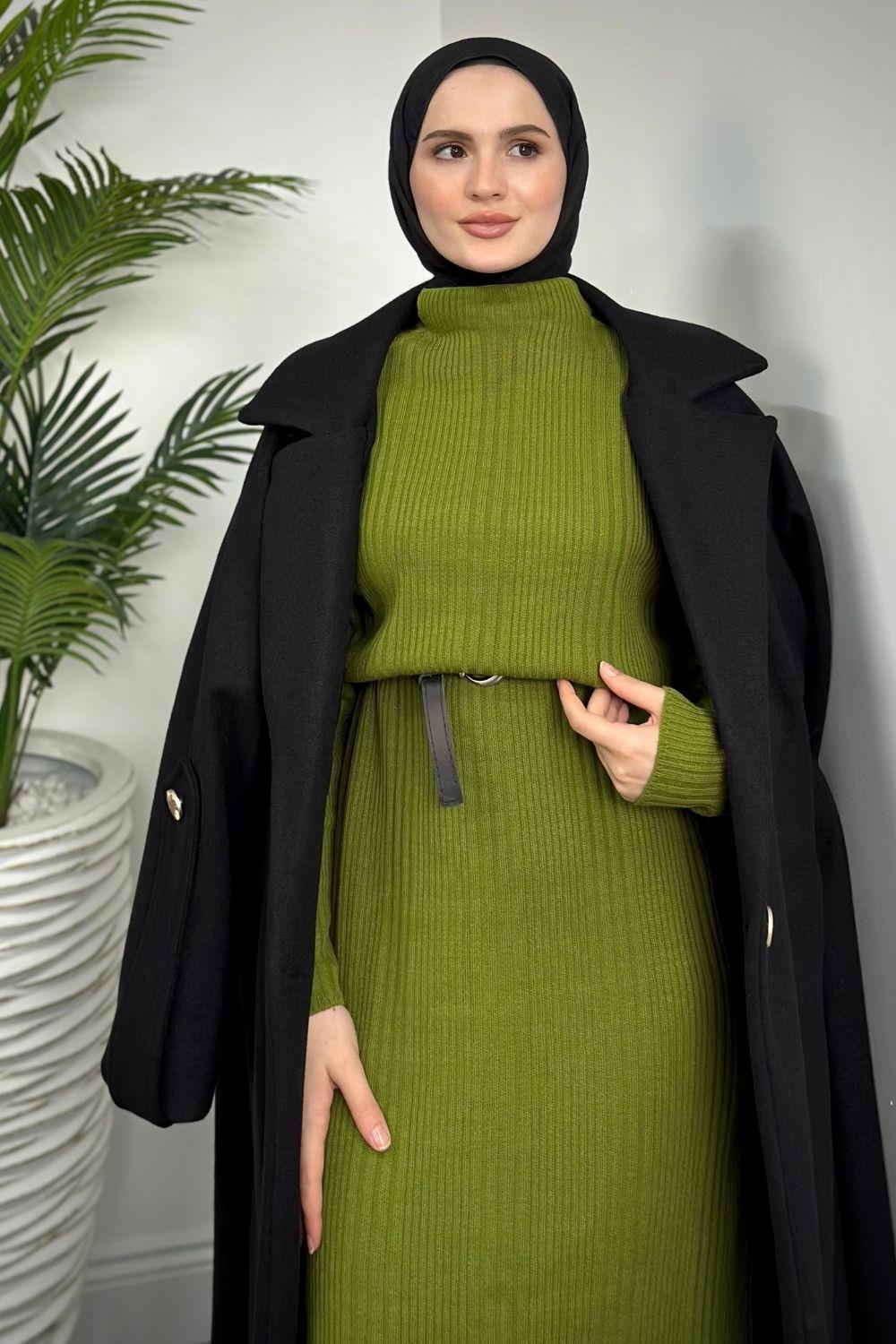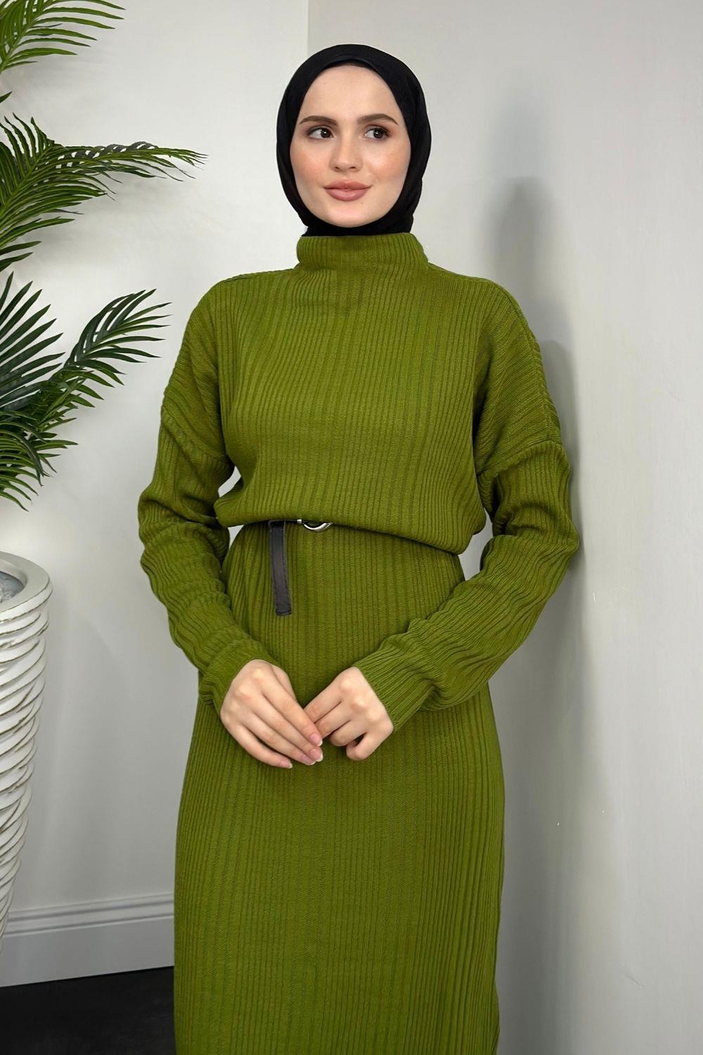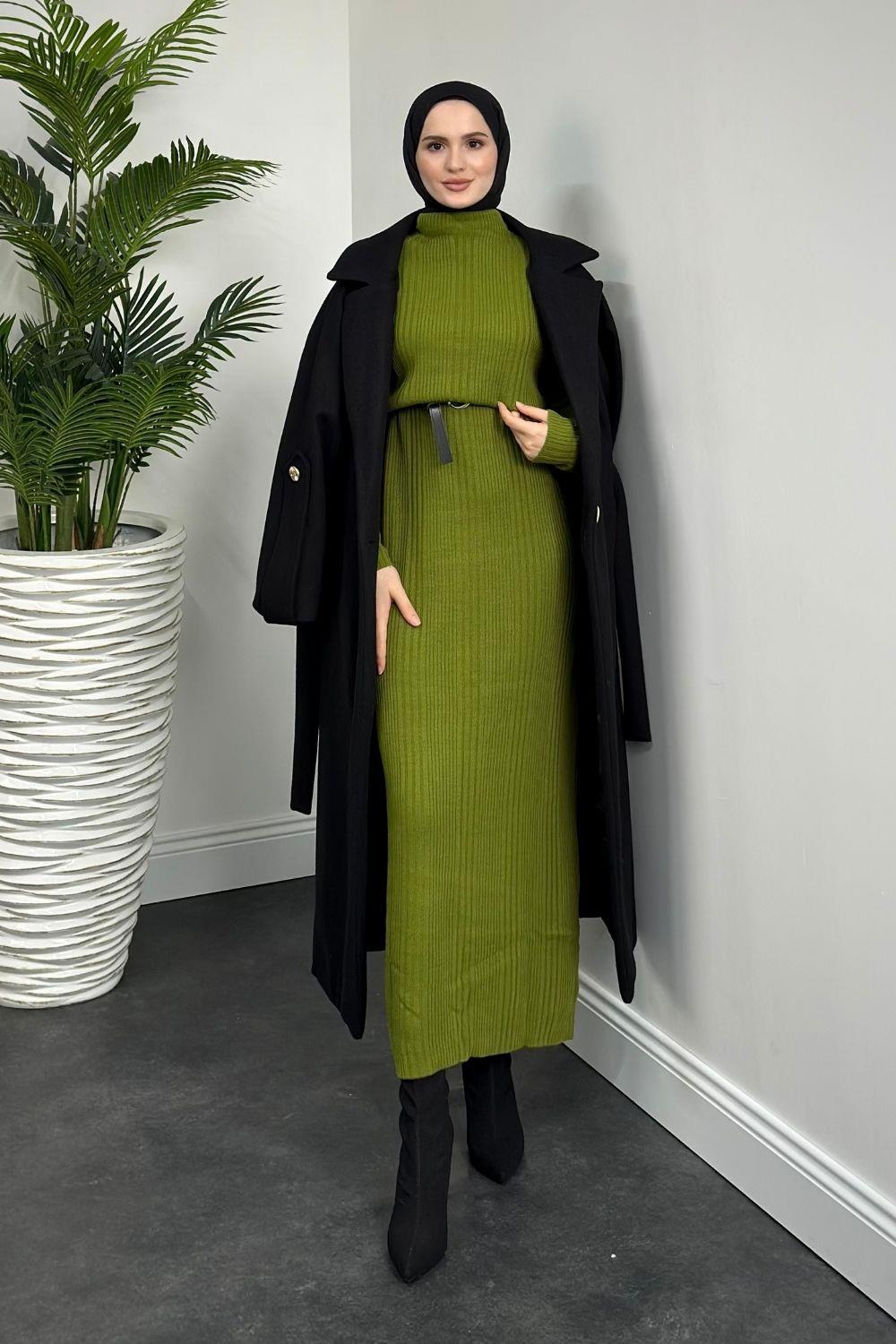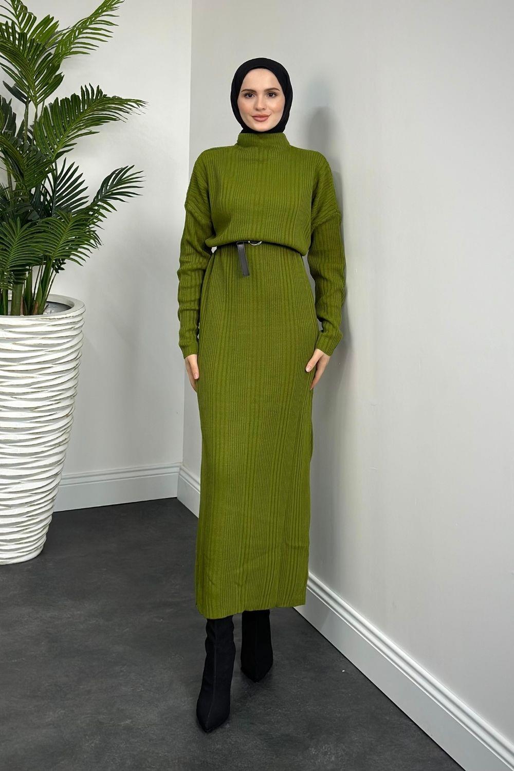 Fitilli Triko Elbise Çağla Yeşili
