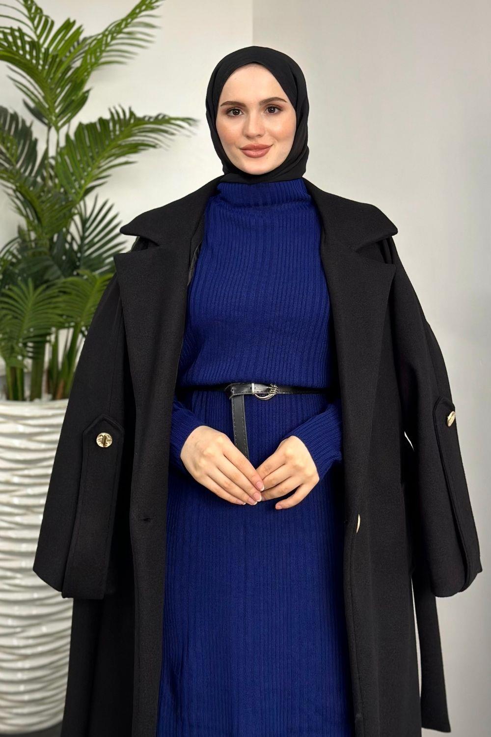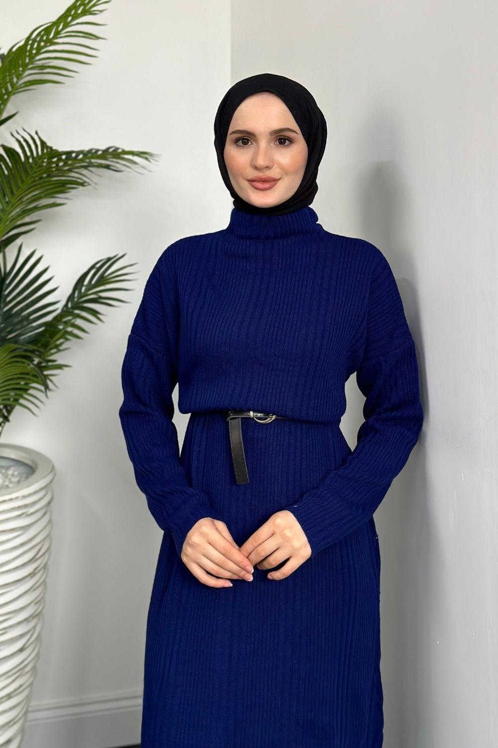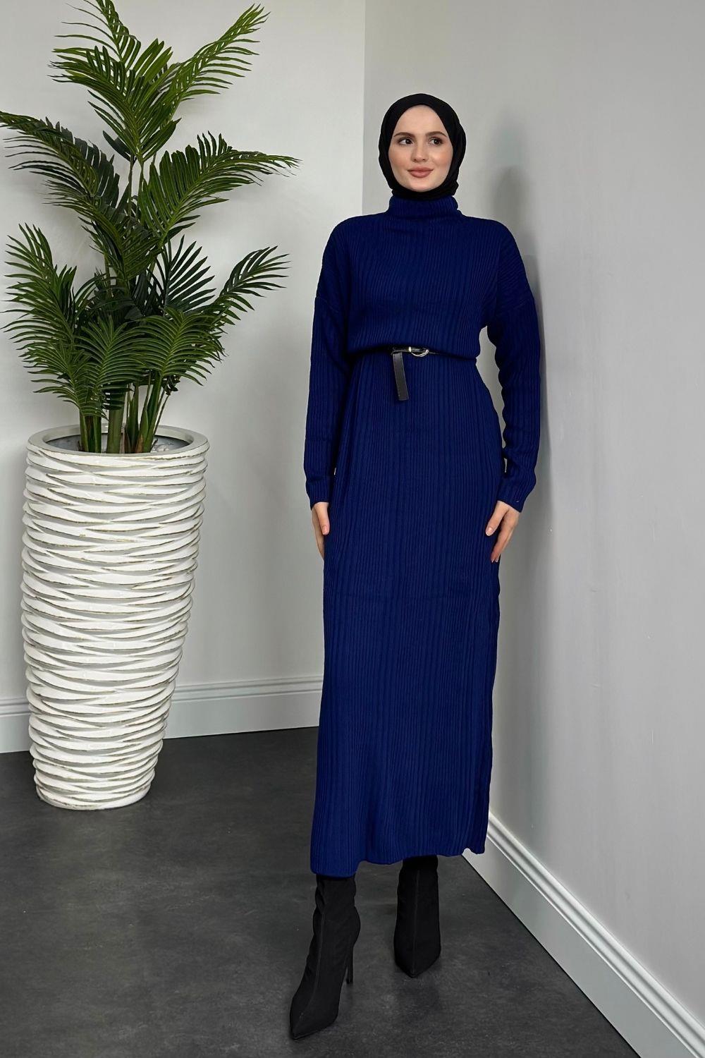 Fitilli Triko Elbise Lacivert