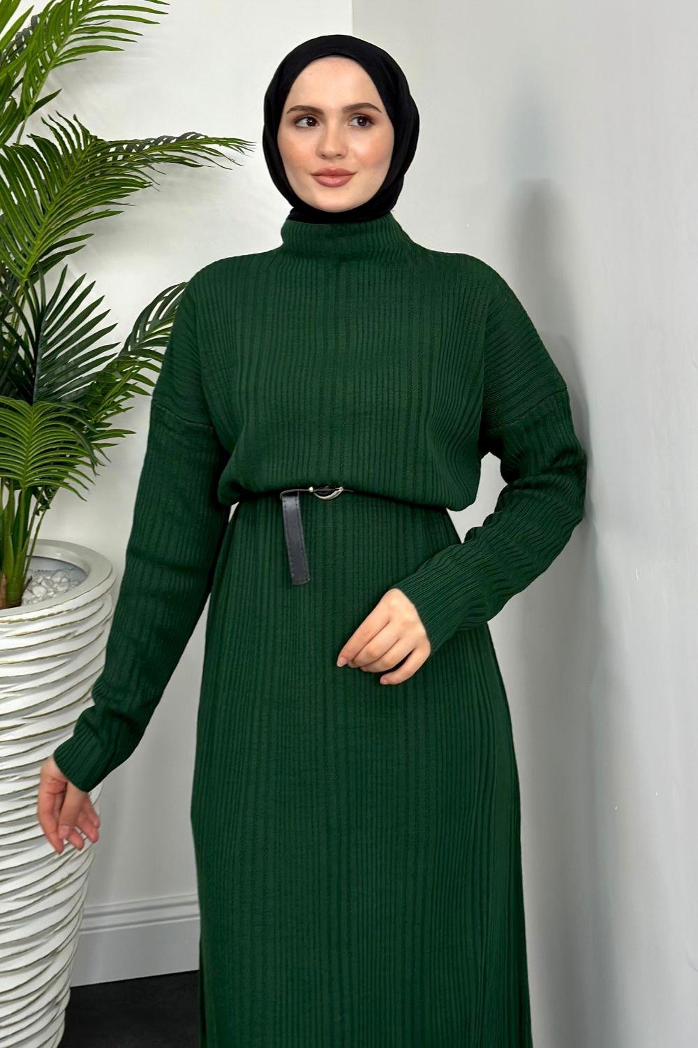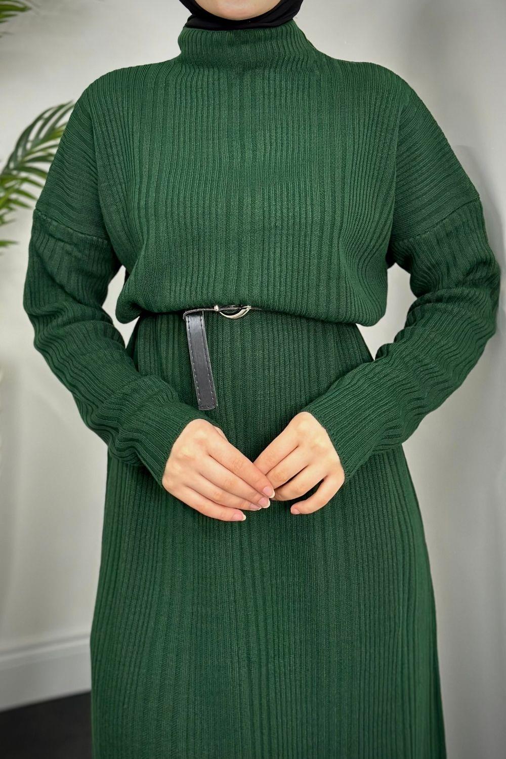 Fitilli Triko Elbise Zümrüt