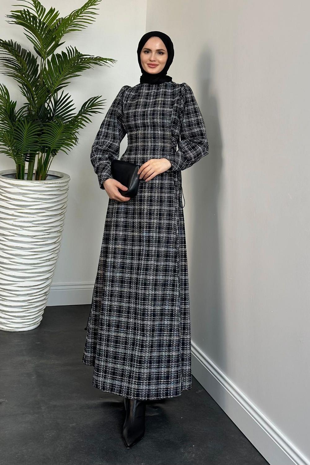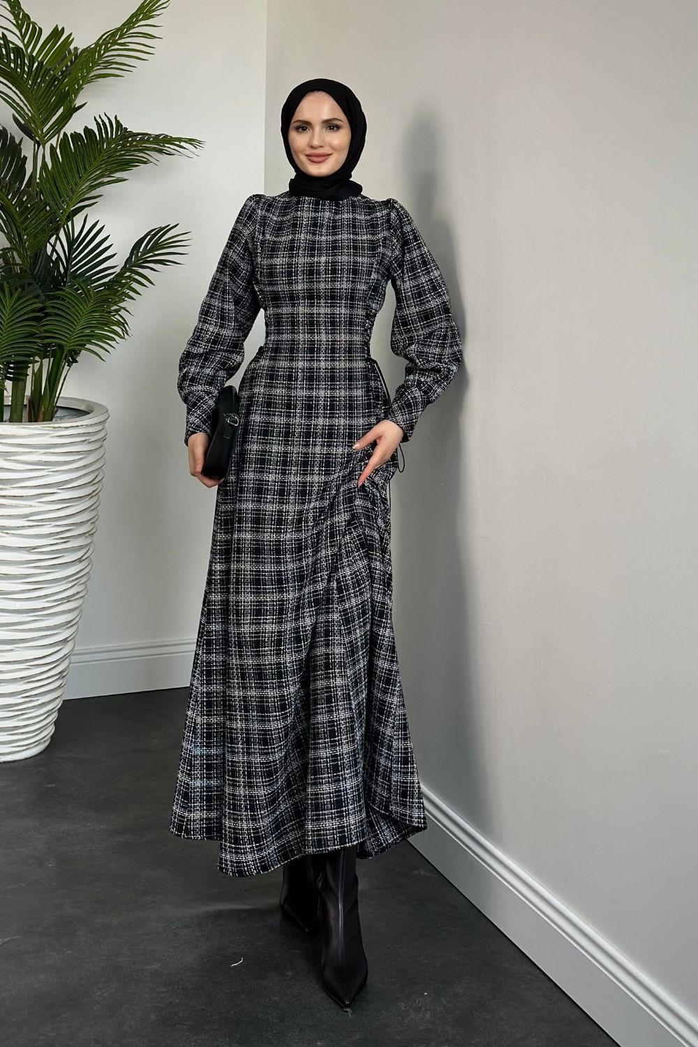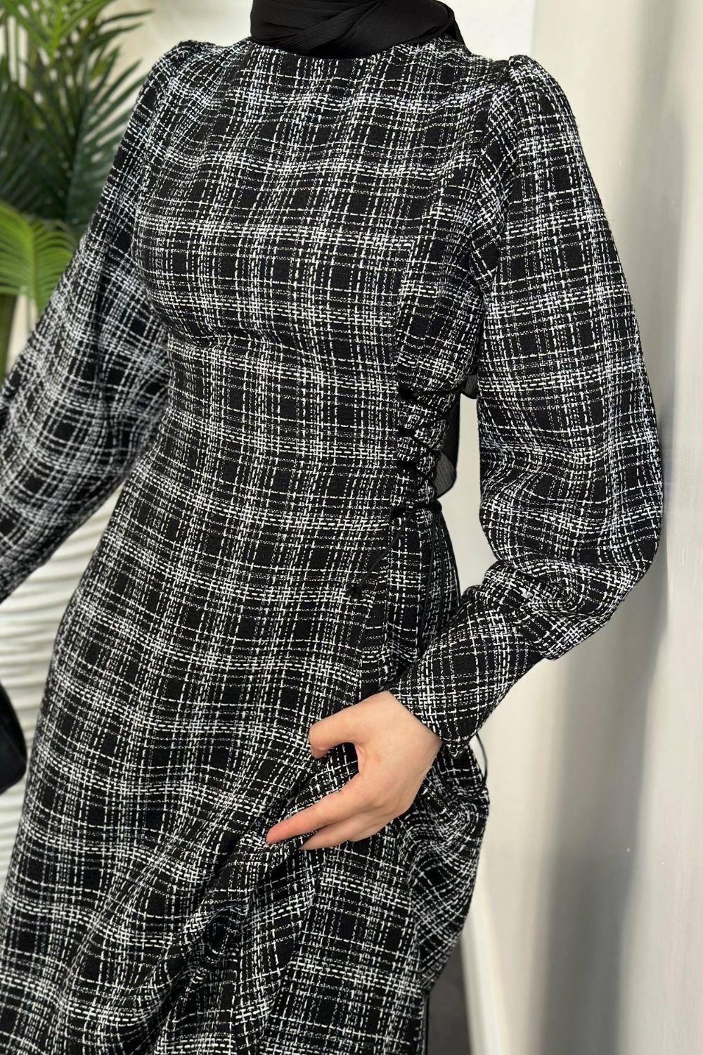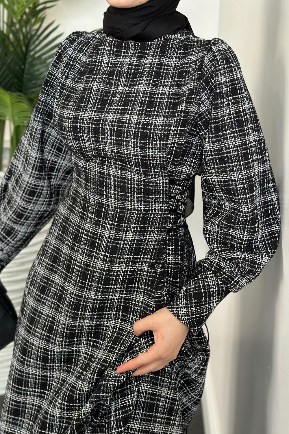 Saura Yanları Büzgülü Elbise Siyah