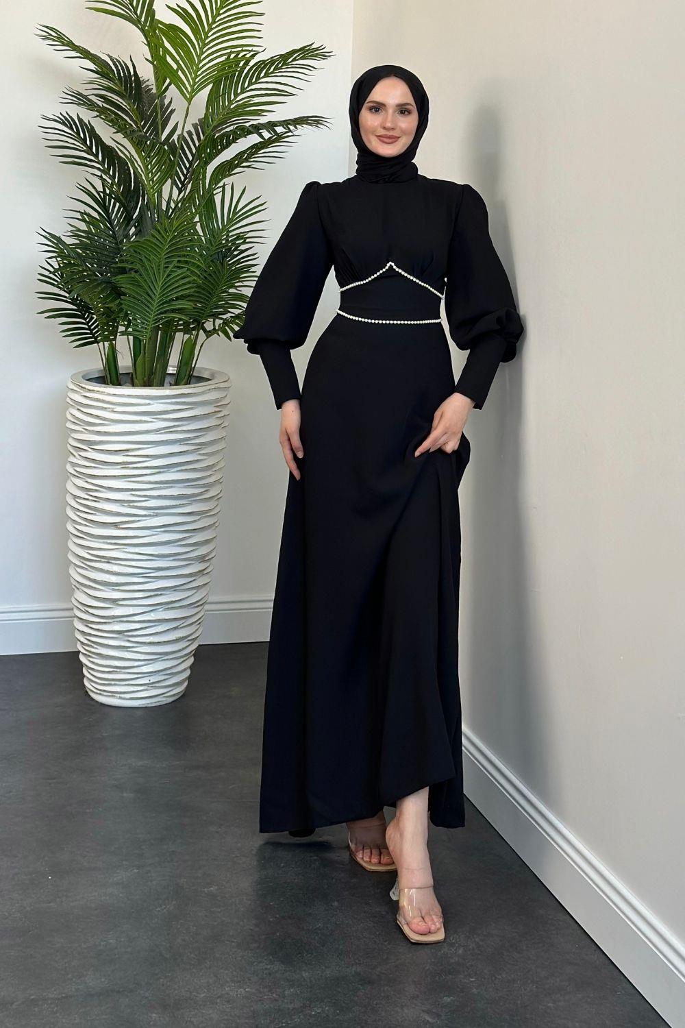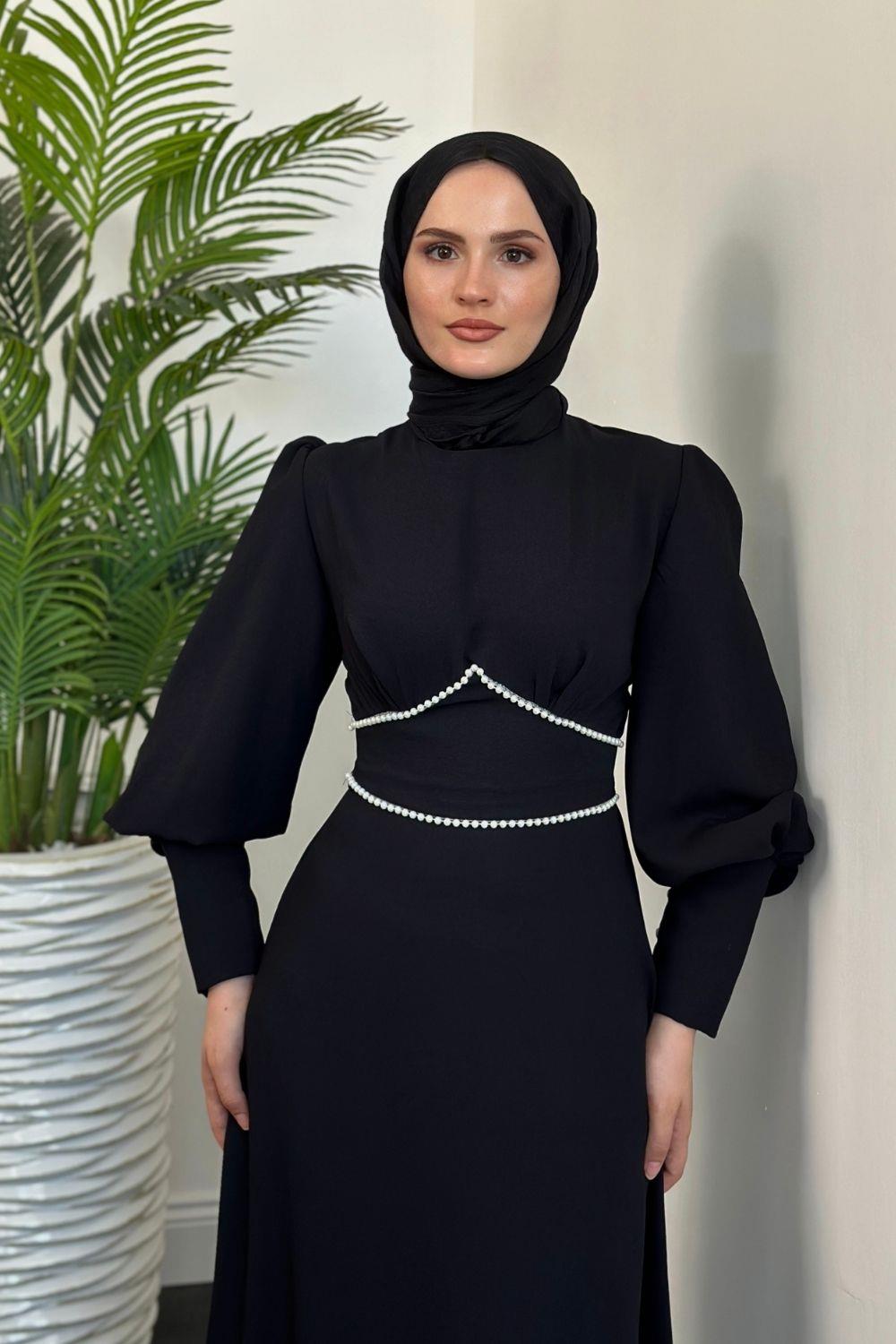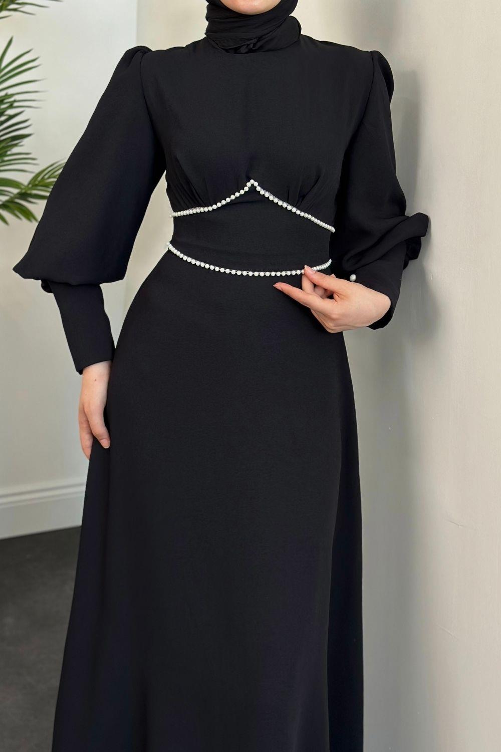 Lucas İnci Detay Krep Elbise Siyah