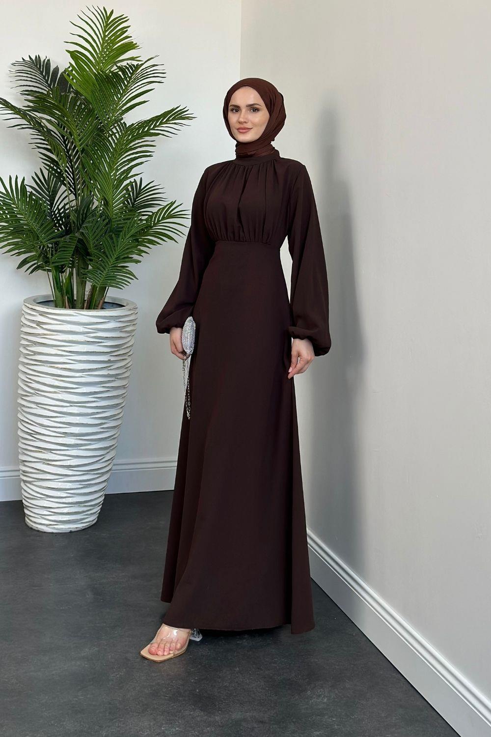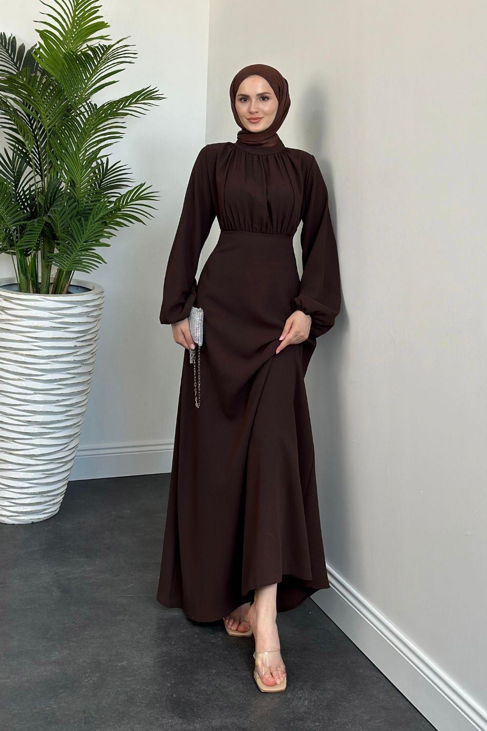 Frencesca Üstü Drape Kloş Krep Elbise Kahverengi