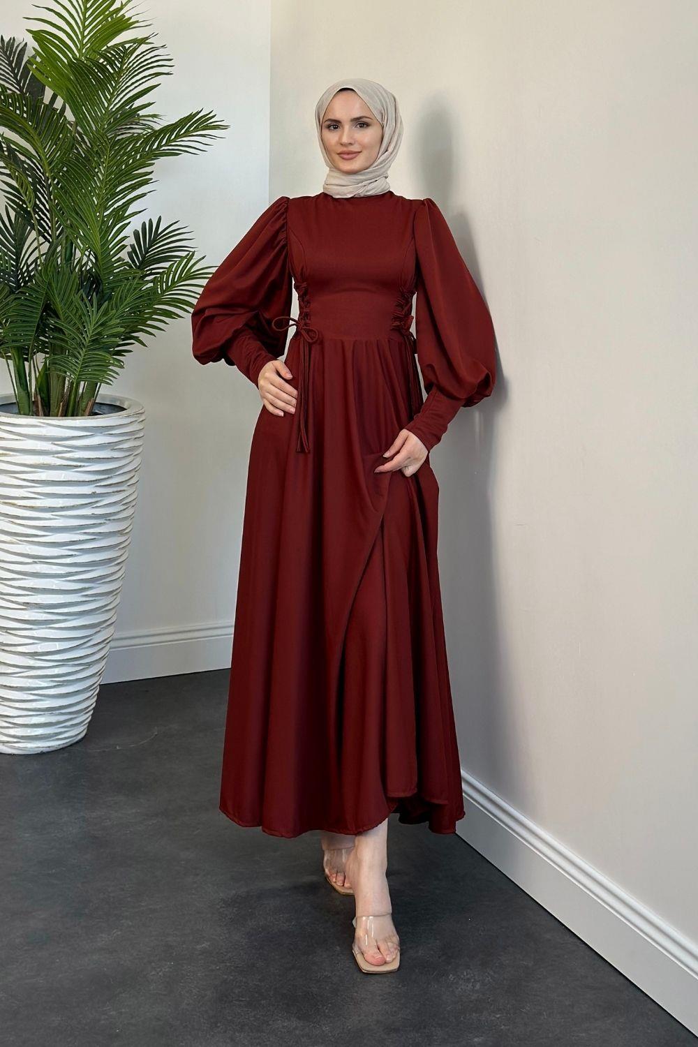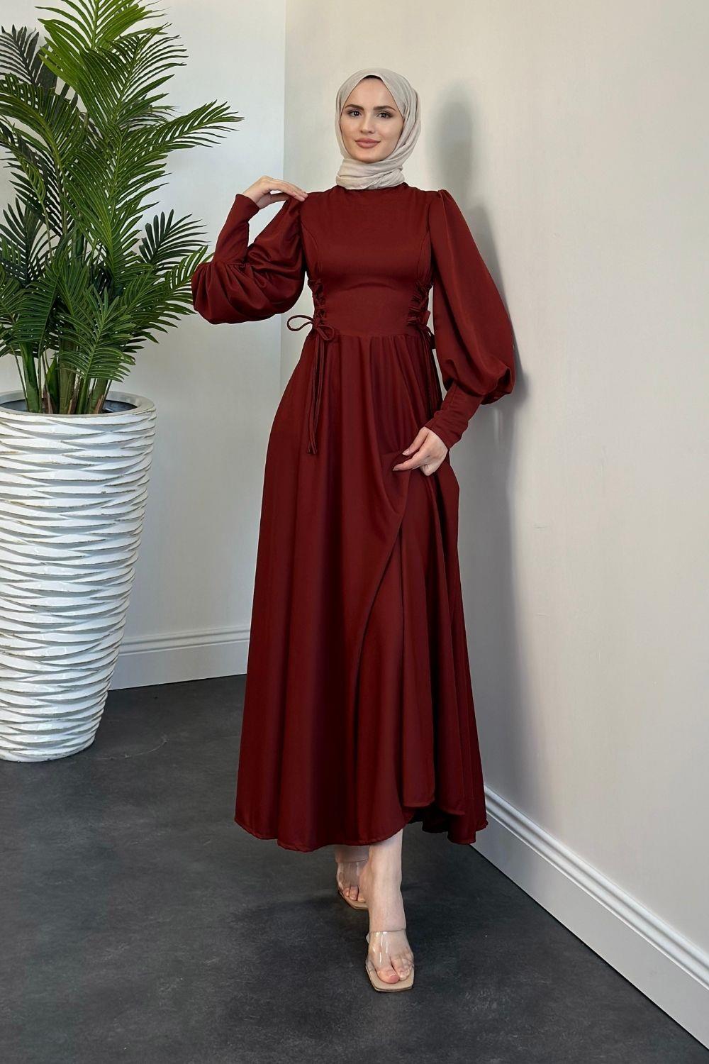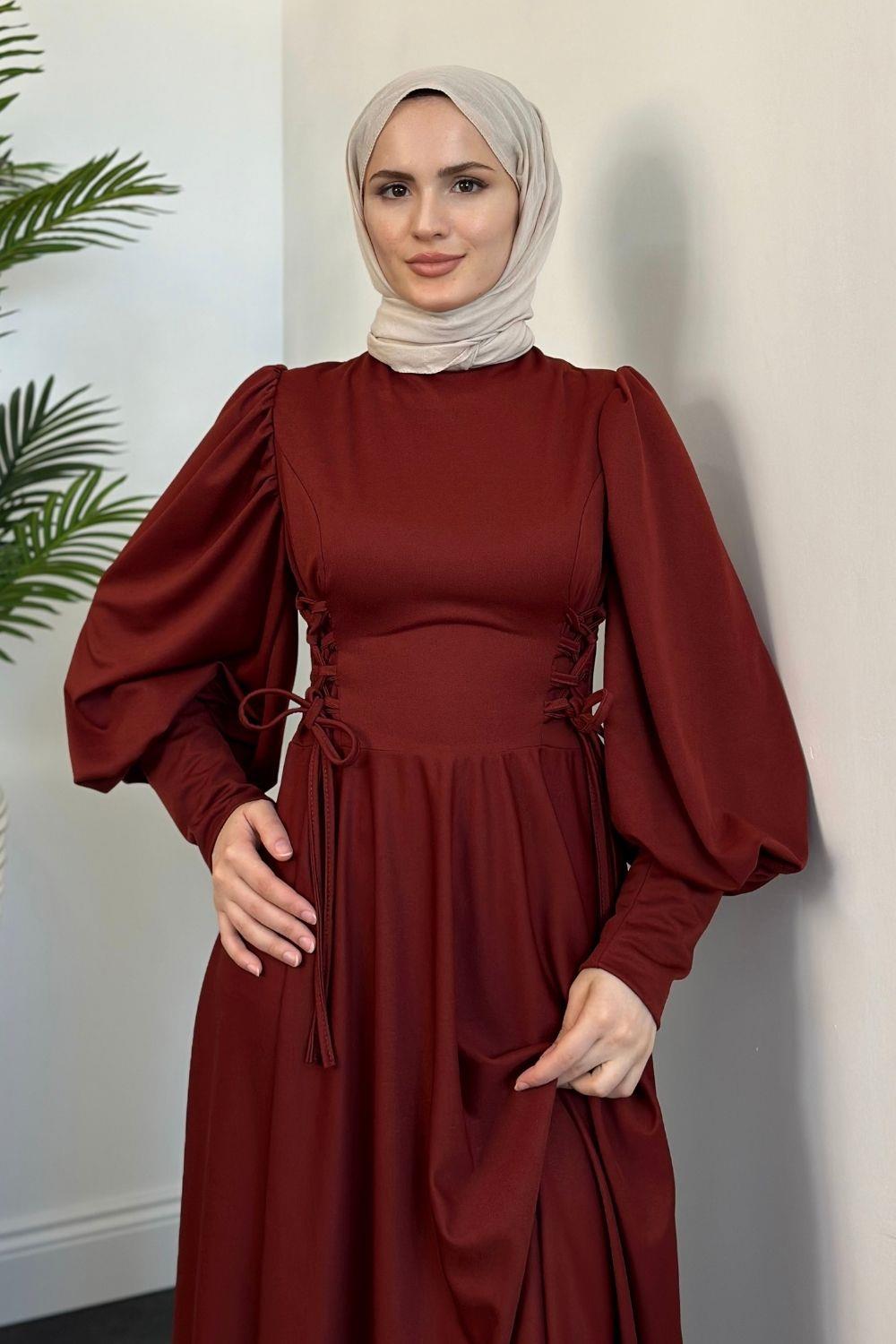 Vento Yanları Büzgülü Çan Elbise Kiremit